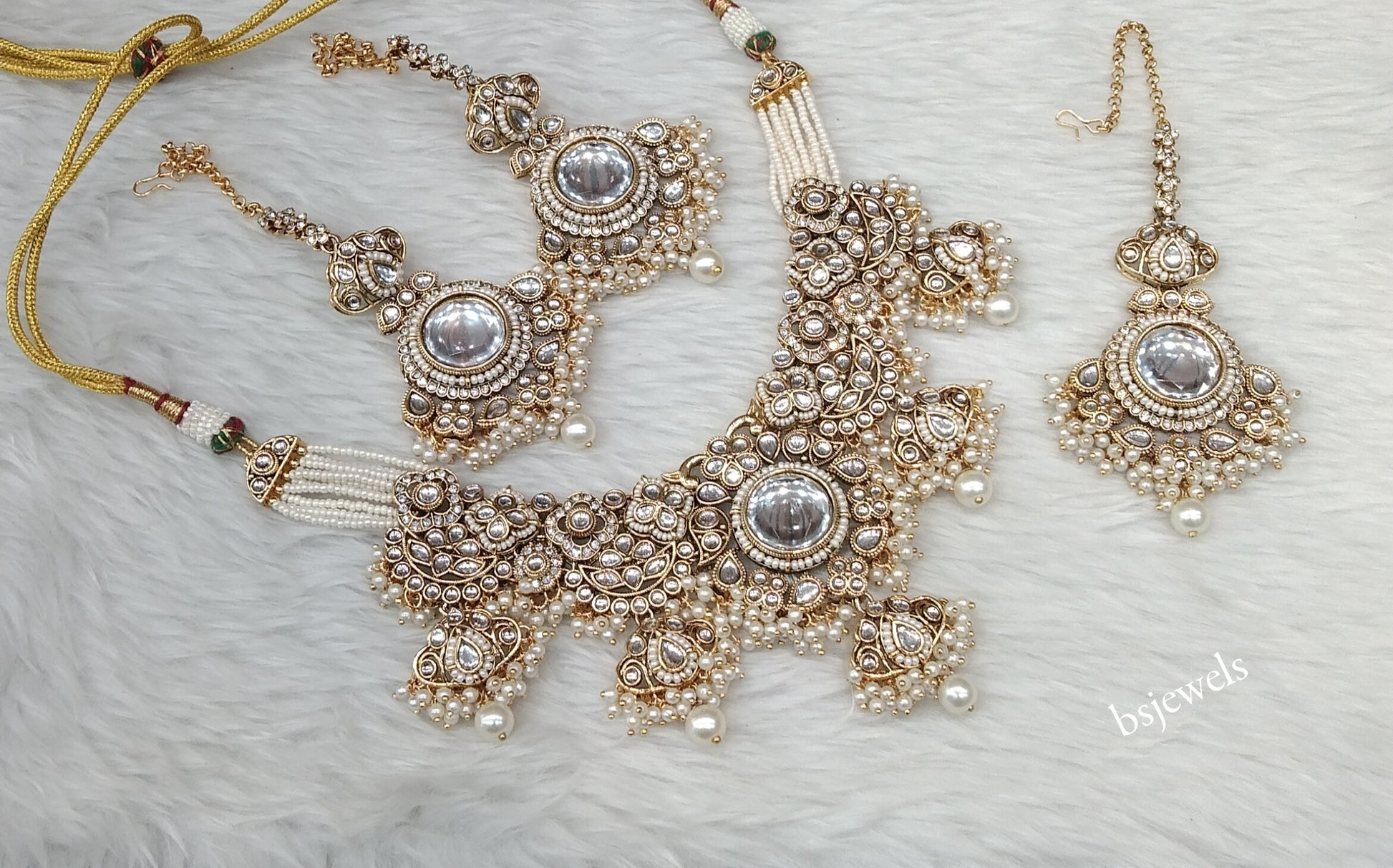 Gold White Kundan necklace Set/ kundan Indian Skyler jewellery sets