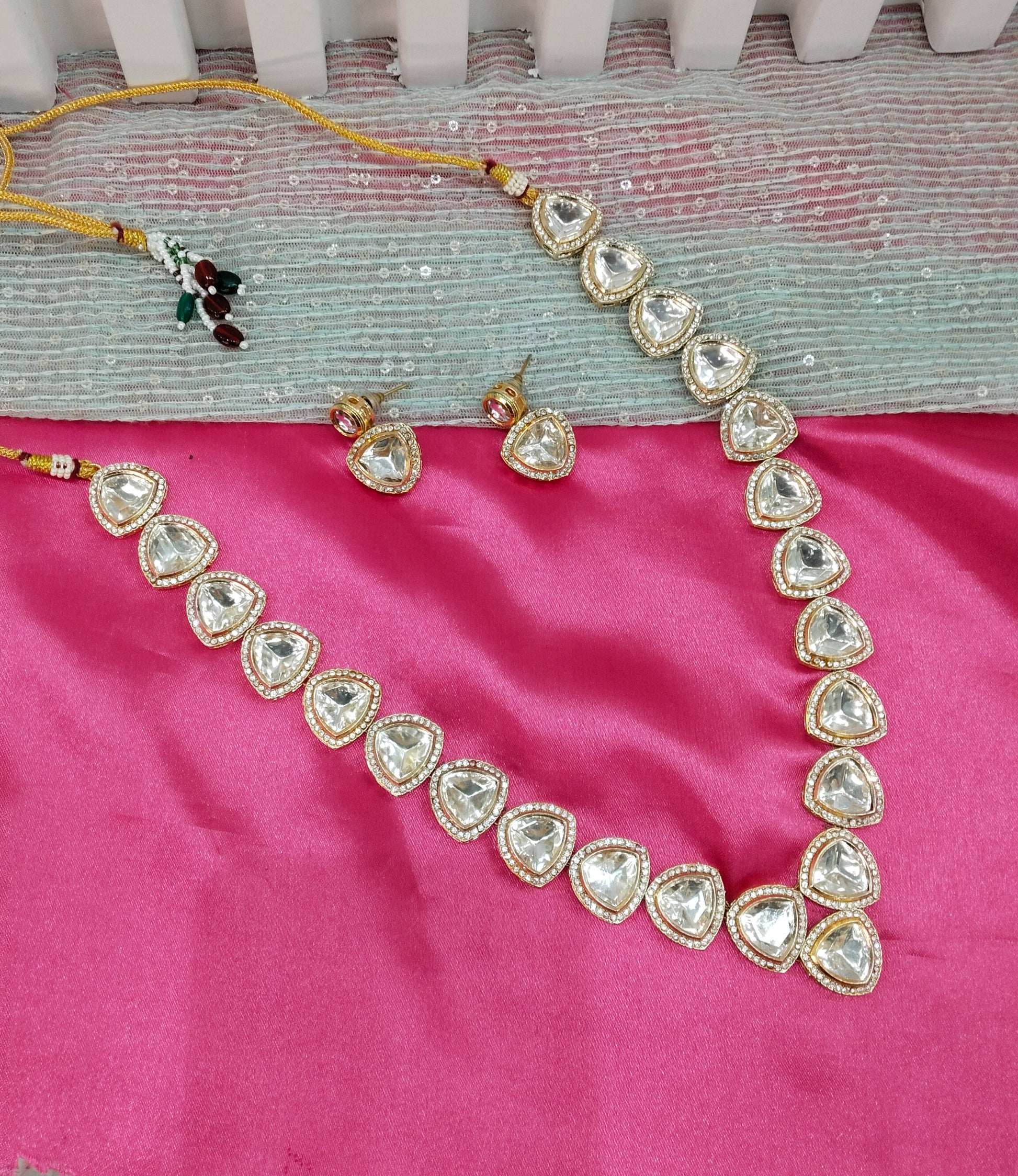 Gold White Long Rani Haar Kundan Necklace Jewellery Set