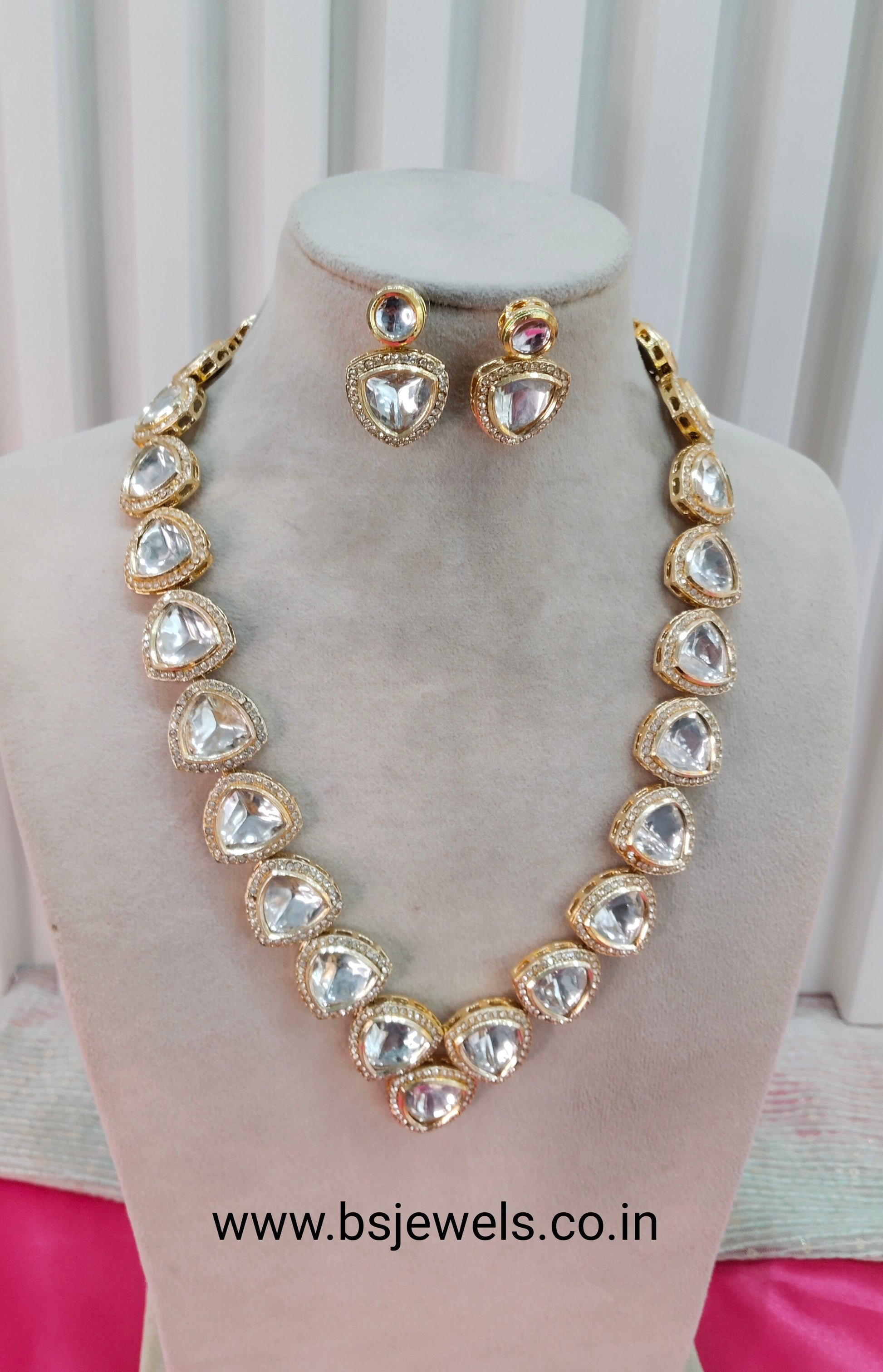 *Light Weight Gold White Rani Haar Kundan Necklace Set.