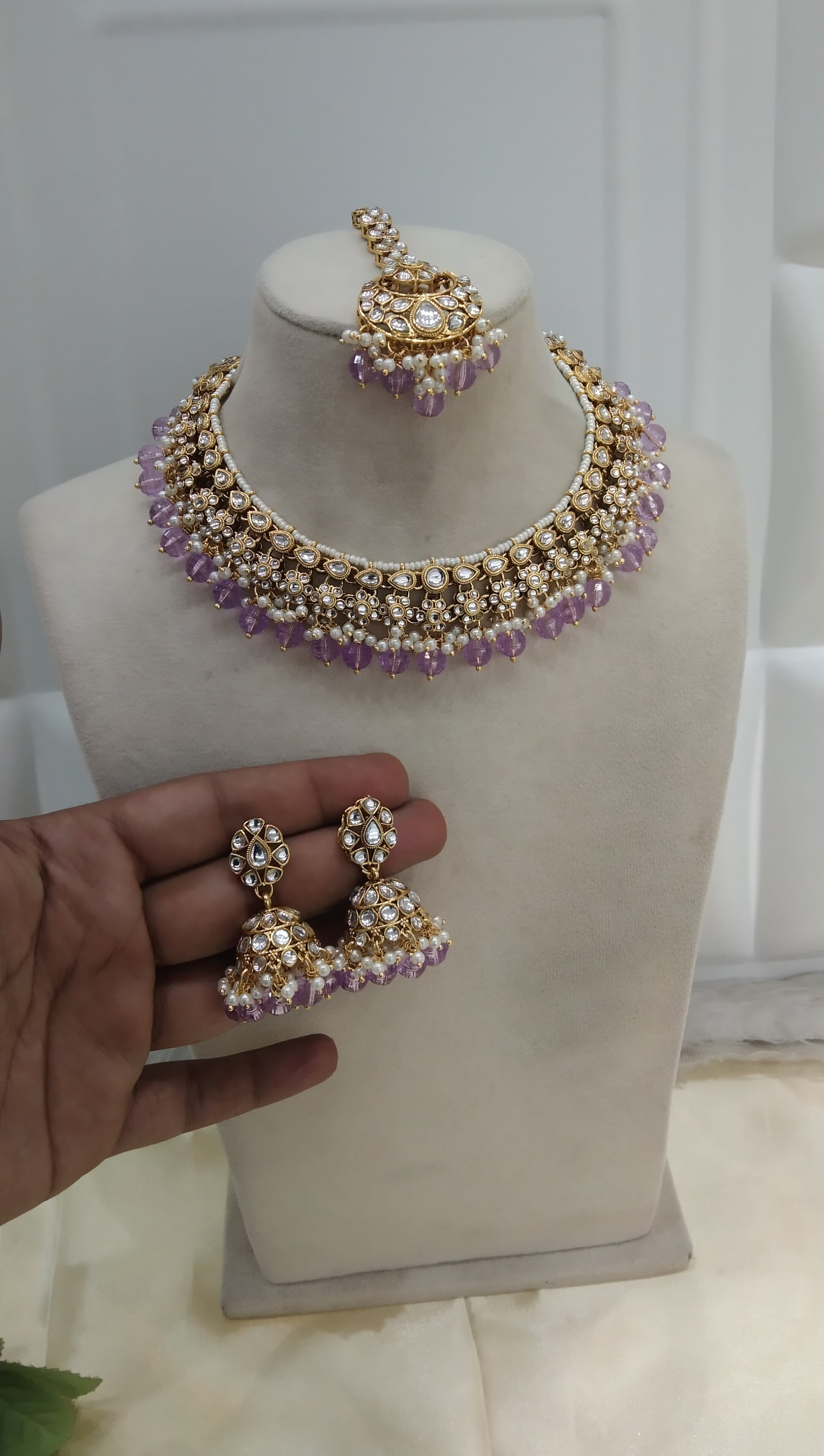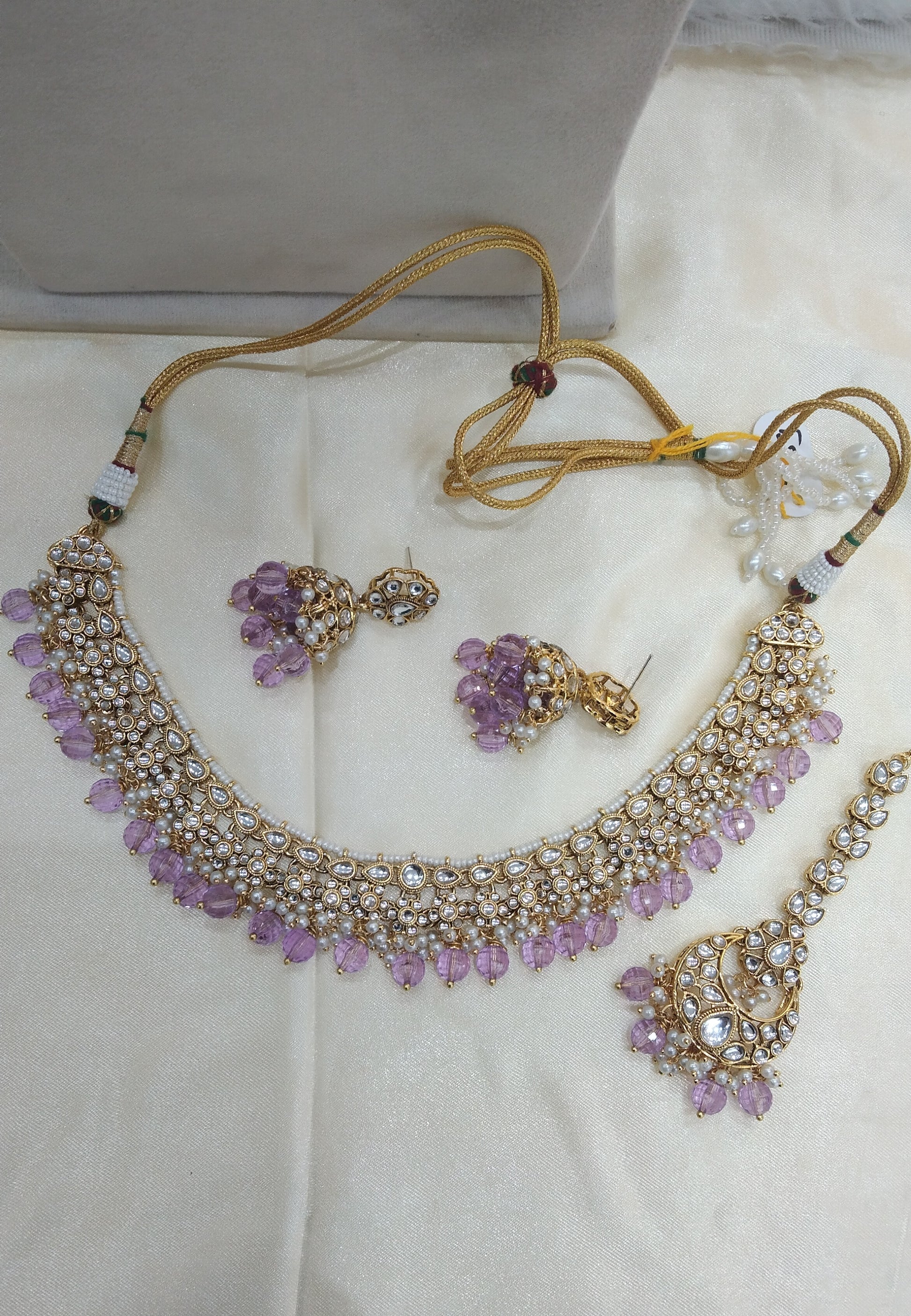 Lavendar Necklace Kundan Jewelry Jewellery Set