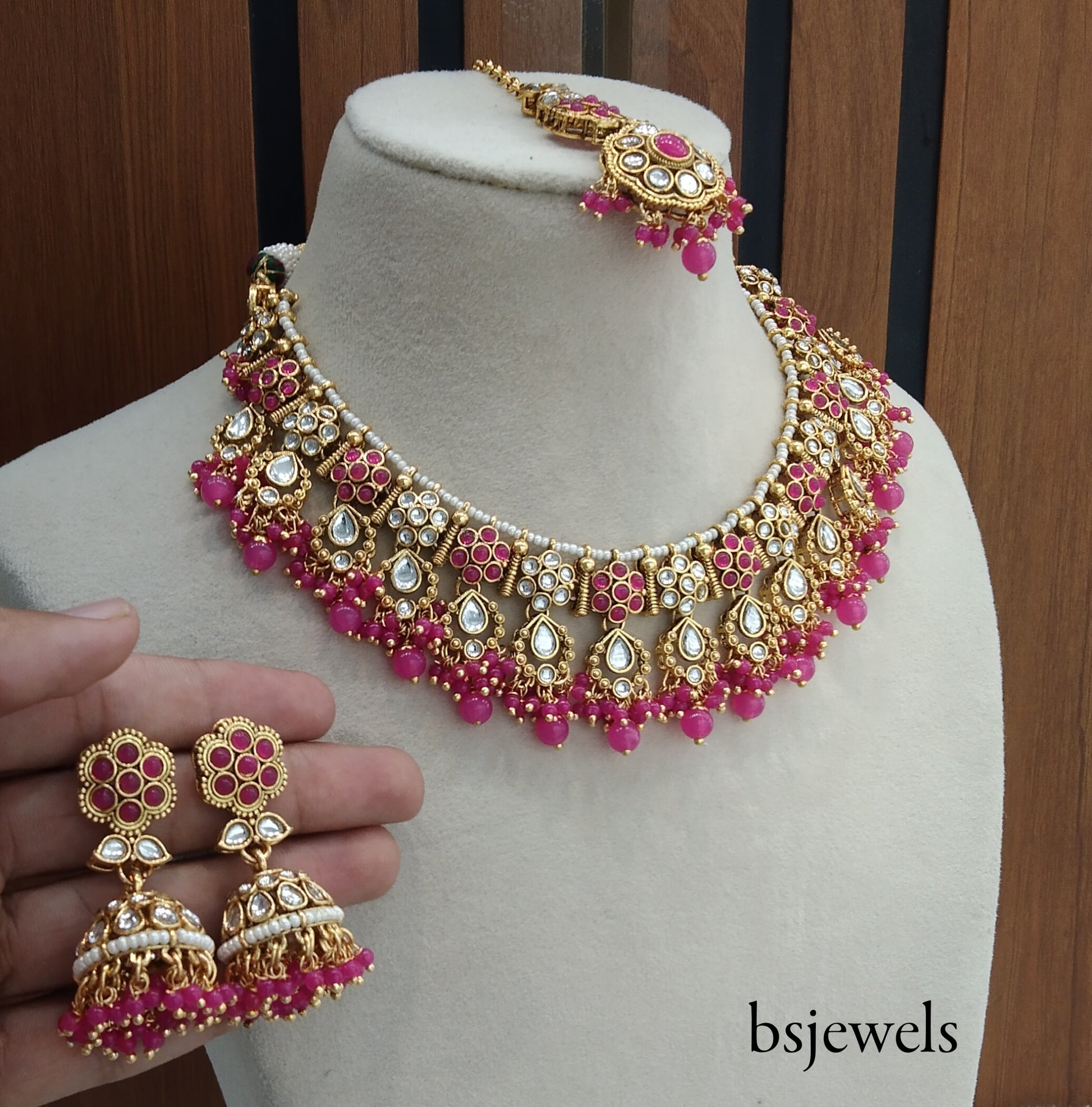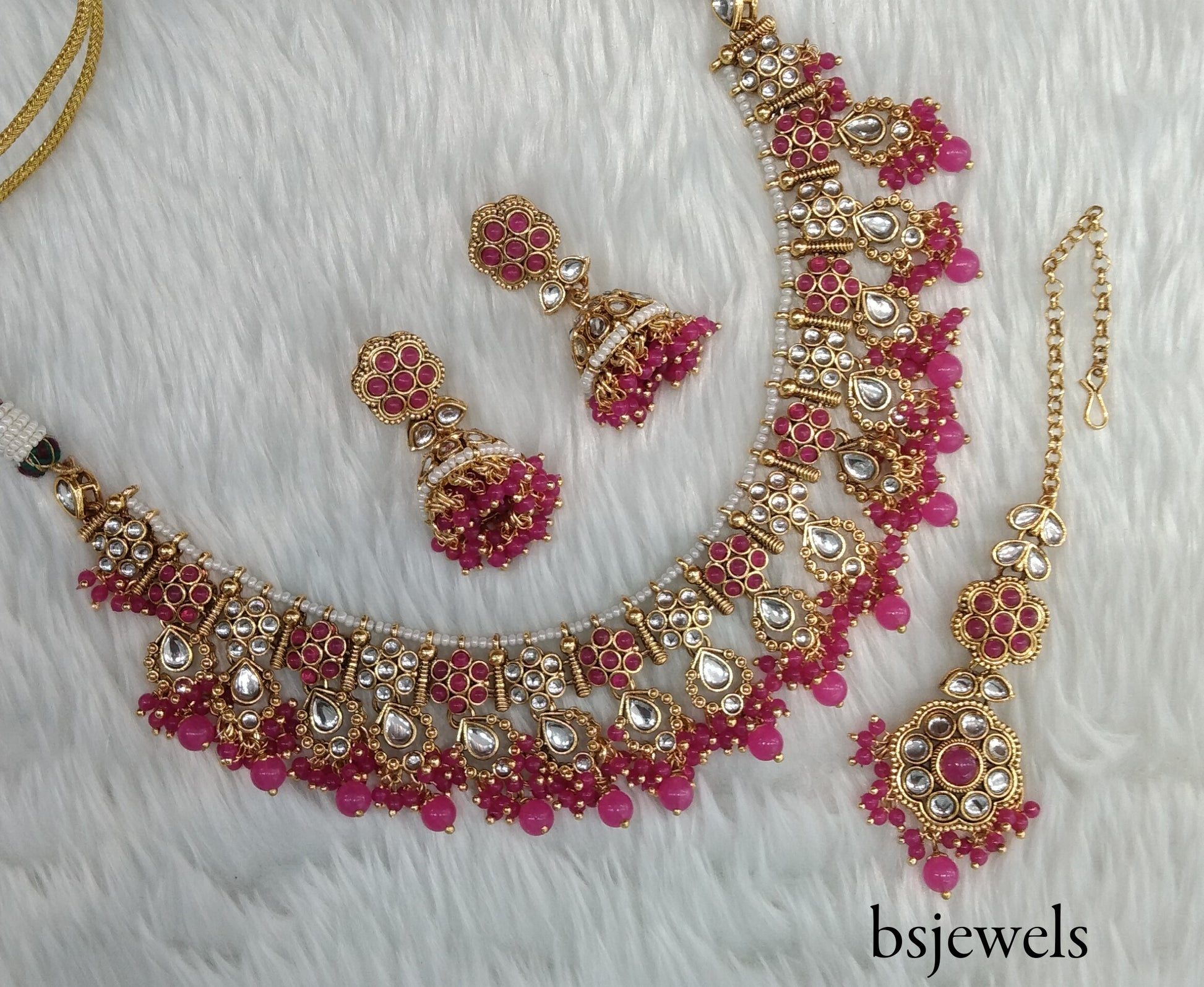 Pink Kundan Necklace Jewellery Amrit Set