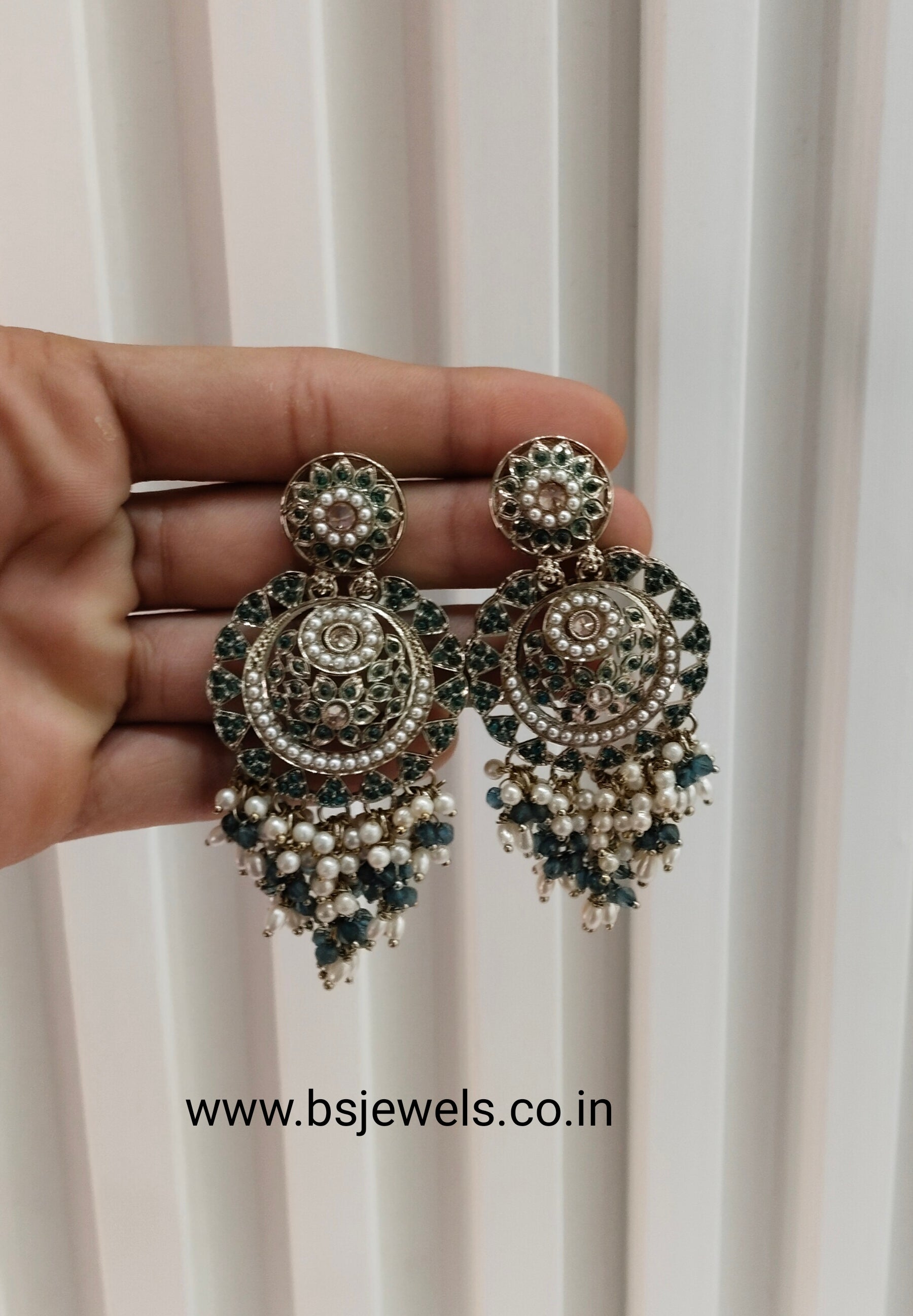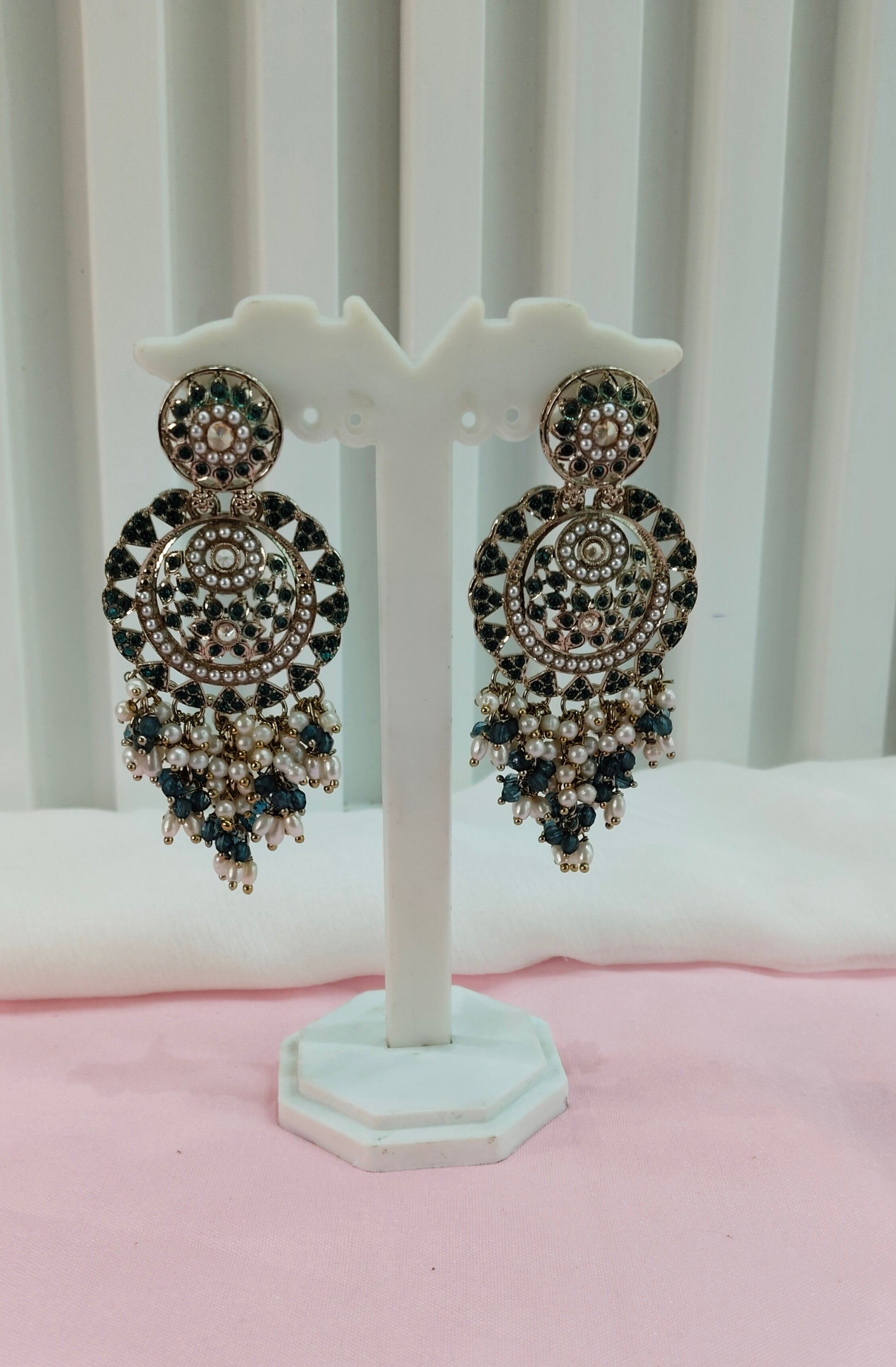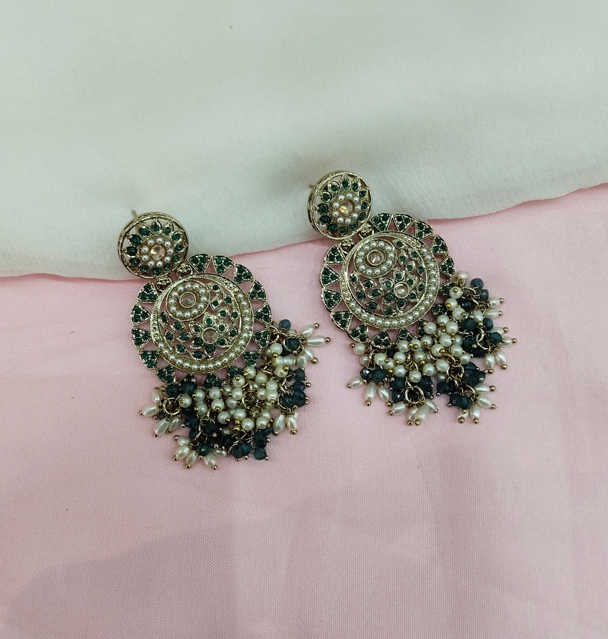 Rama Green Antique Gold Bollywood Earrings Pari Set