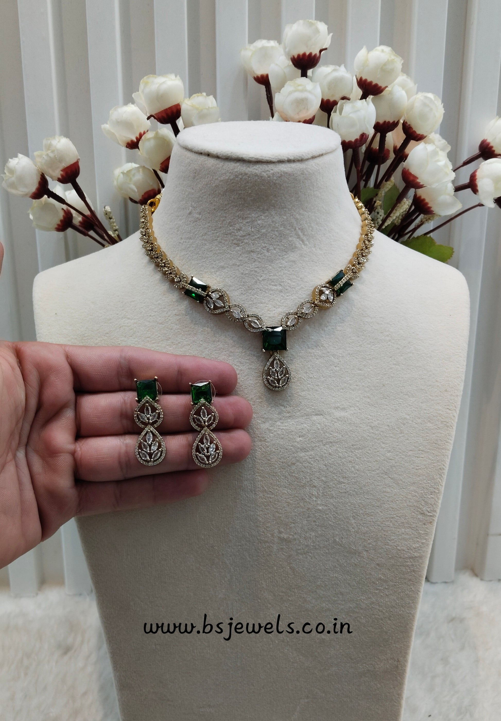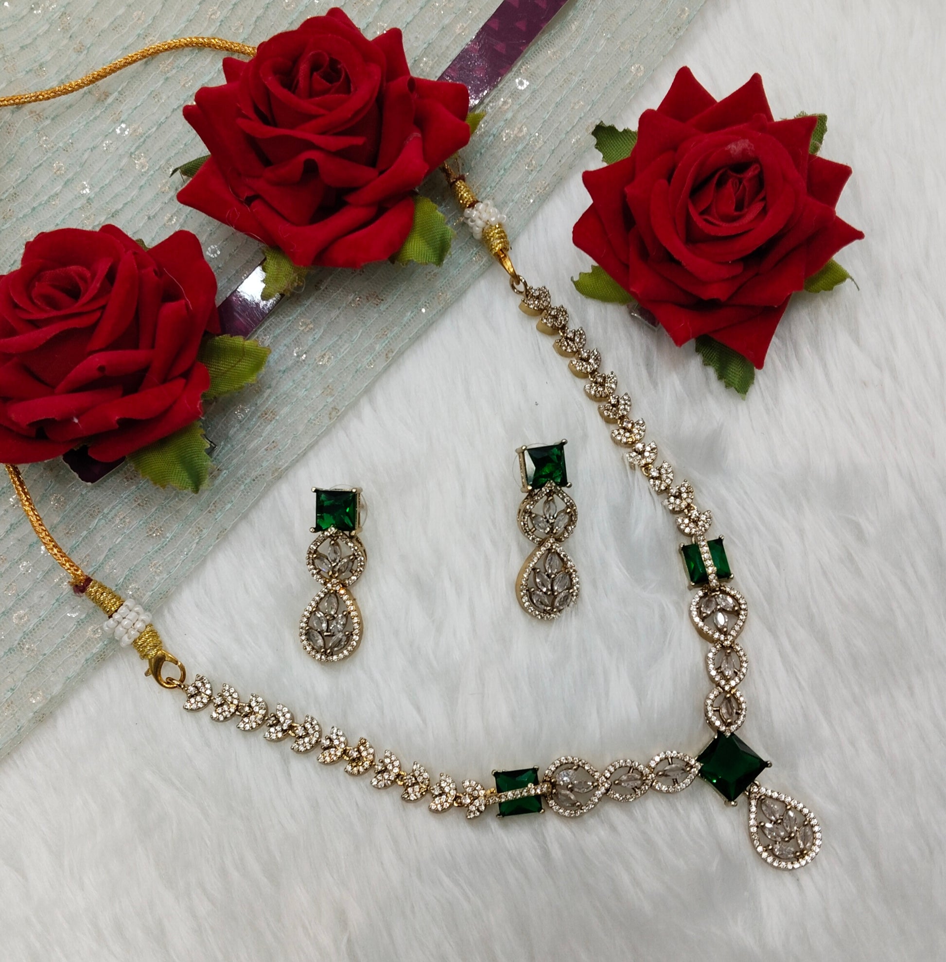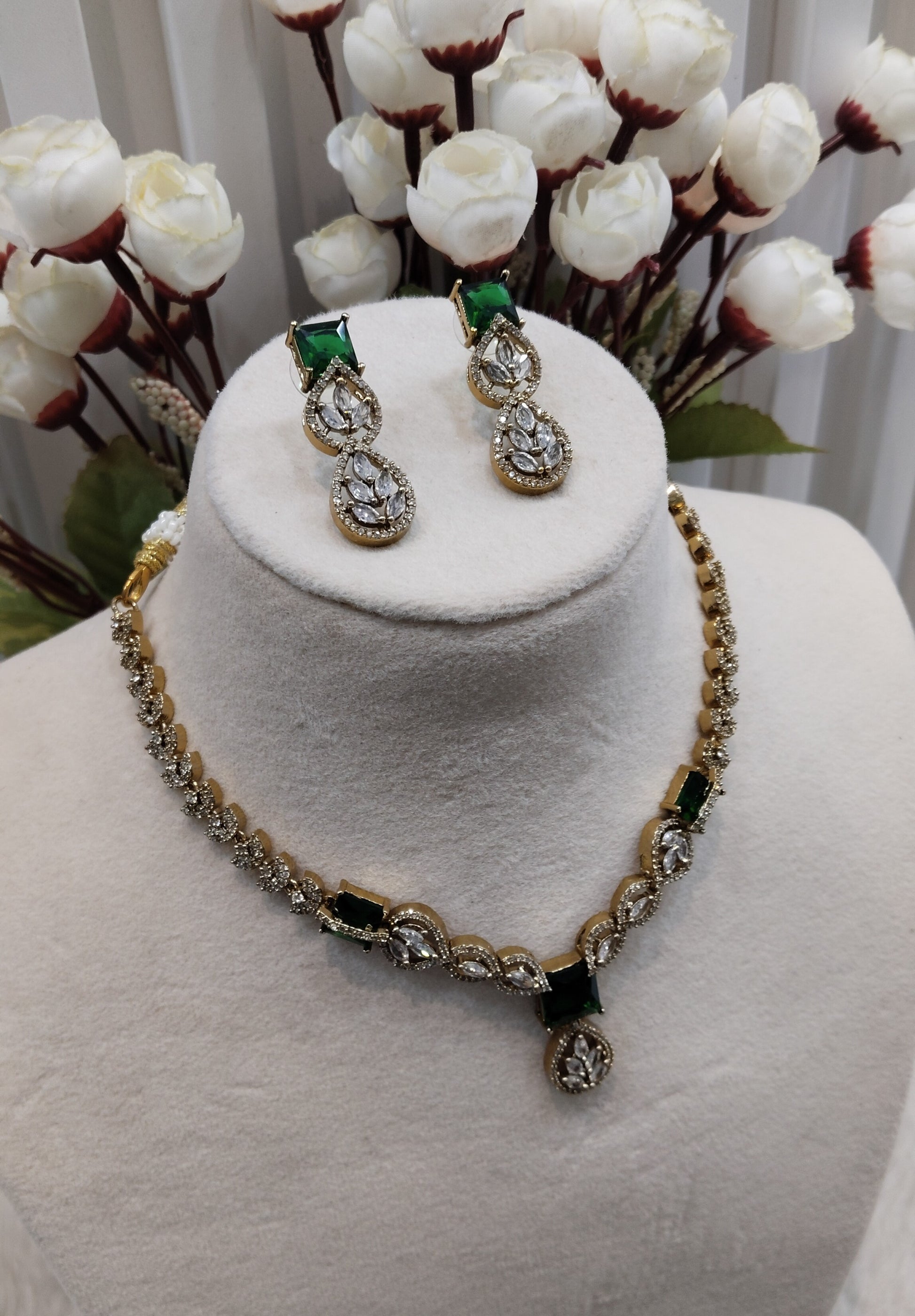 Green Antique Gold CZ Necklace Jewellery Peterson Set