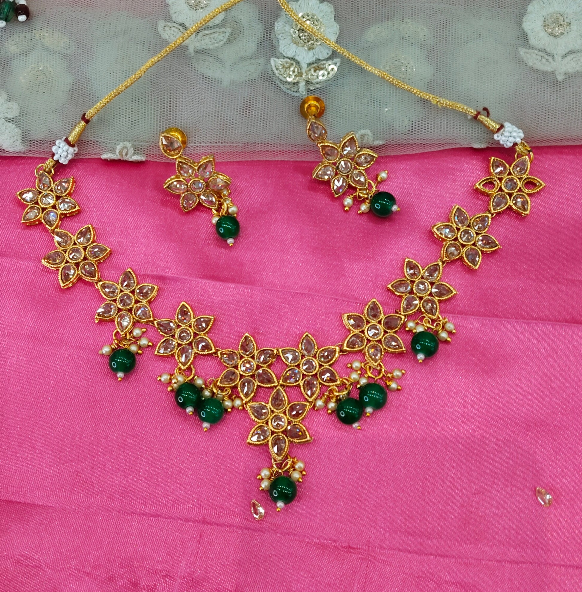 Green Champagne Stone Necklace Jewellery Narayan Set