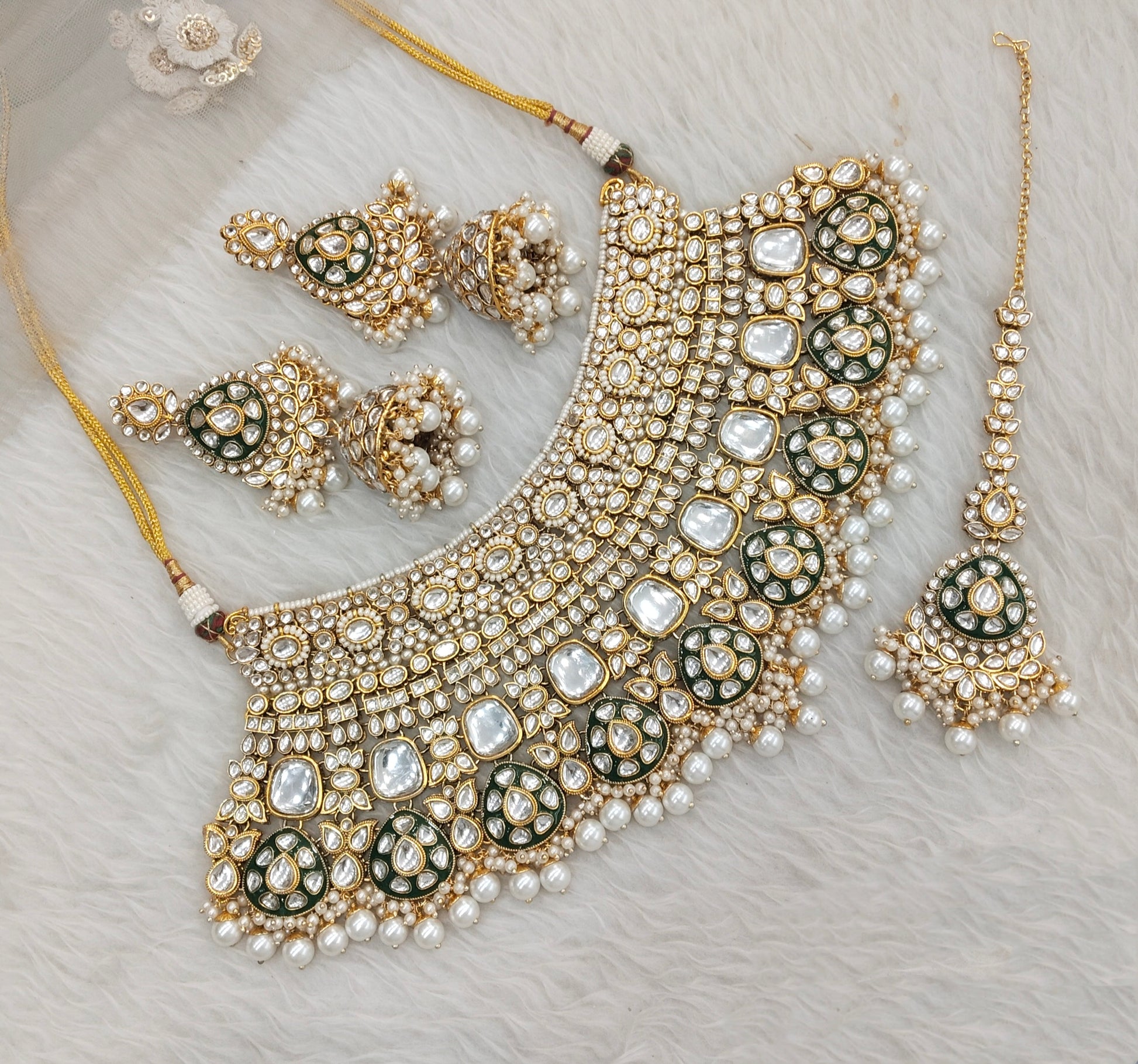 Ivory Gold Bridal Kundan Necklace Jewellery Raju Set