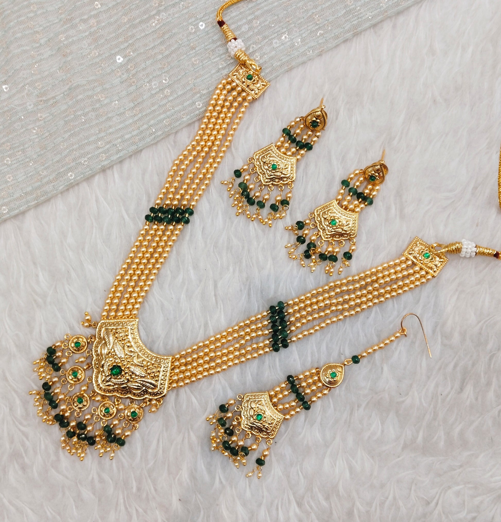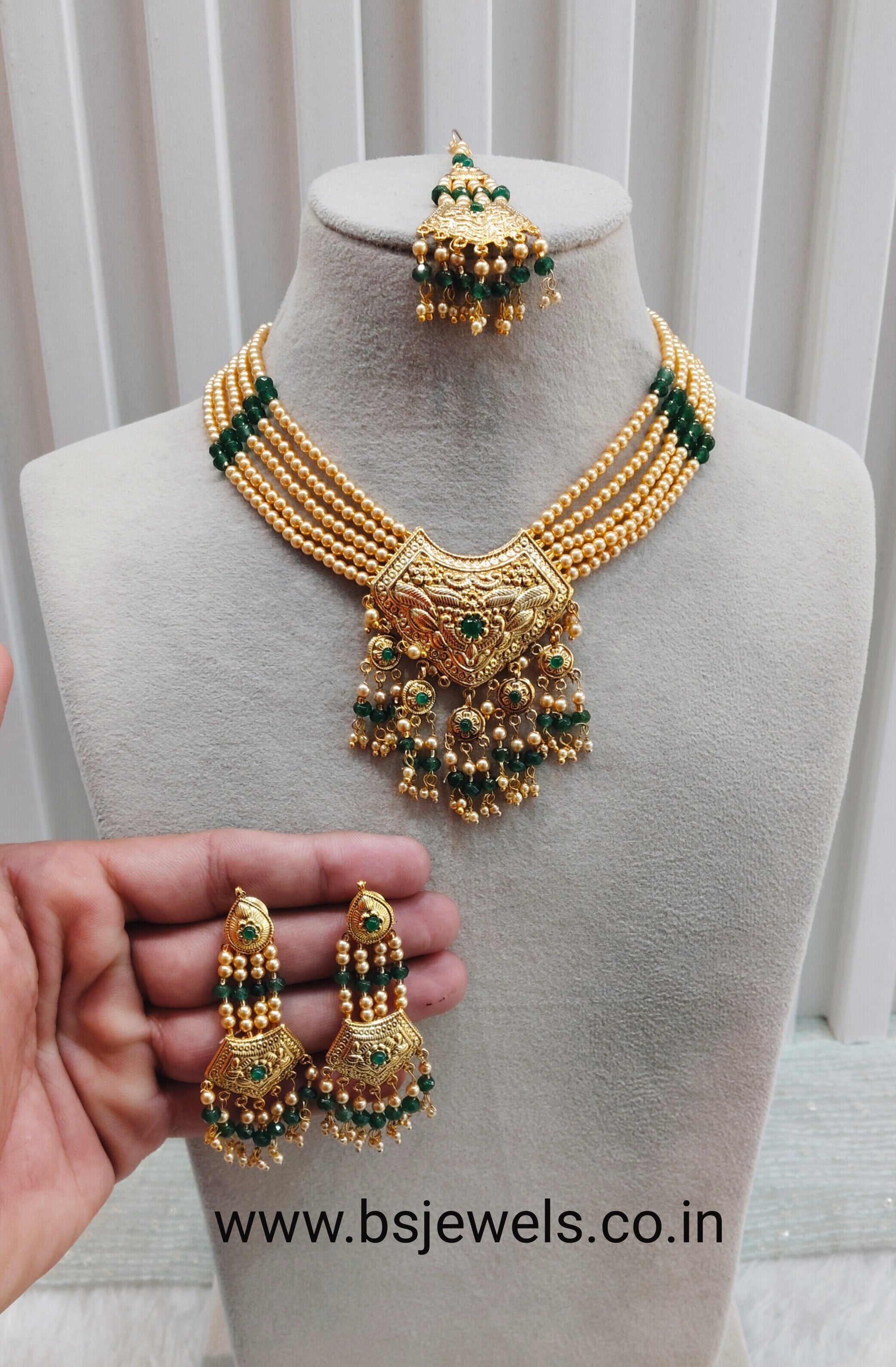 Green Gold Jadau Punjabi Style Necklace Jewellery Smith Set