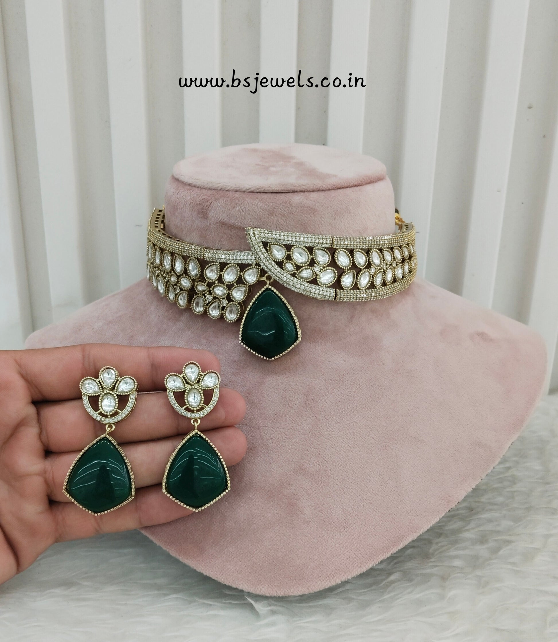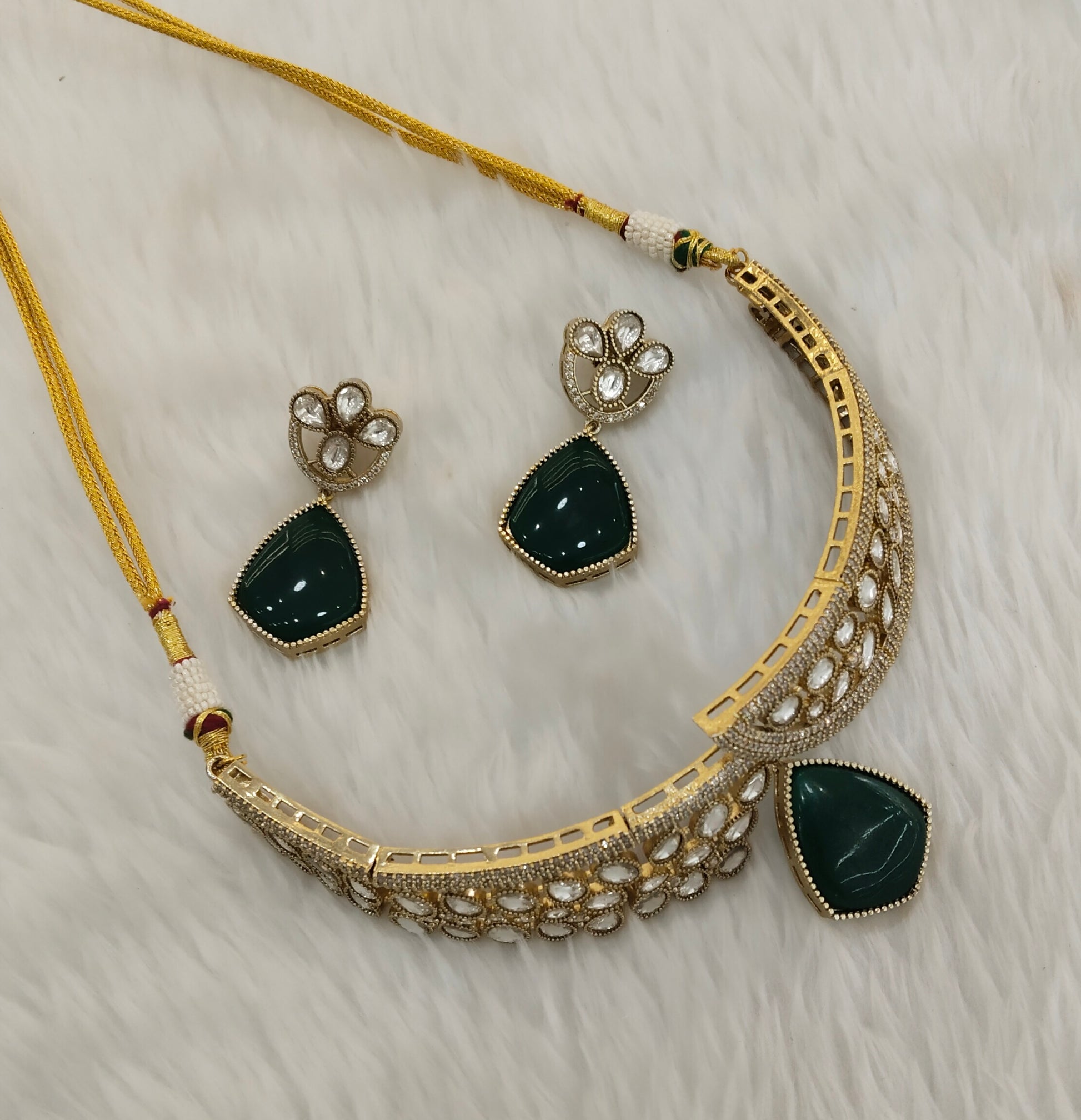 Green Gold Moissanite Kundan Choker Jewellery Dhaliwal Set