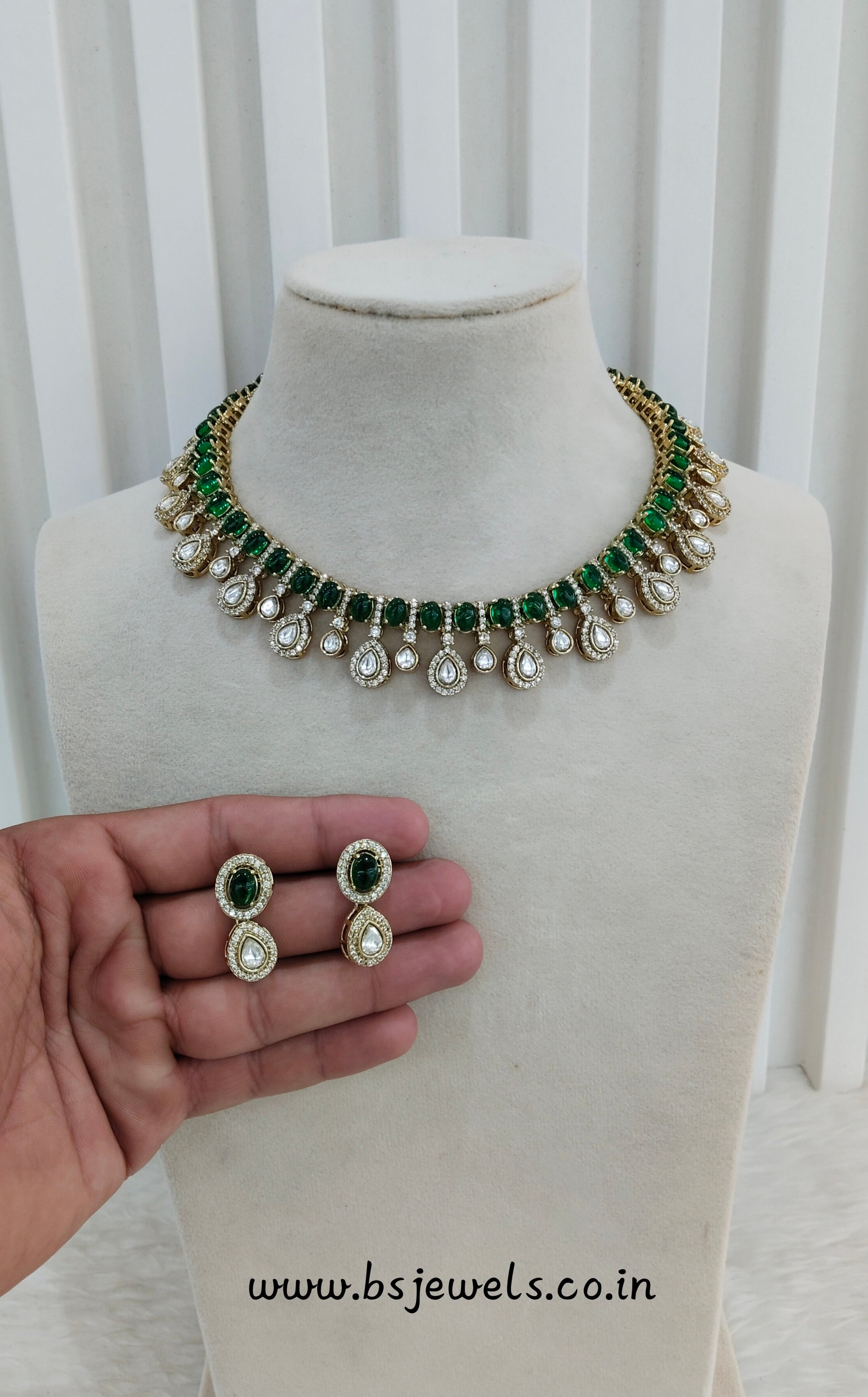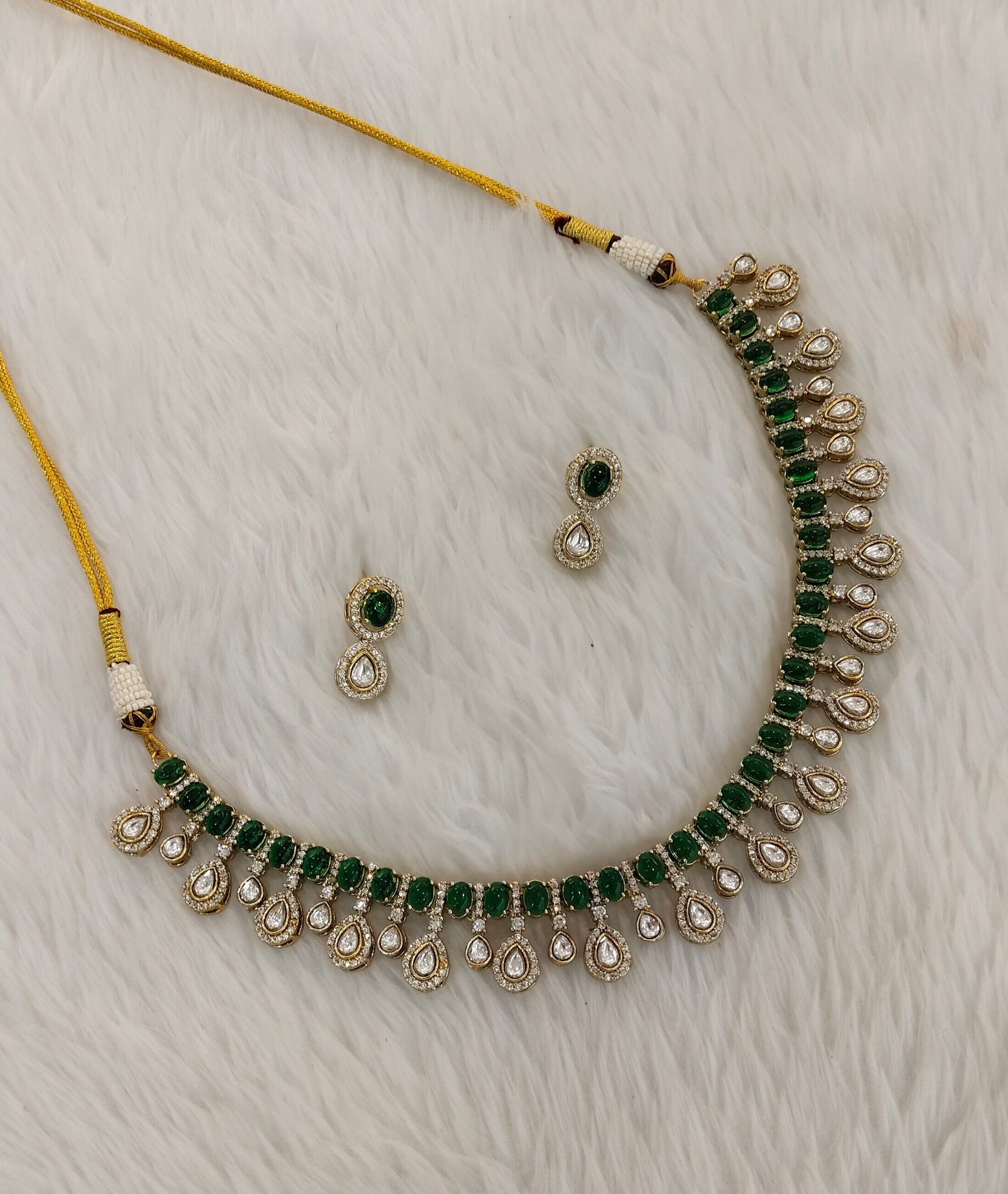 Green Gold Moissanite Kundan Necklace Jewellery Echer Set