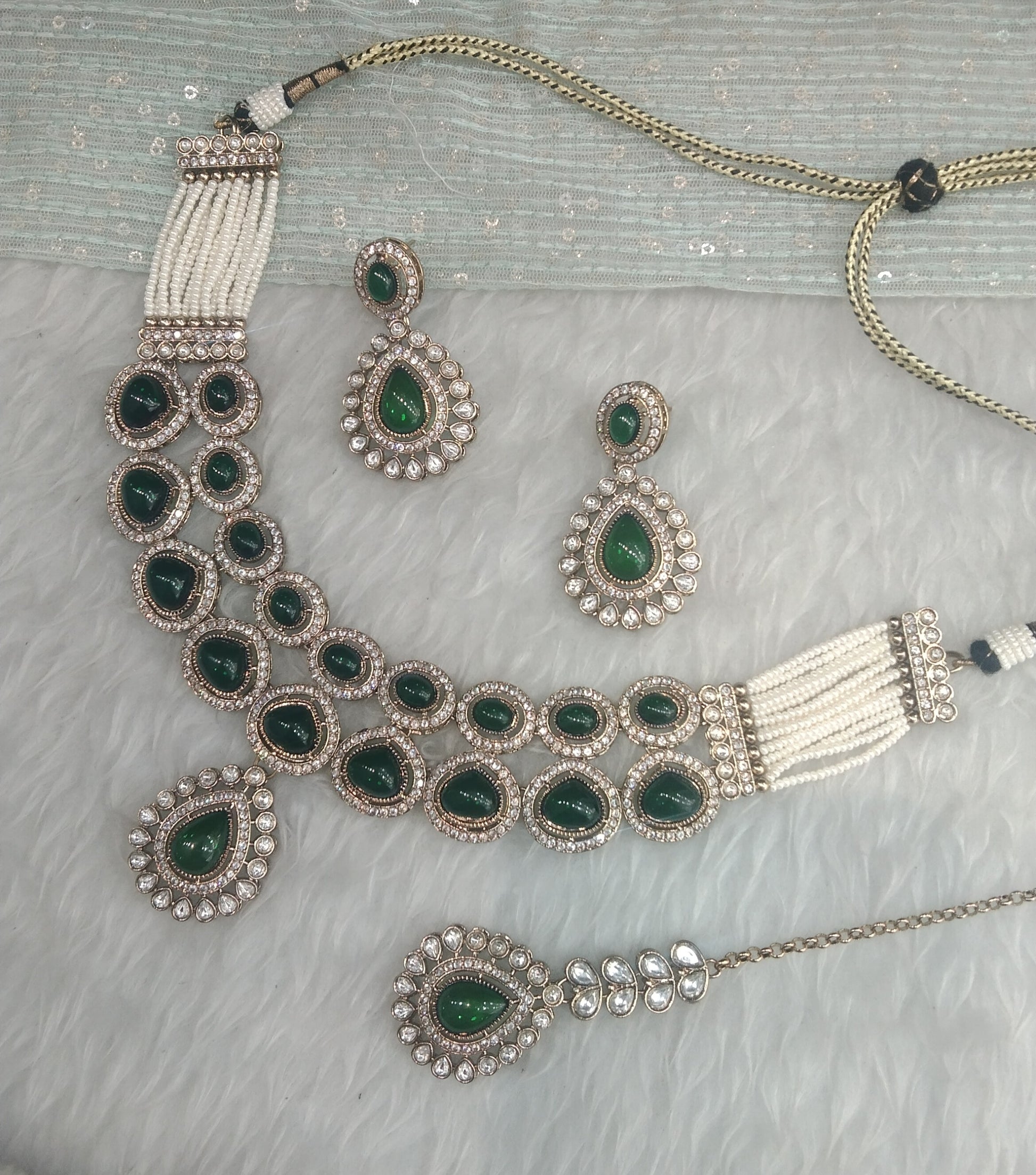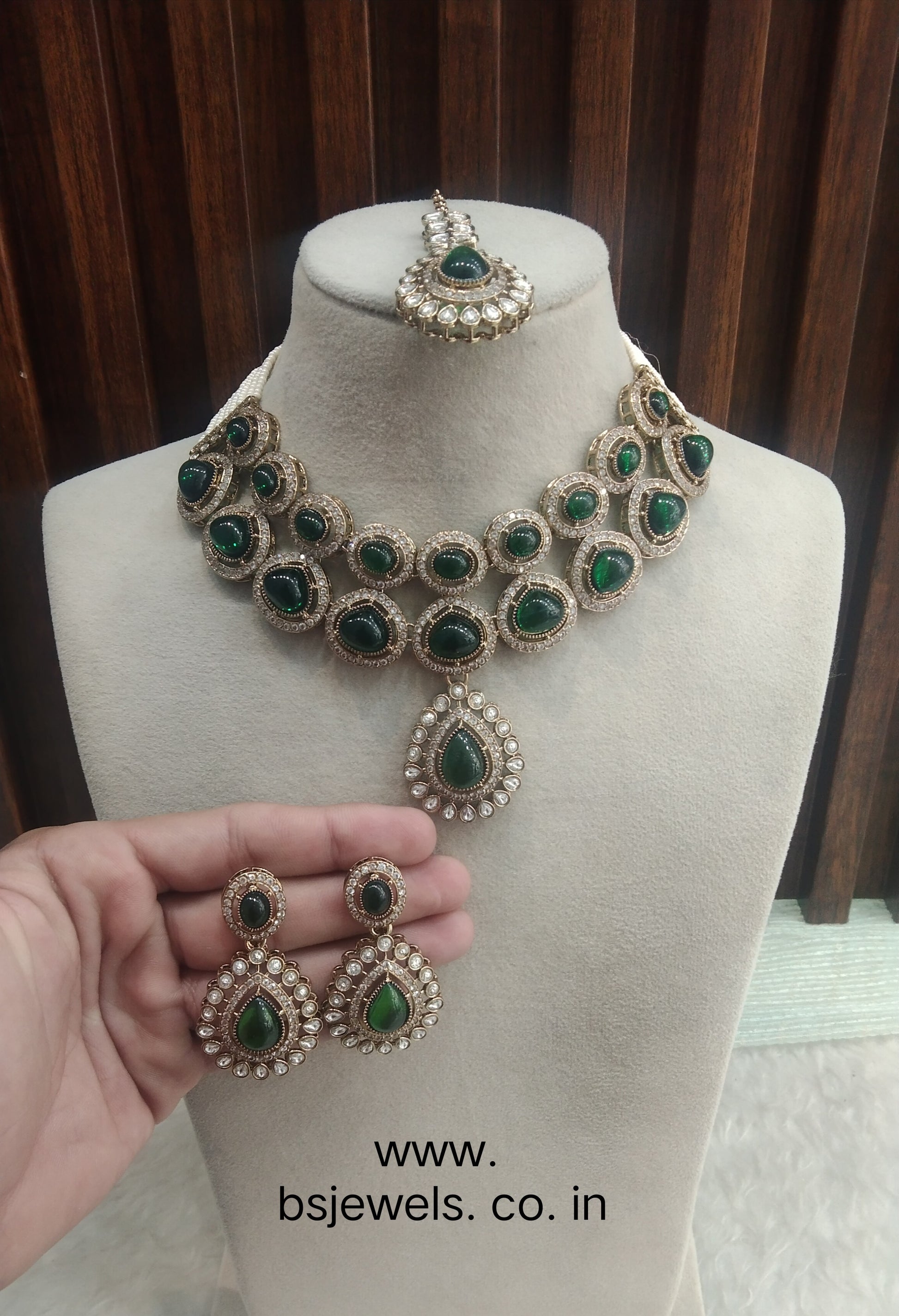 Green Gold Moissanite Kundan Necklace Jewellery Gippy Set