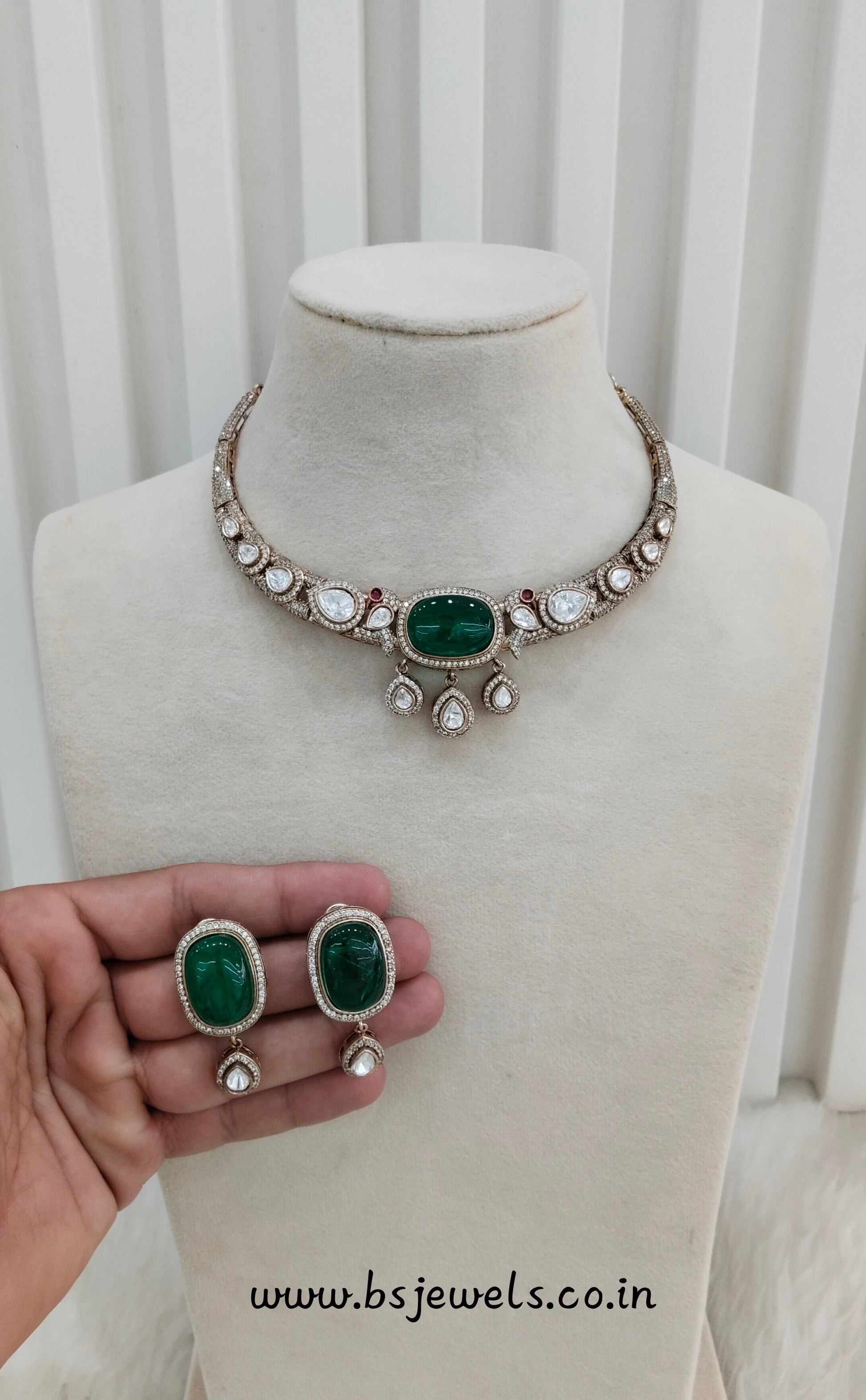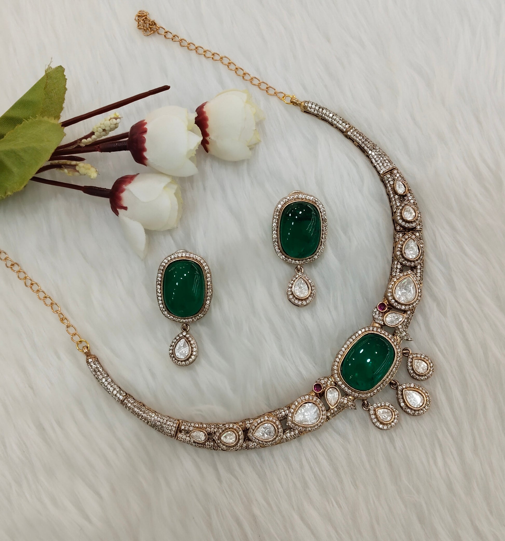 Green Gold Moissanite Kundan Necklace Jewellery Indofarm Set