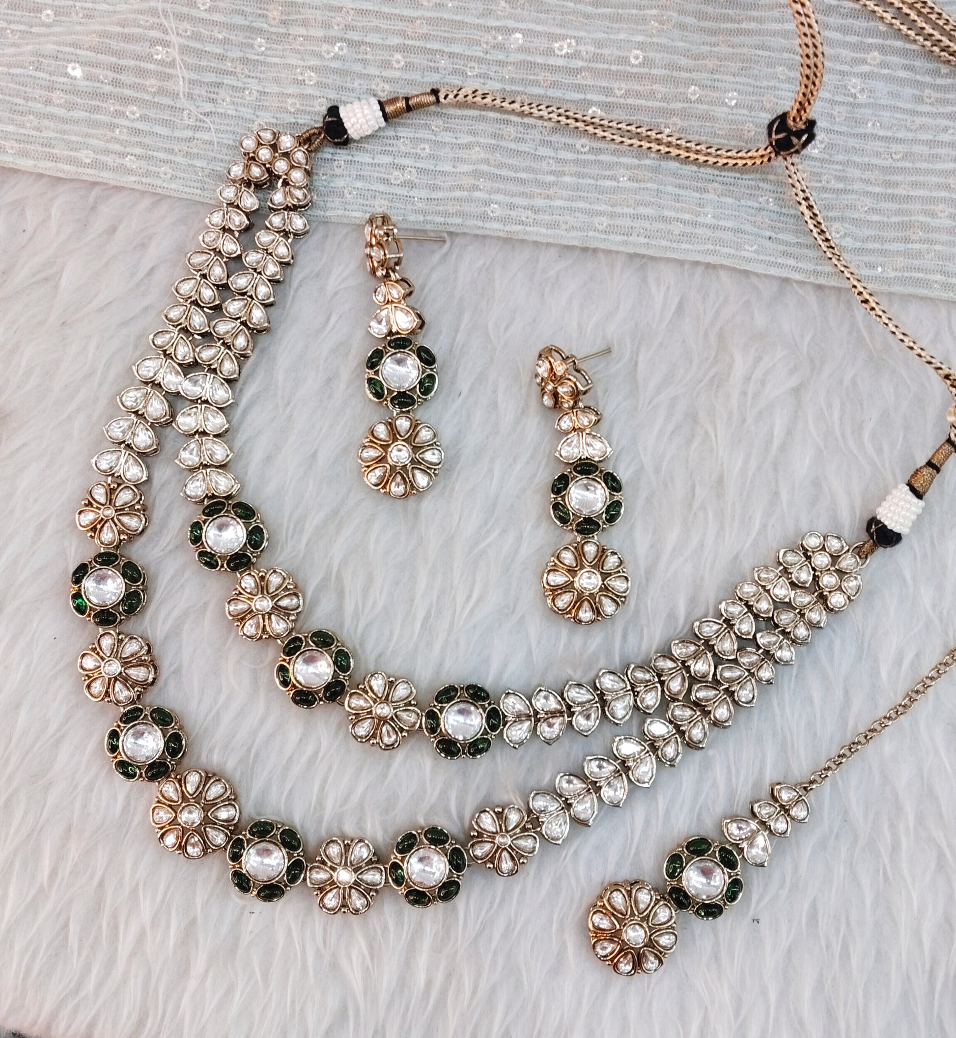 Green Gold Moissanite Kundan Necklace Jewellery Jordan Set