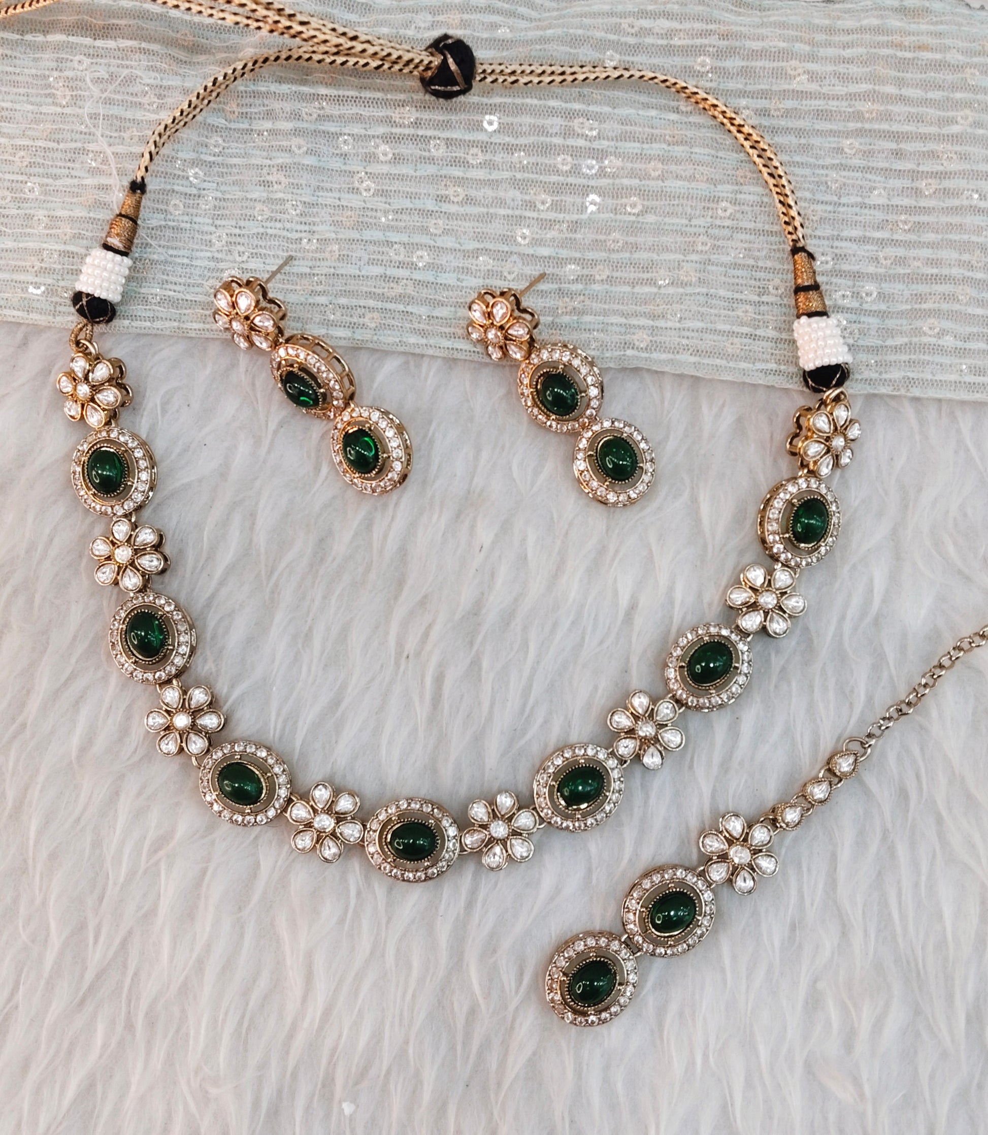 Green Gold Moissanite Kundan Necklace Jewellery Jordan Set