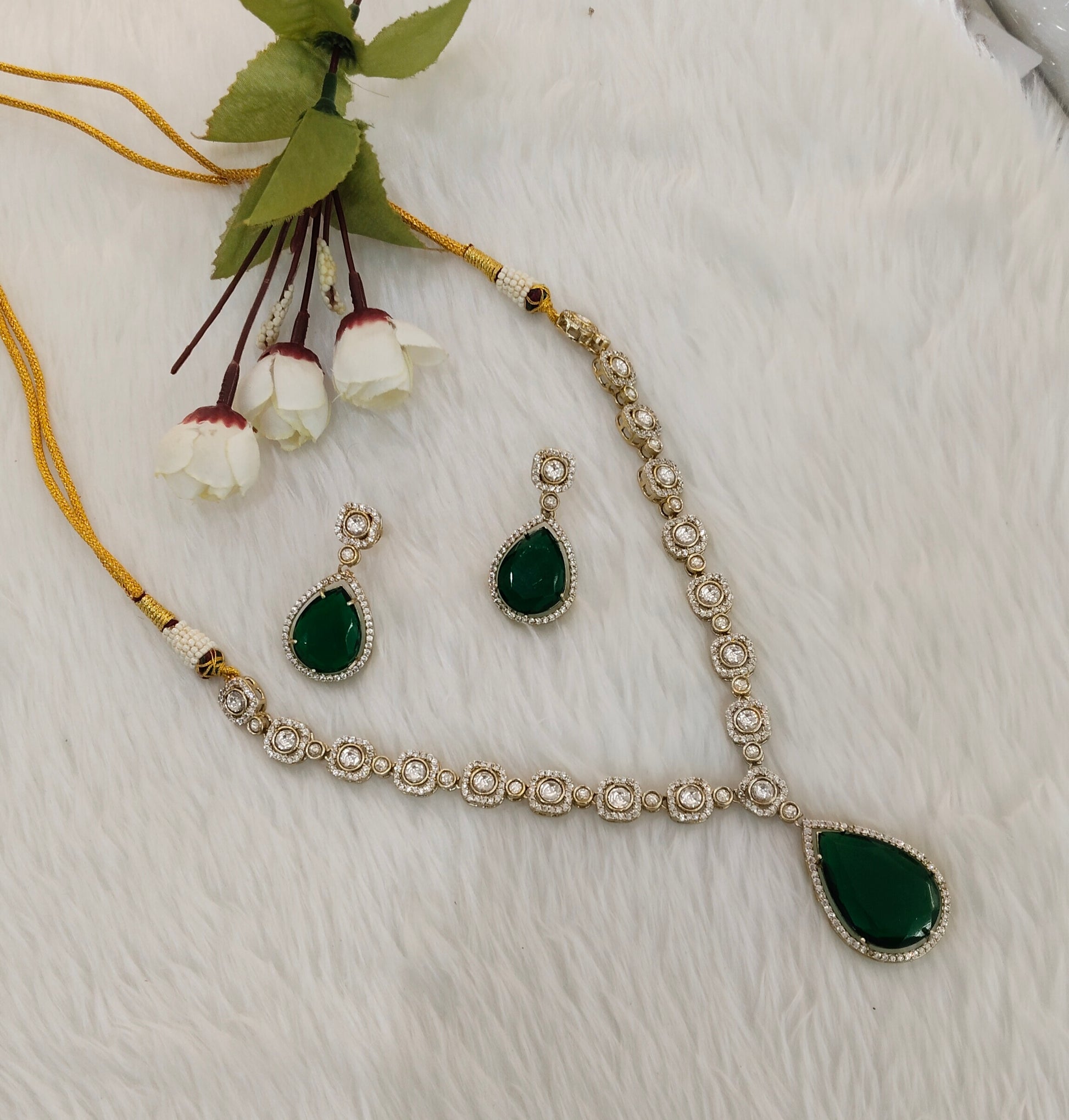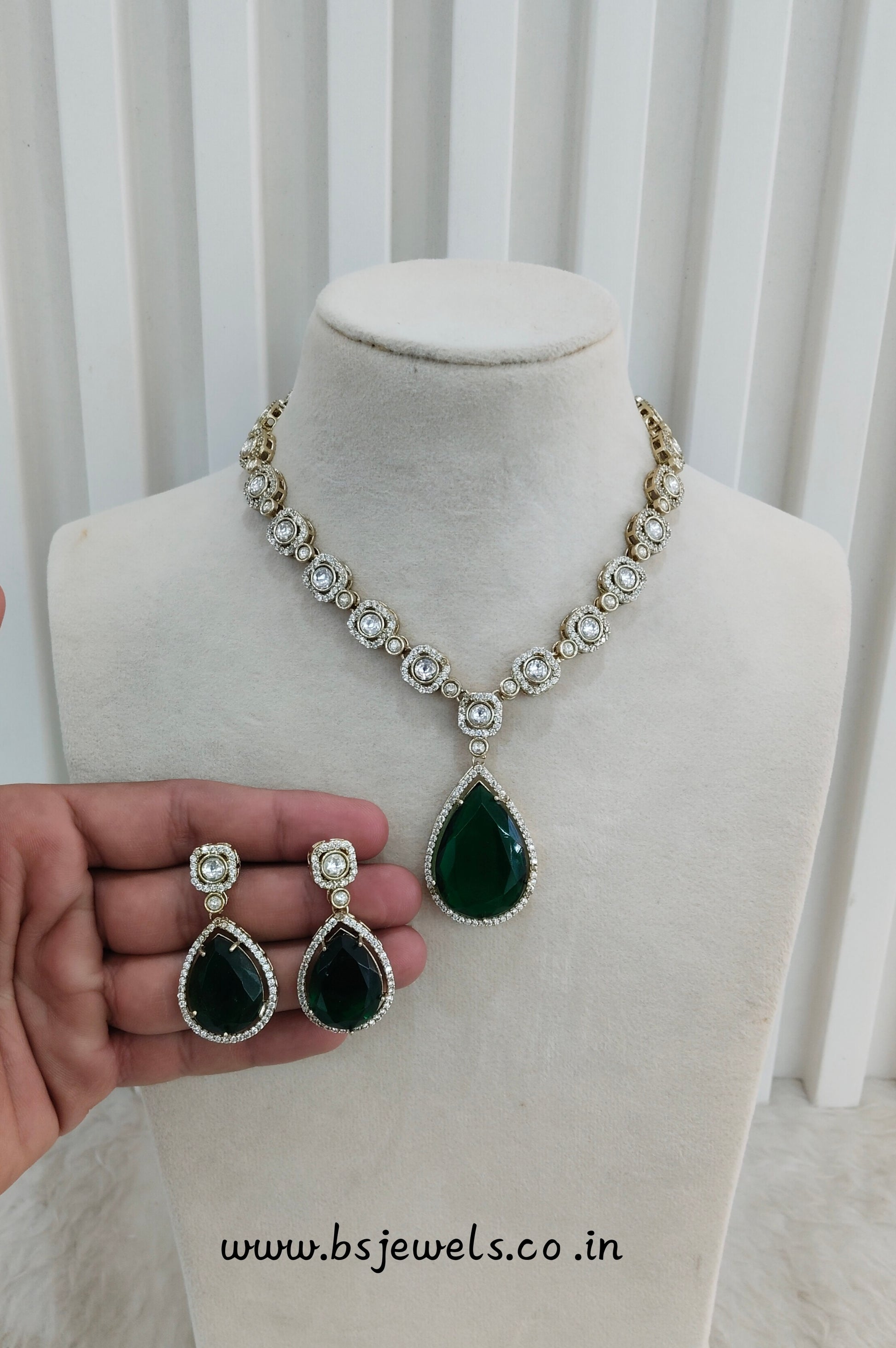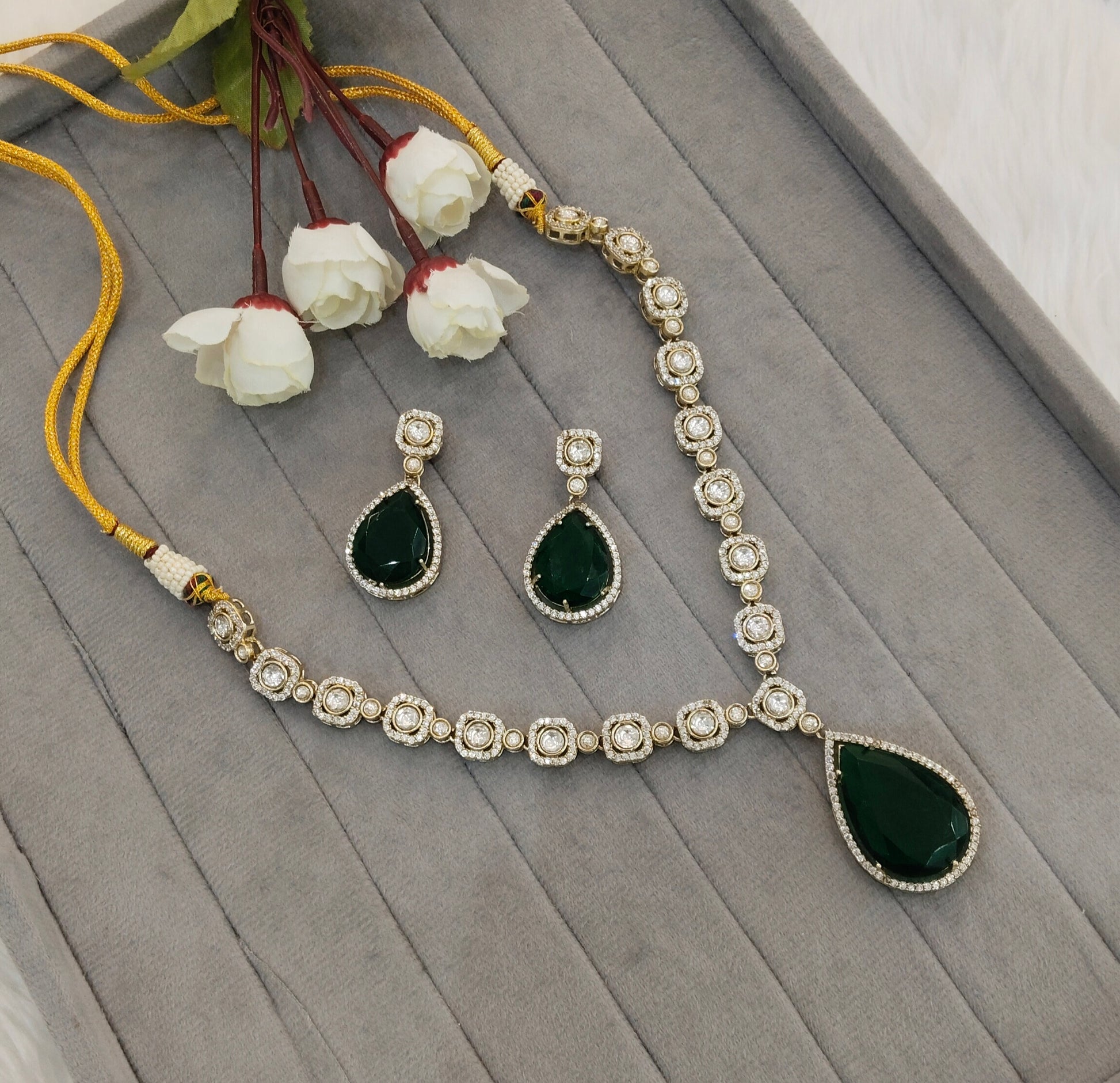 Green Gold Moissanite Kundan Necklace Jewellery Sonalika Set