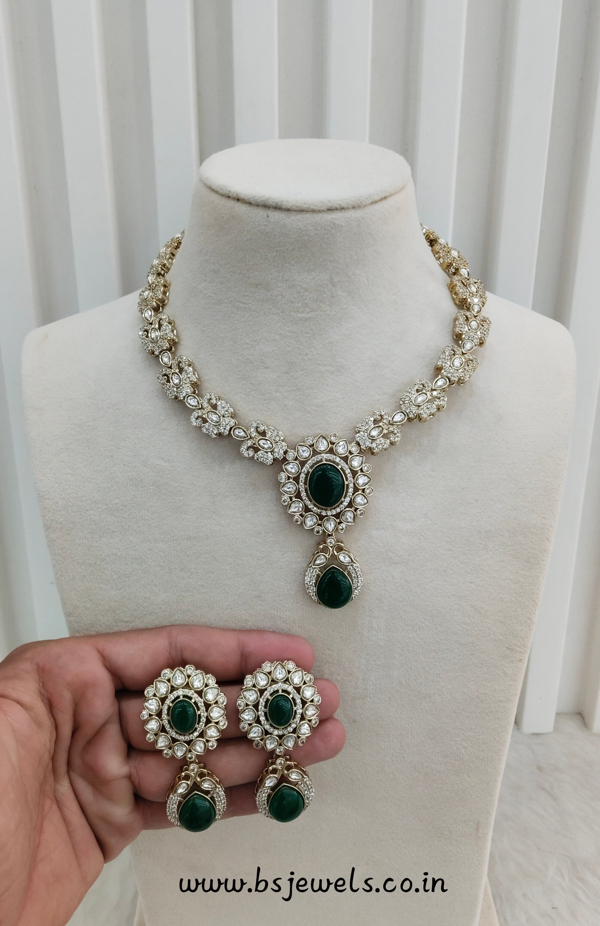 Green Gold Moissanite Kundan Necklace Jewellery Sonalika Set