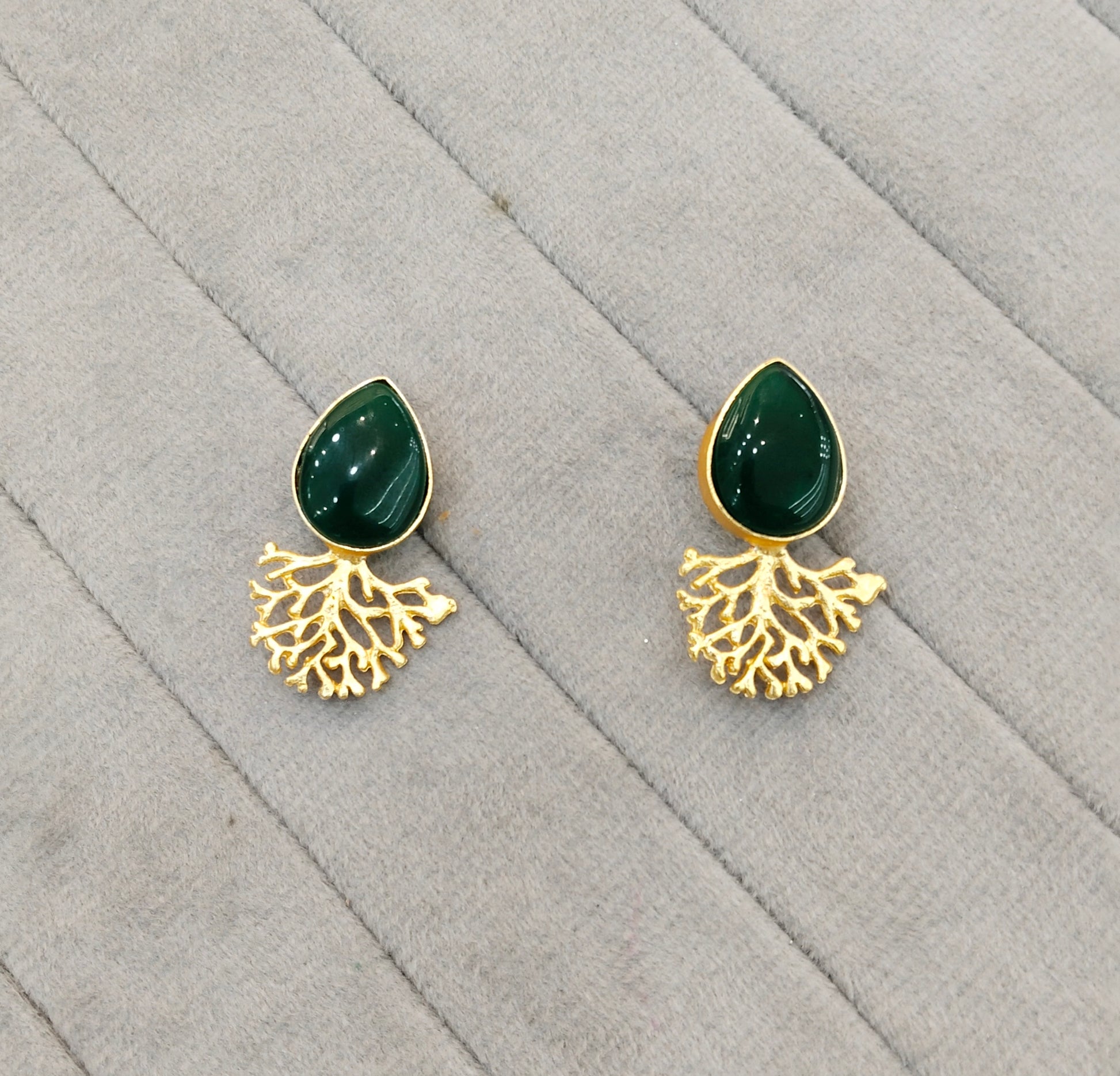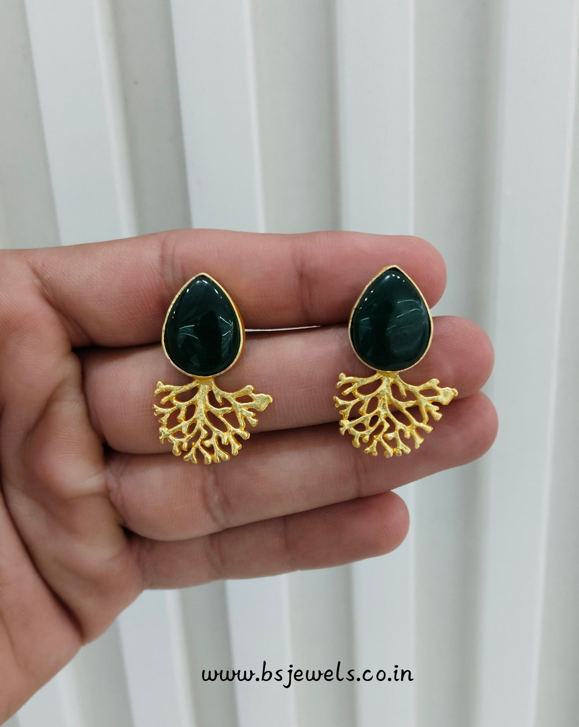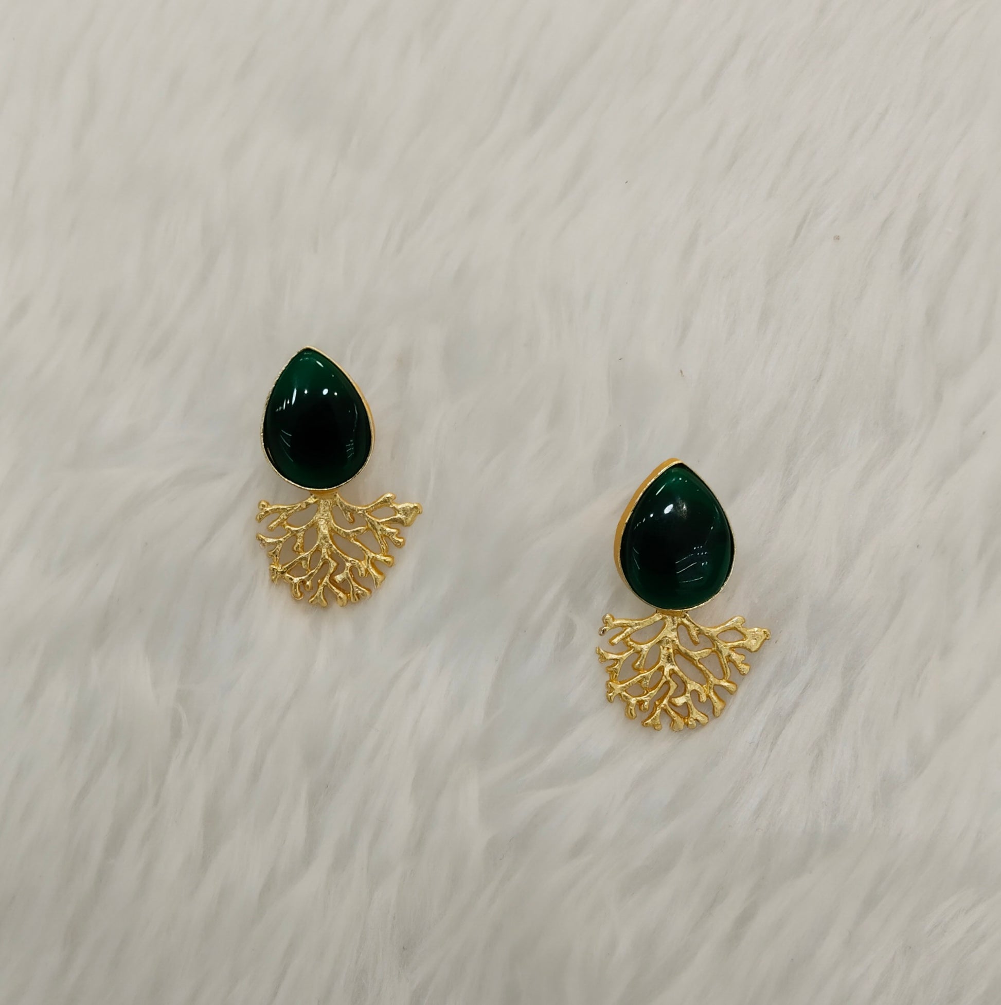 Green Gold Mother Of Pearl Bollywood Bhullar Earrings