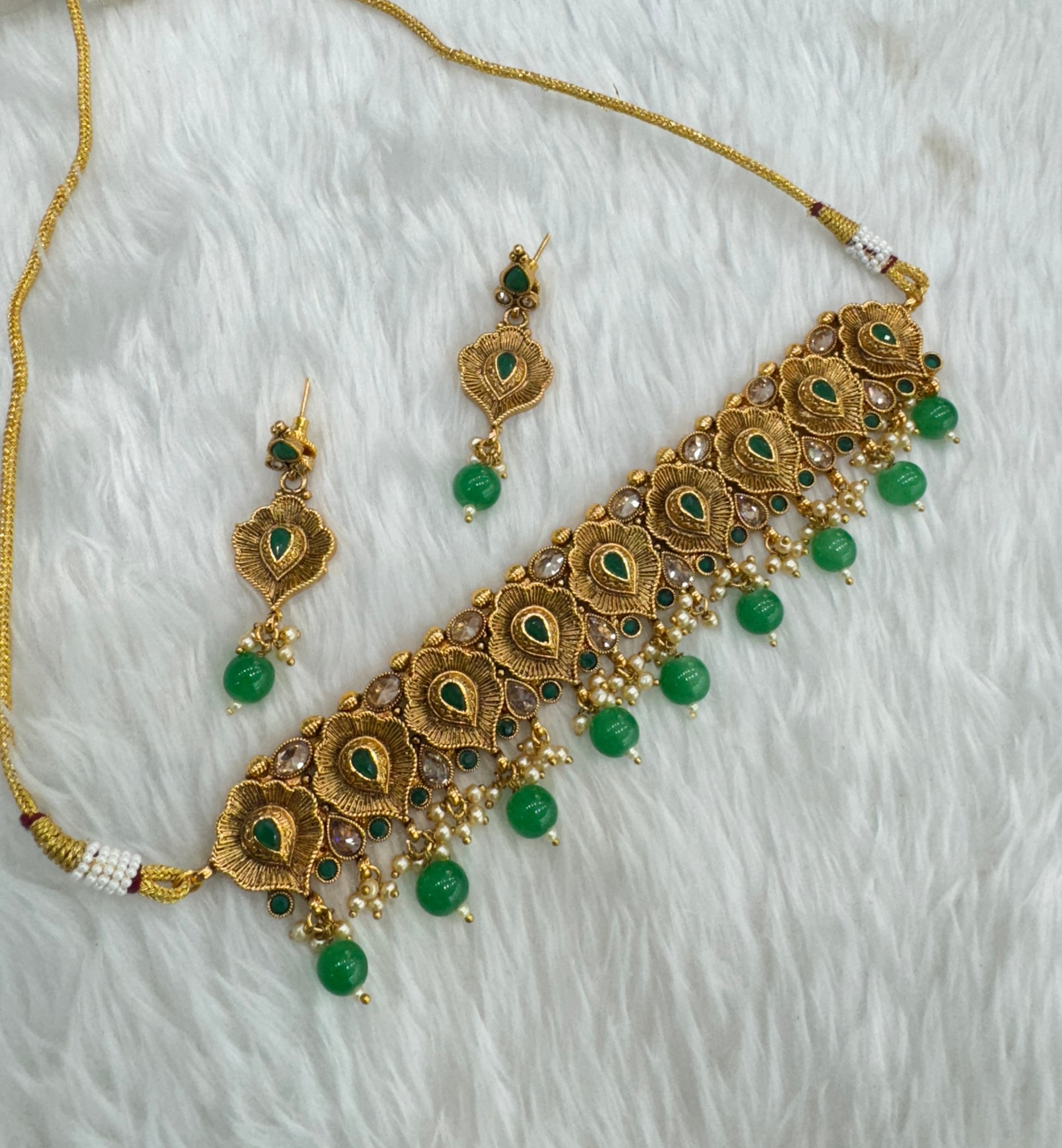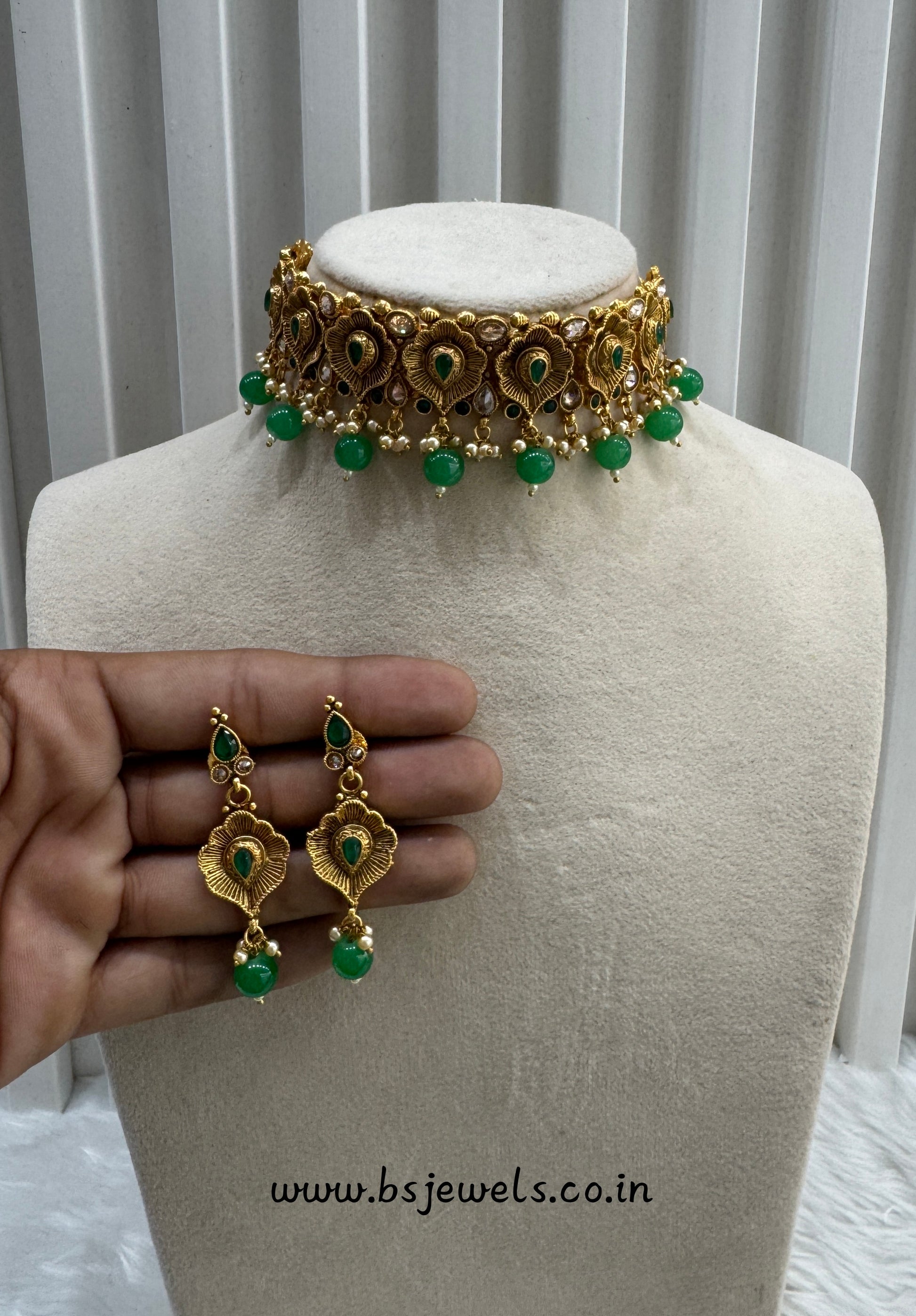 * Gold Finish Polki Choker Set with earrings as shown in the pic.