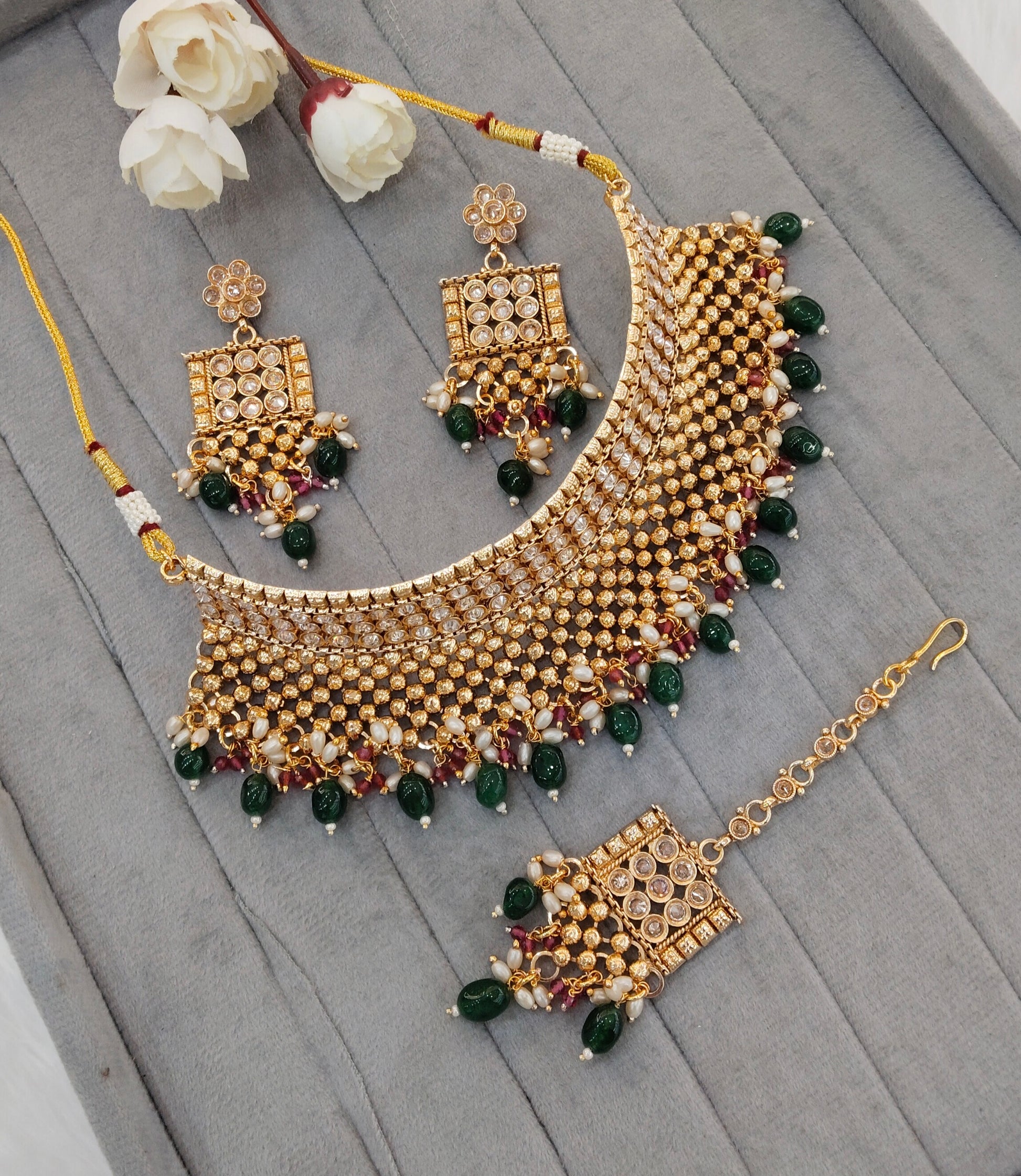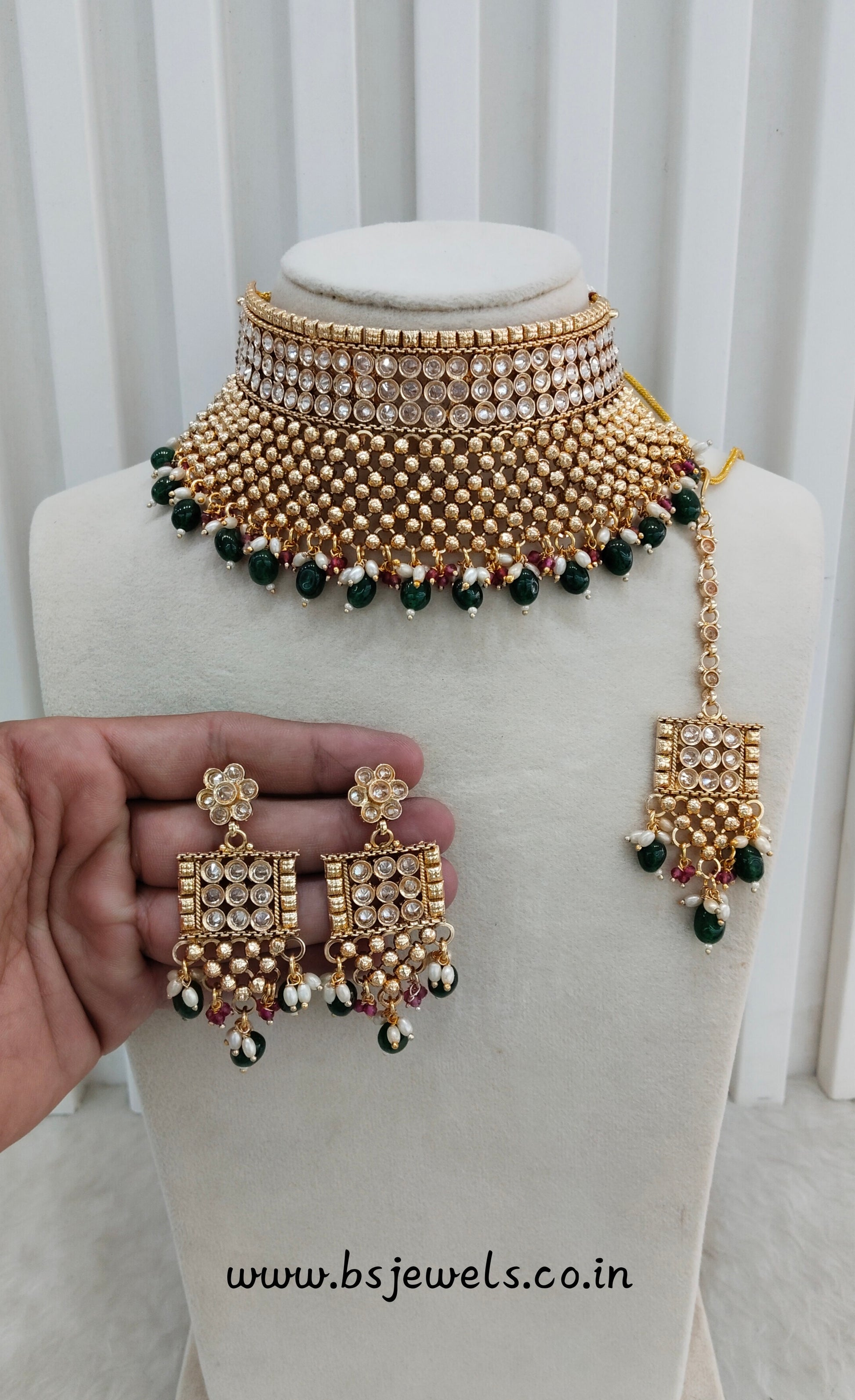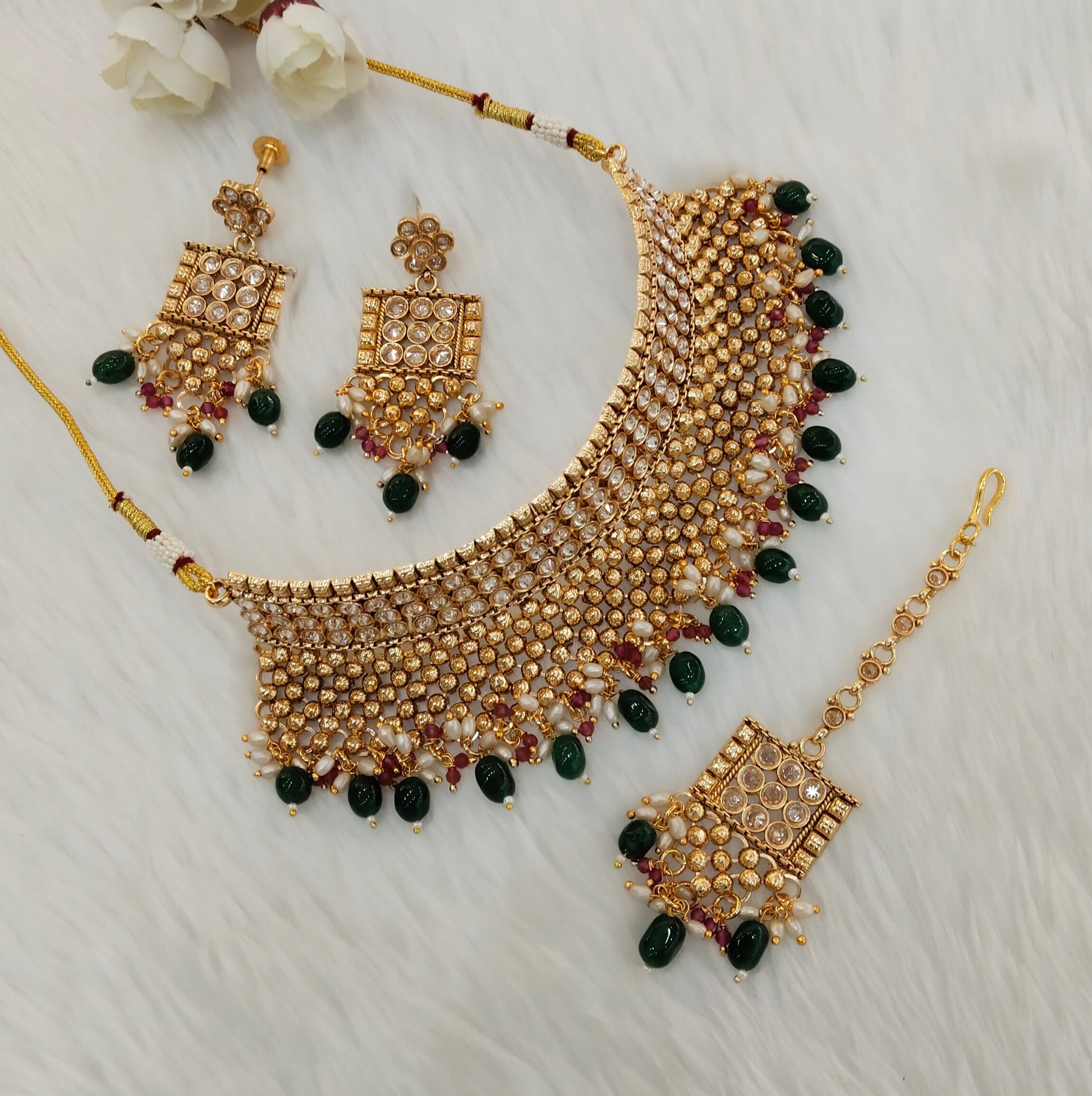 * Gold Finish Polki Choker Set with earrings as shown in the pic.