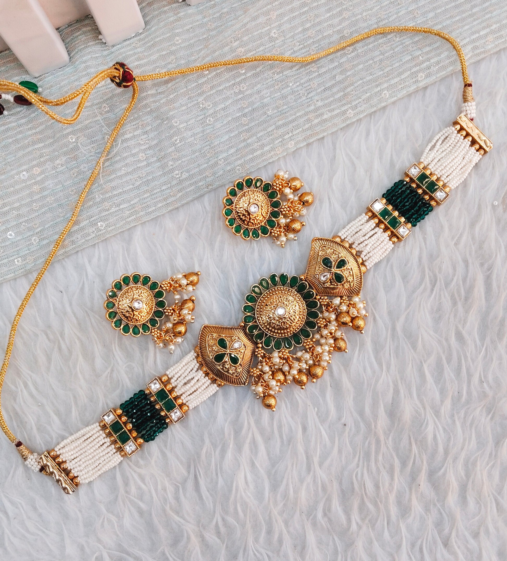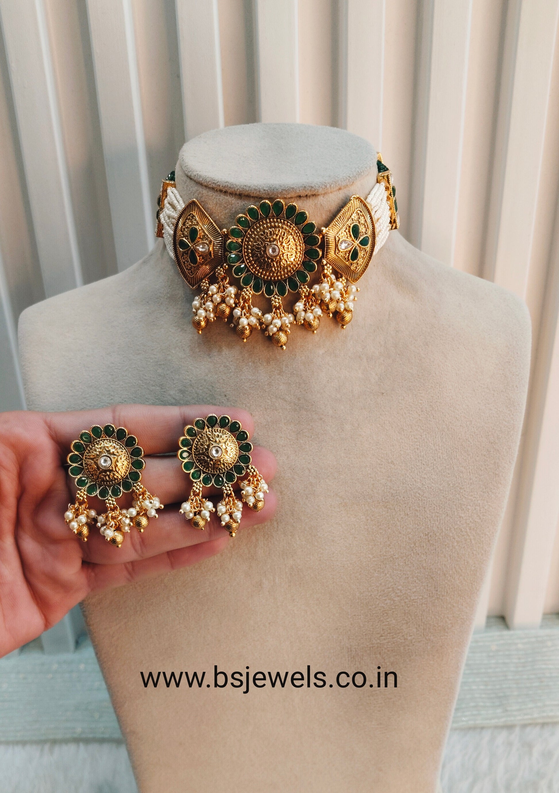 * Gold Finish Polki Choker Set with earrings as shown in the pic.