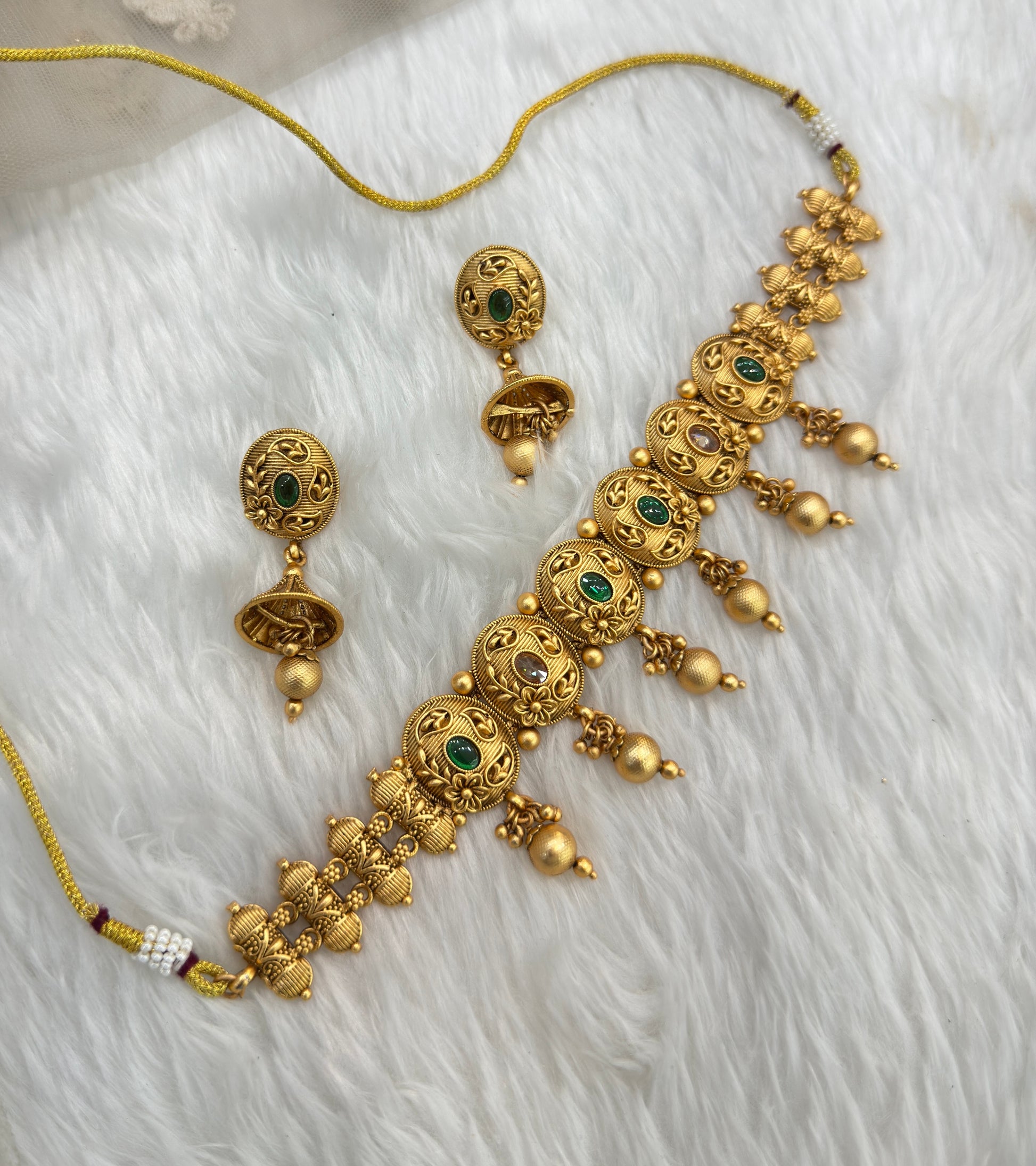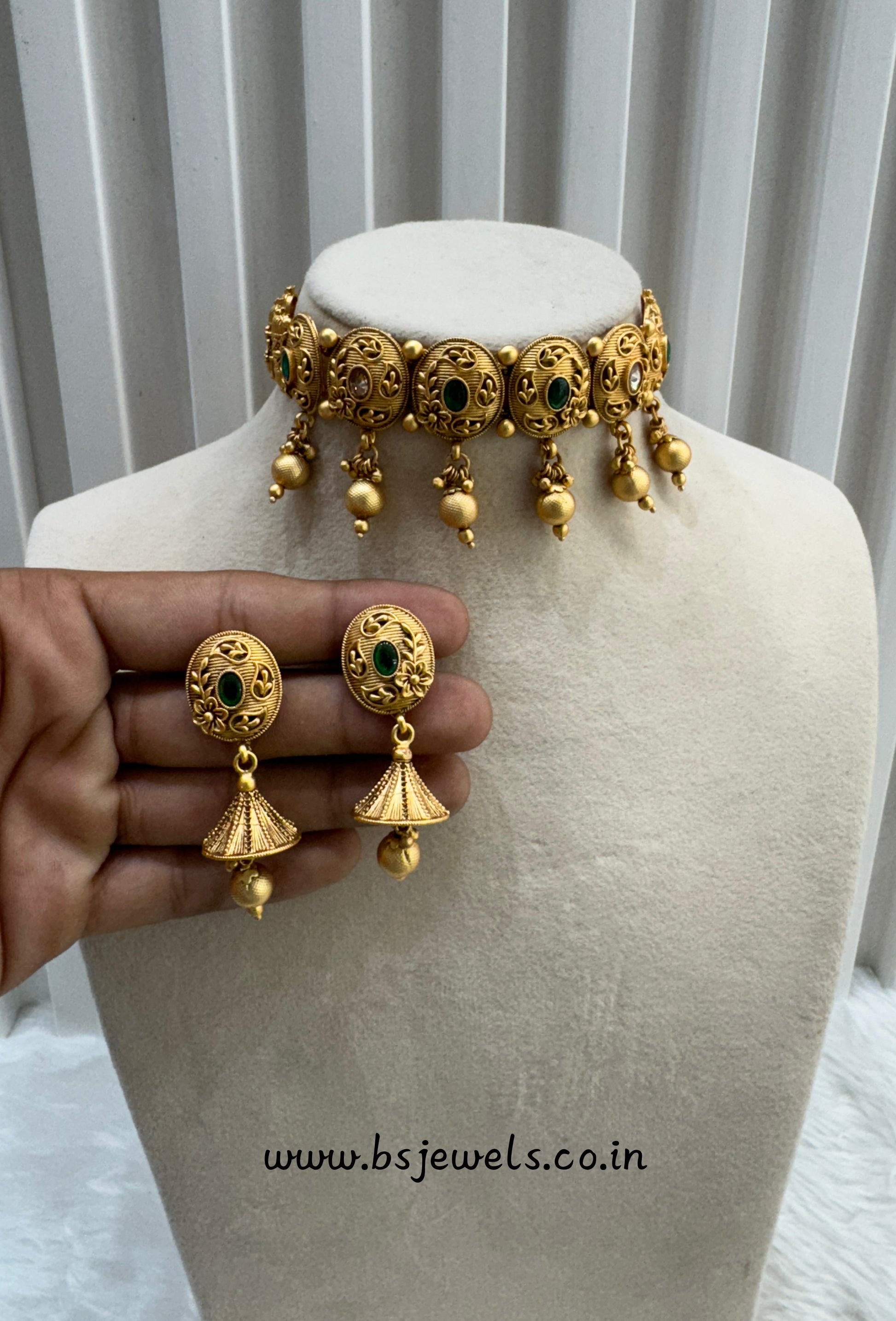 Green Gold Polki Jhumki Choker Jewellery Bobo Set
