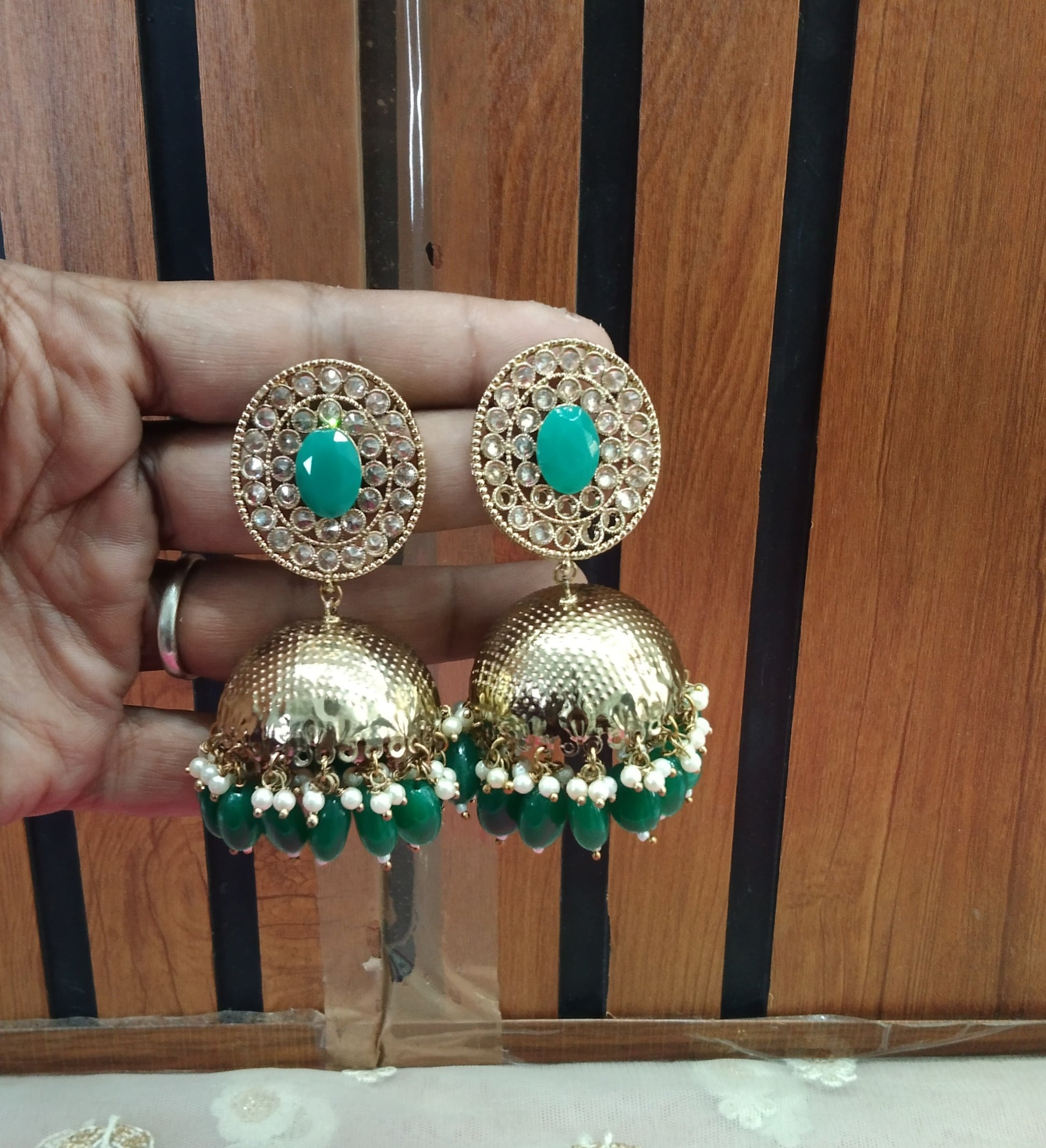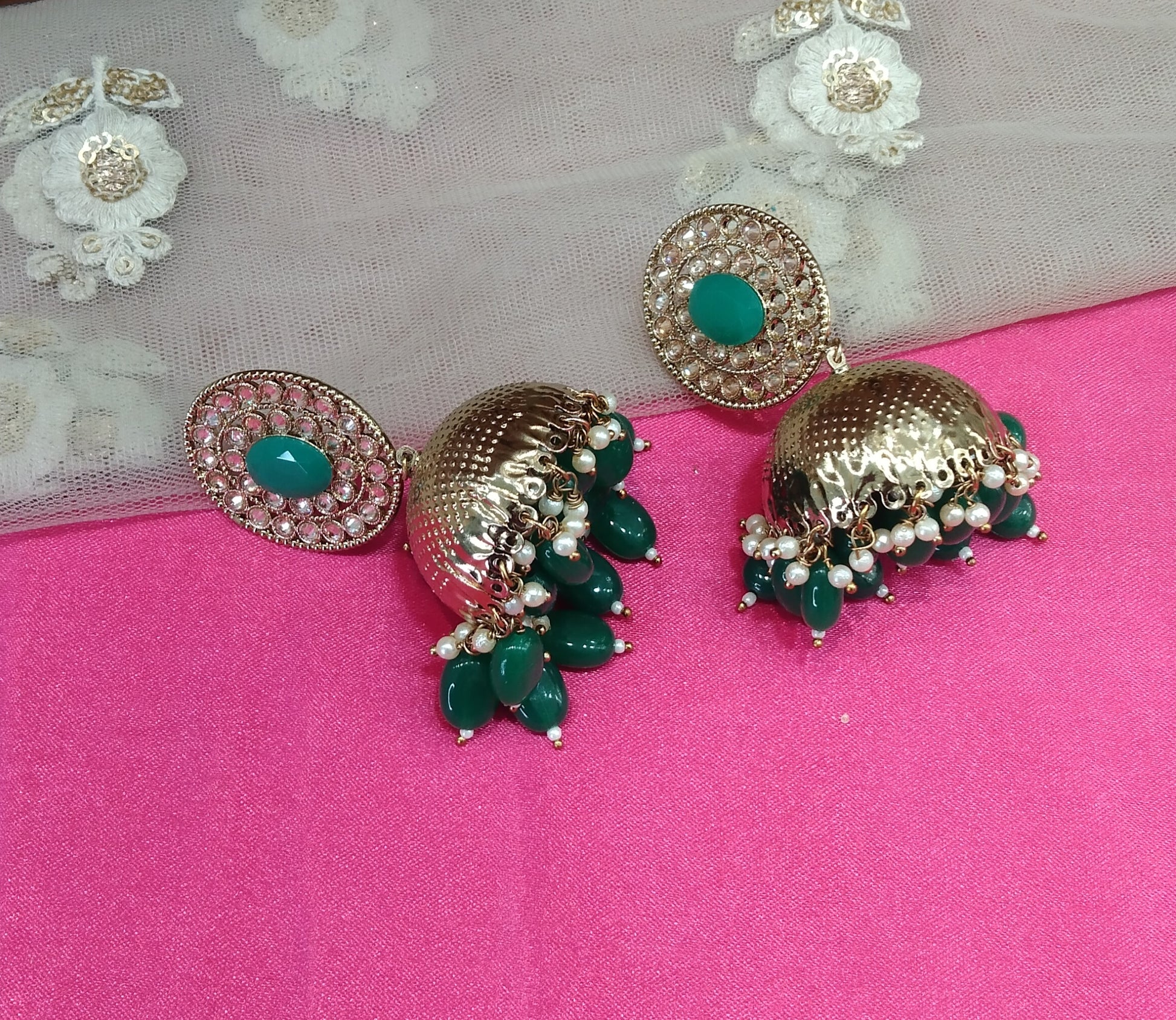Green Jhumka Sara Bollywood Earrings