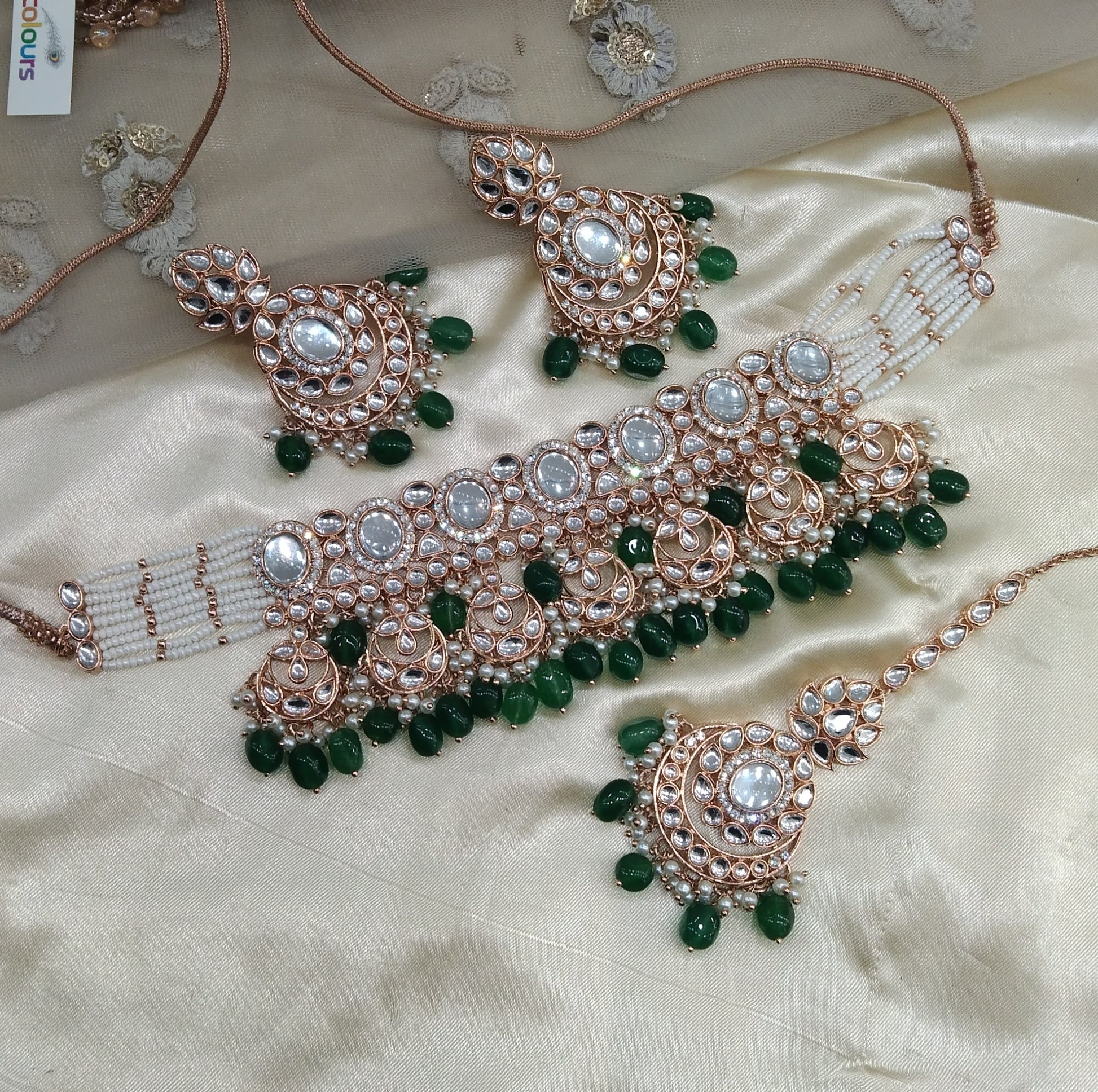 Green Kundan 21 Karet Choker Jewellery Huchi Set