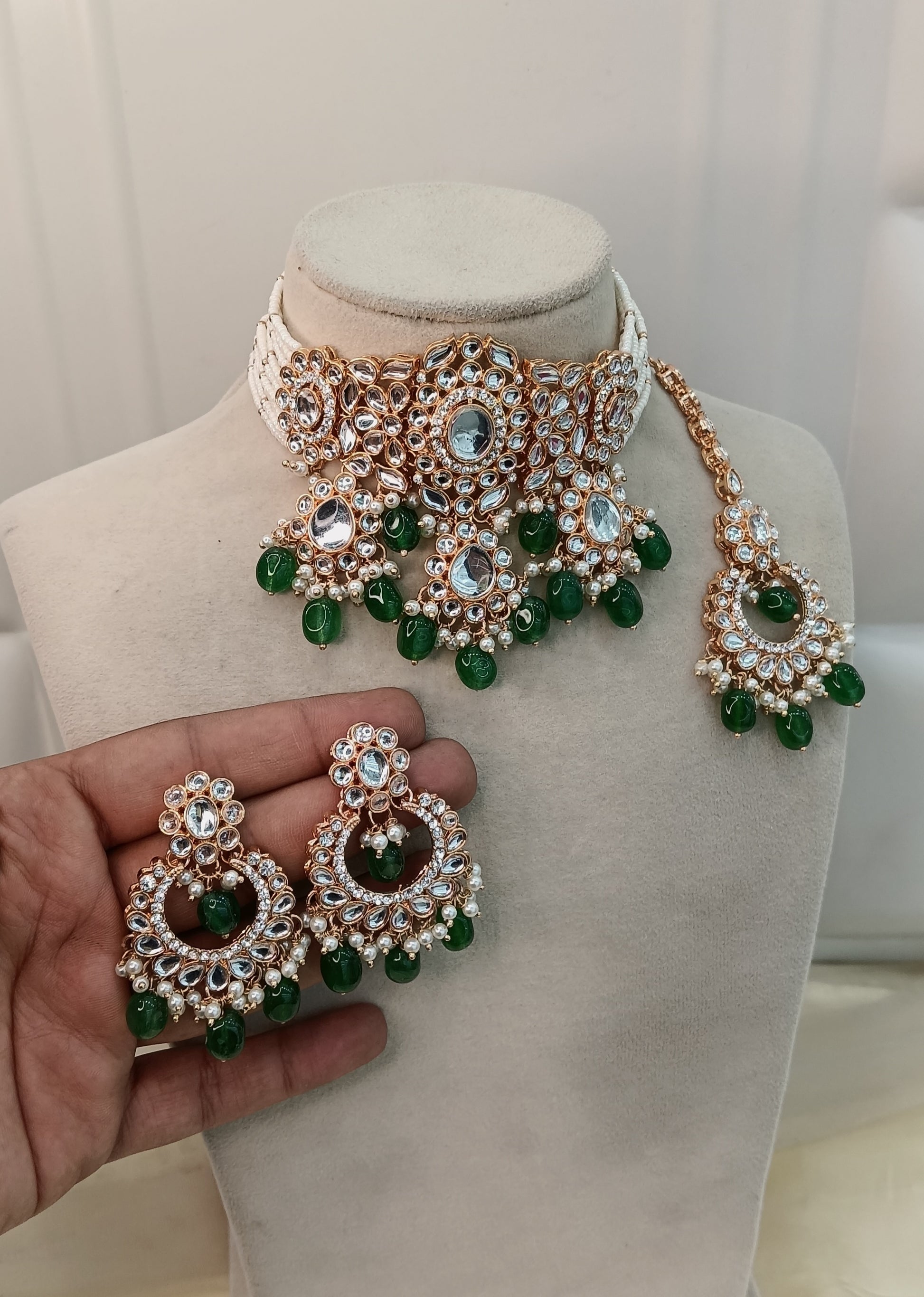 Green Kundan 21 Karet Choker Jewellery Huchi Sett