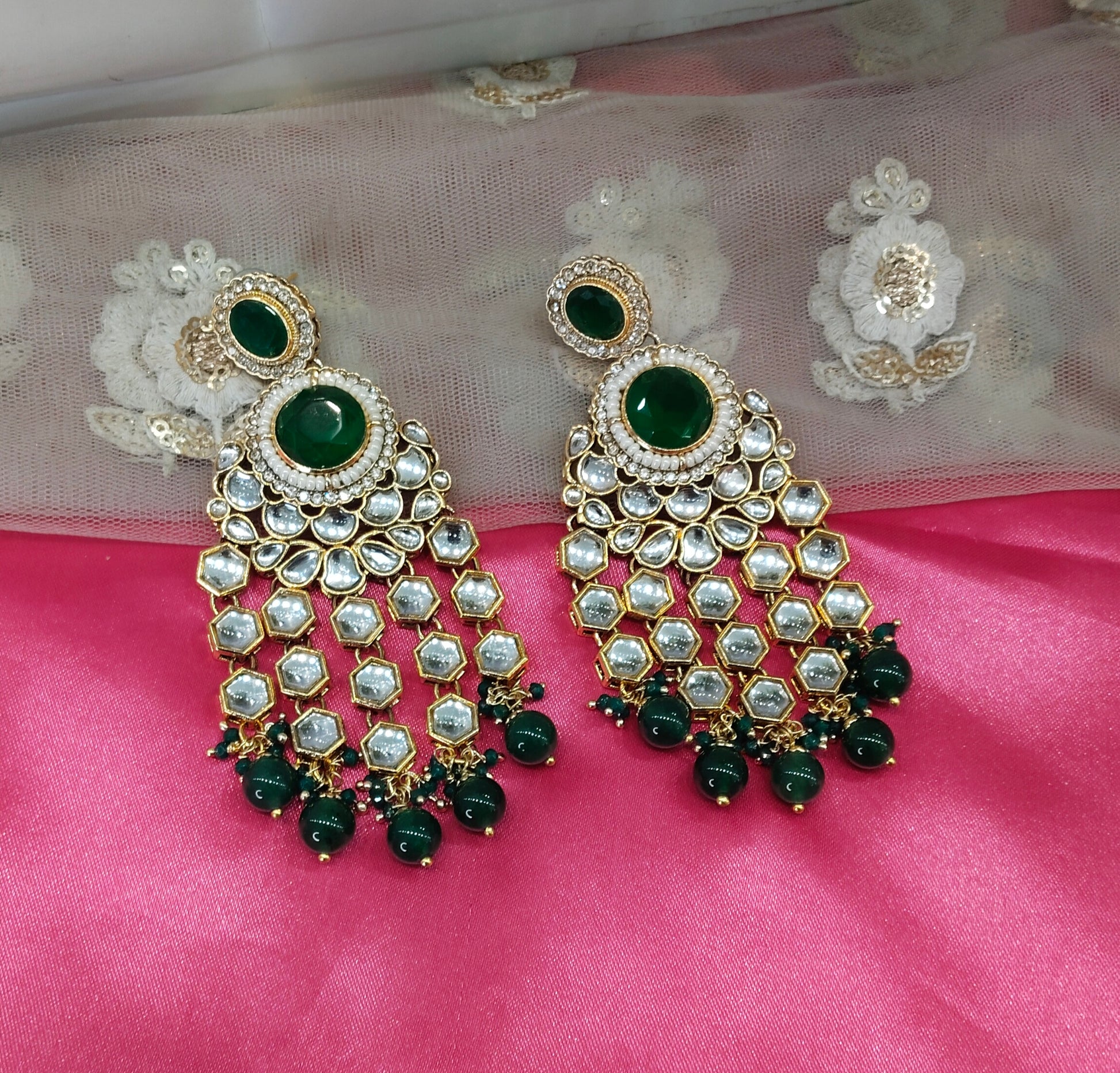 Green Kundan Visit Bollywood Earrings