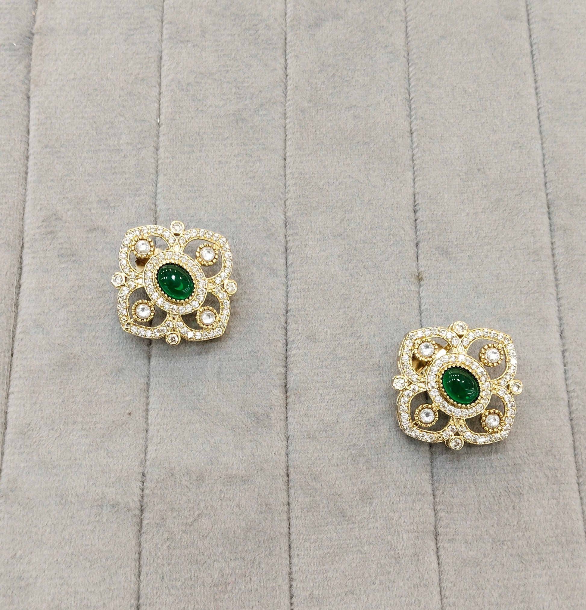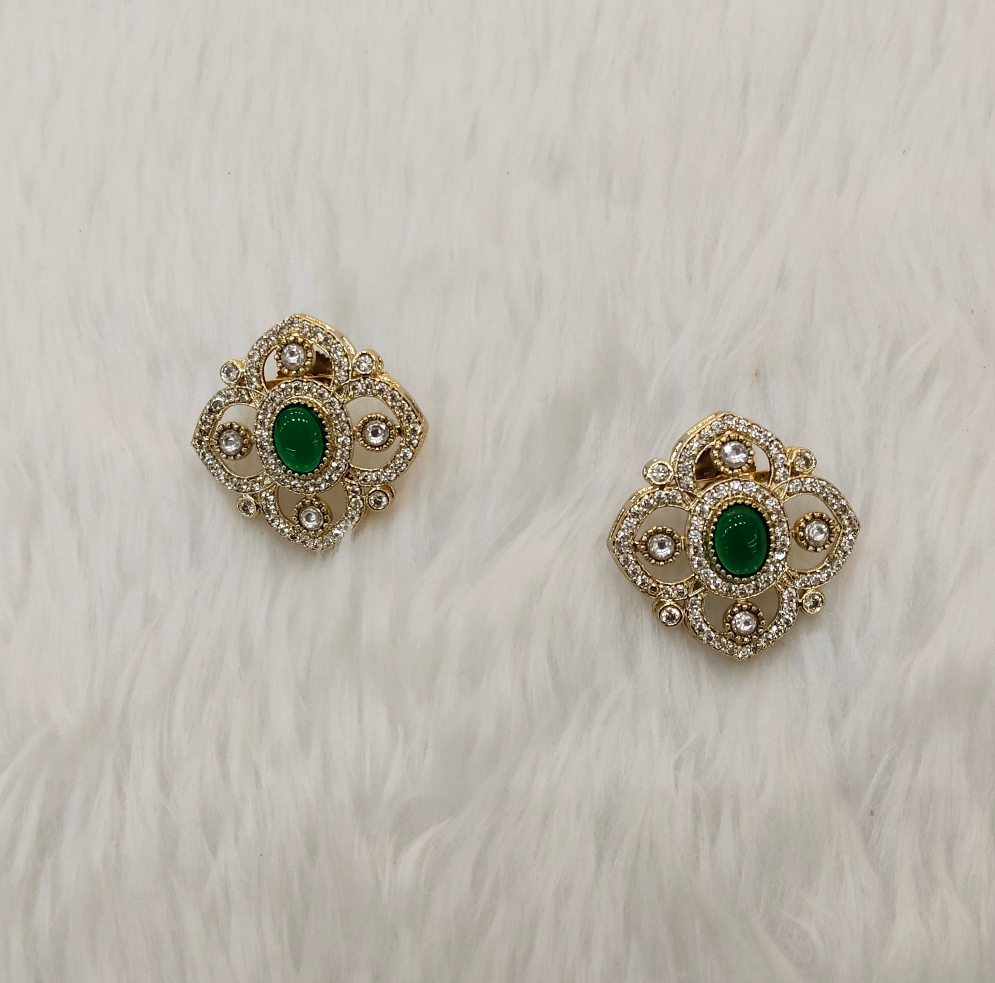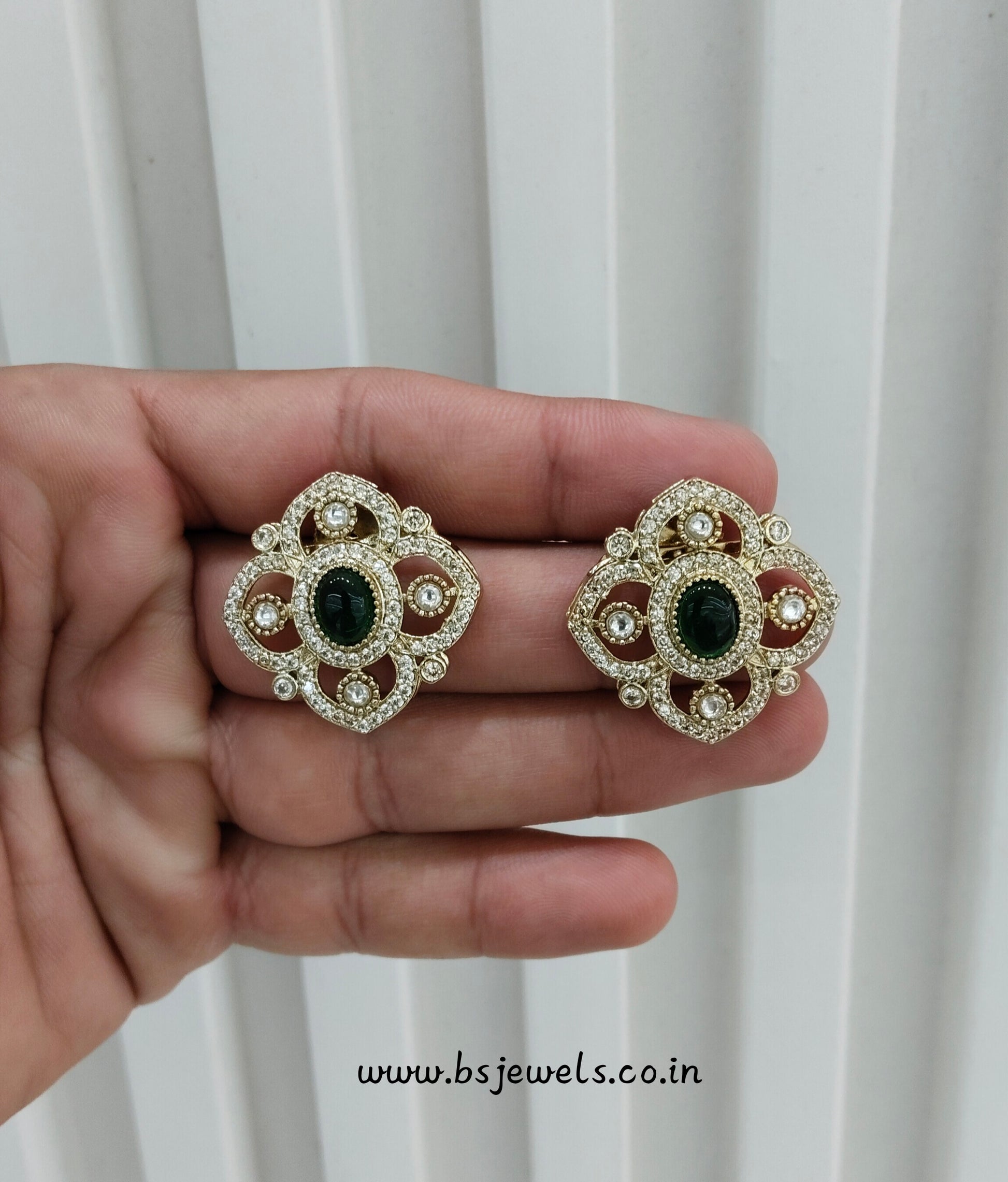 Green Moissanite Kundan Bollywood Dhillon Earrings