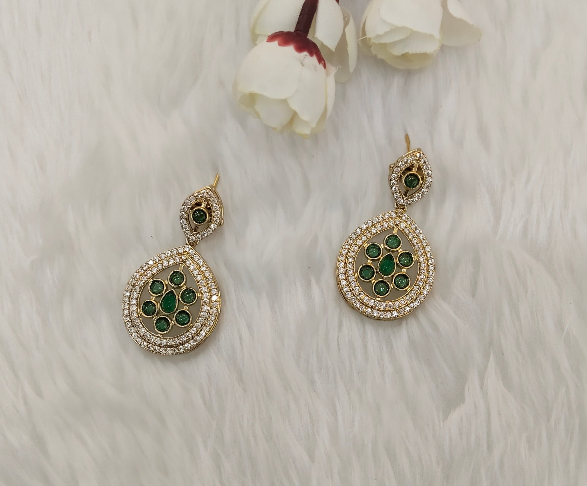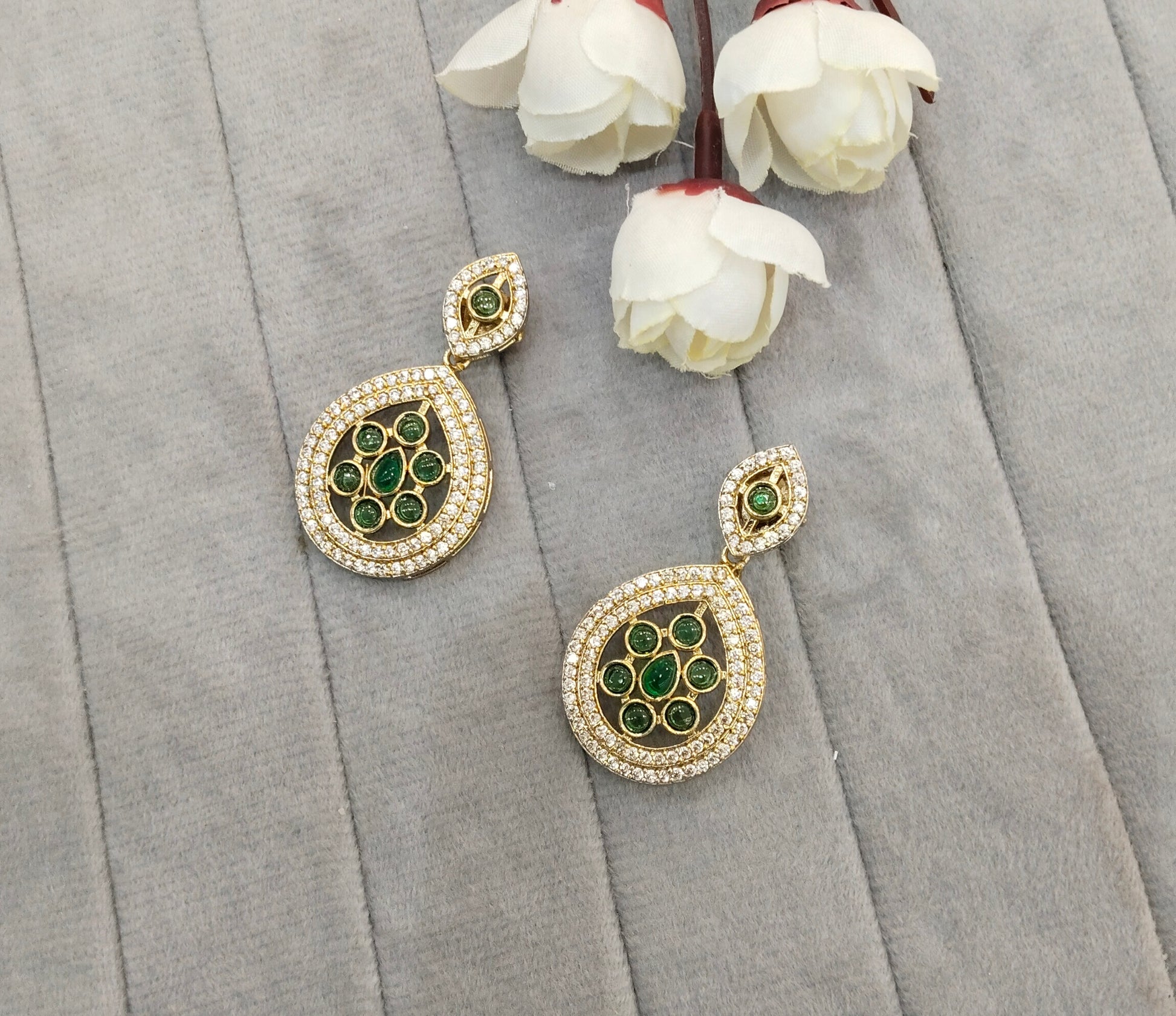 Green Moissanite Kundan Bollywood Jombi Earrings