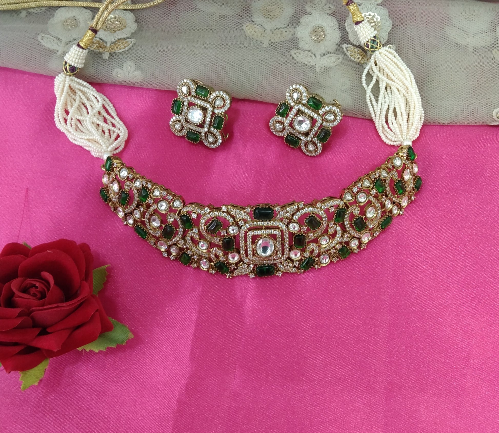 Green Moissanite Kundan Choker Jewellery Saniya Set