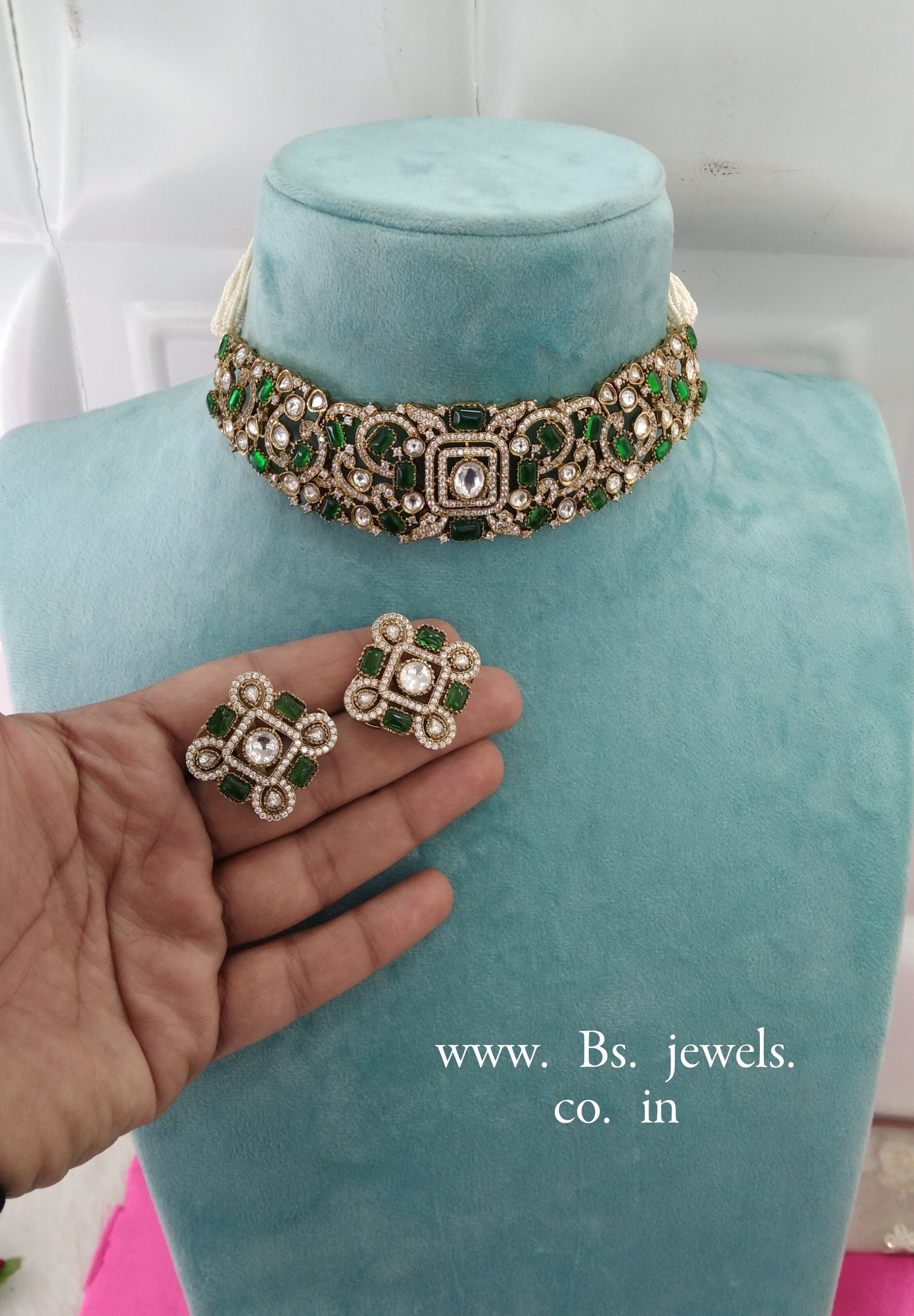 *Moissanite kundan Choker set with earrings .