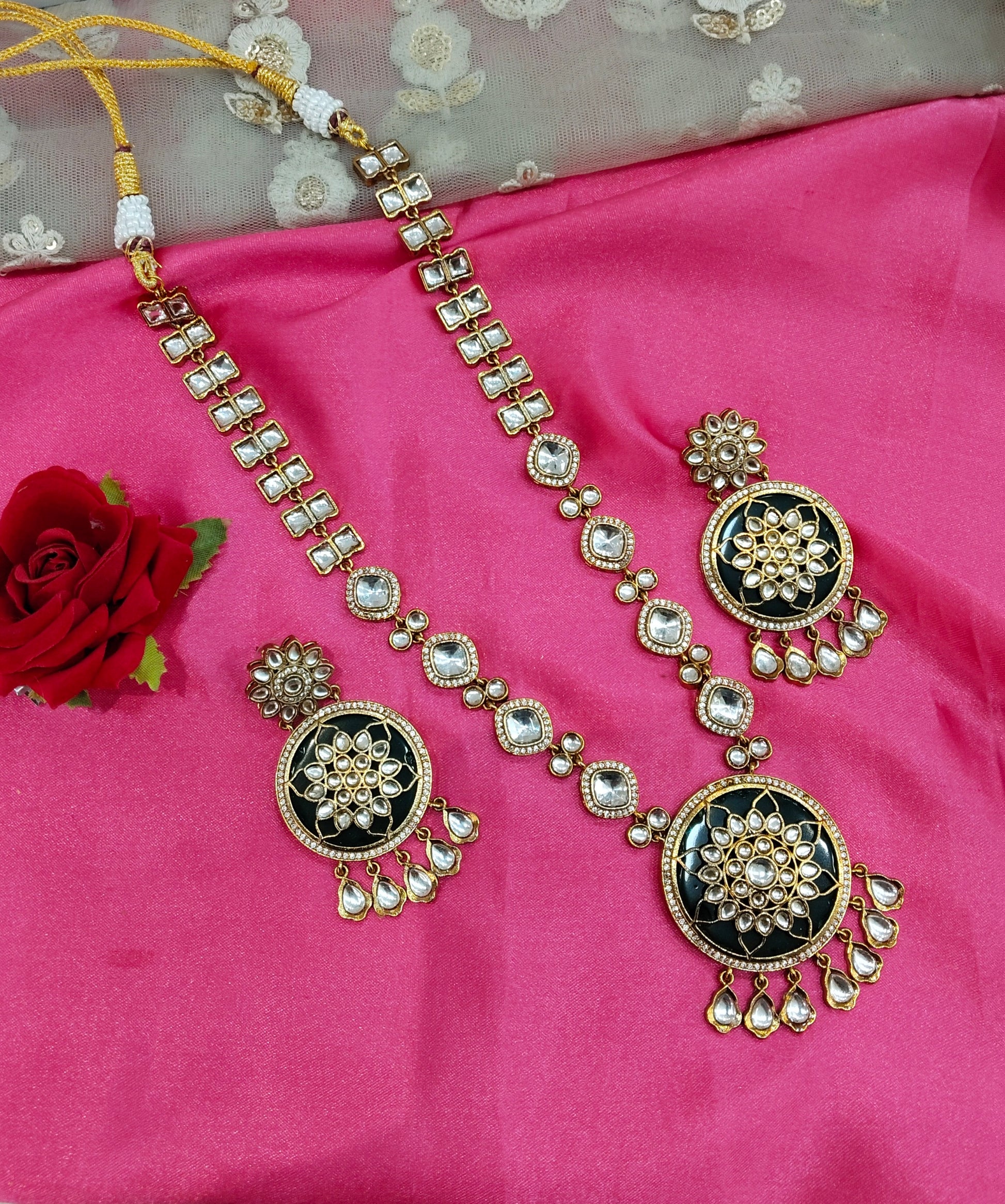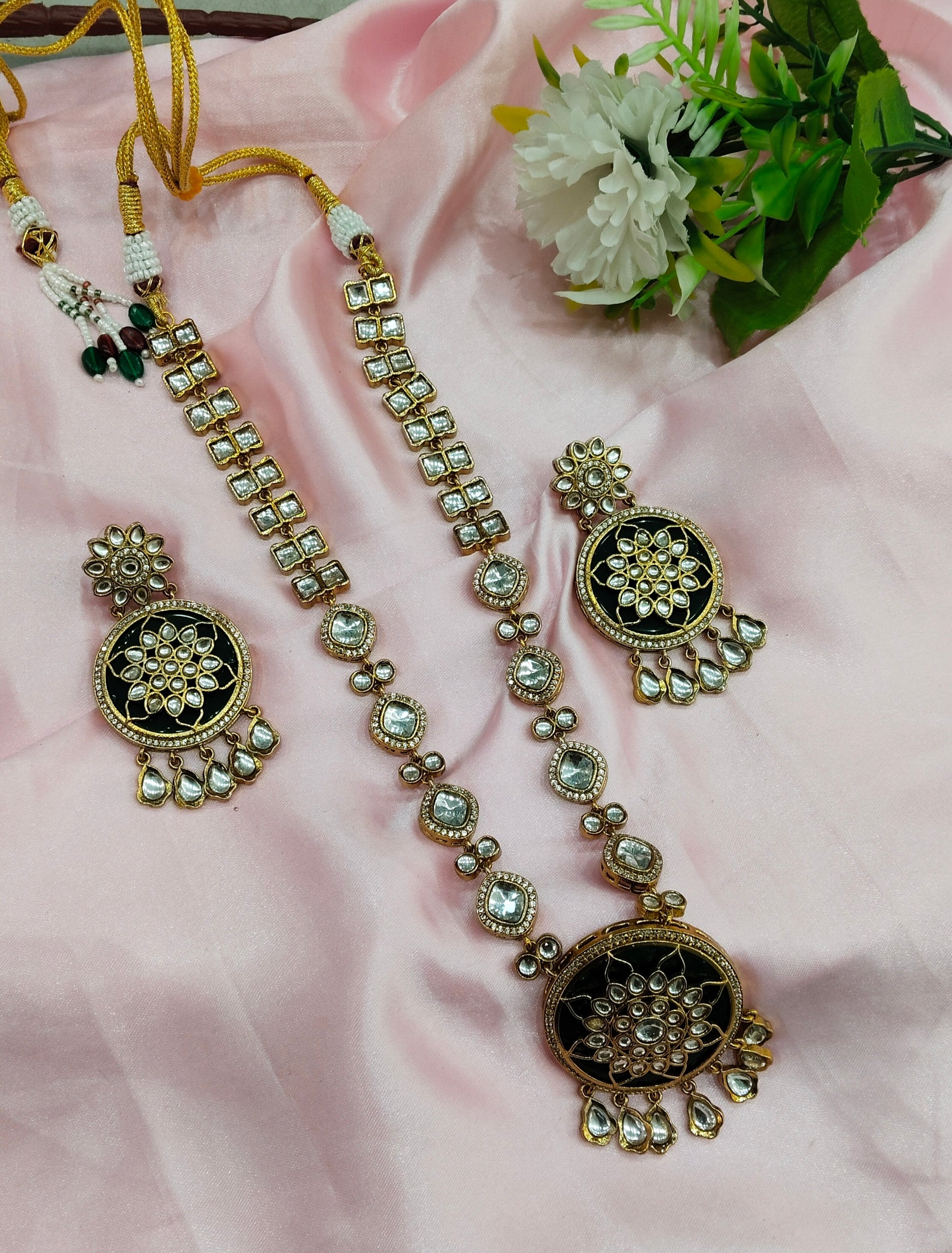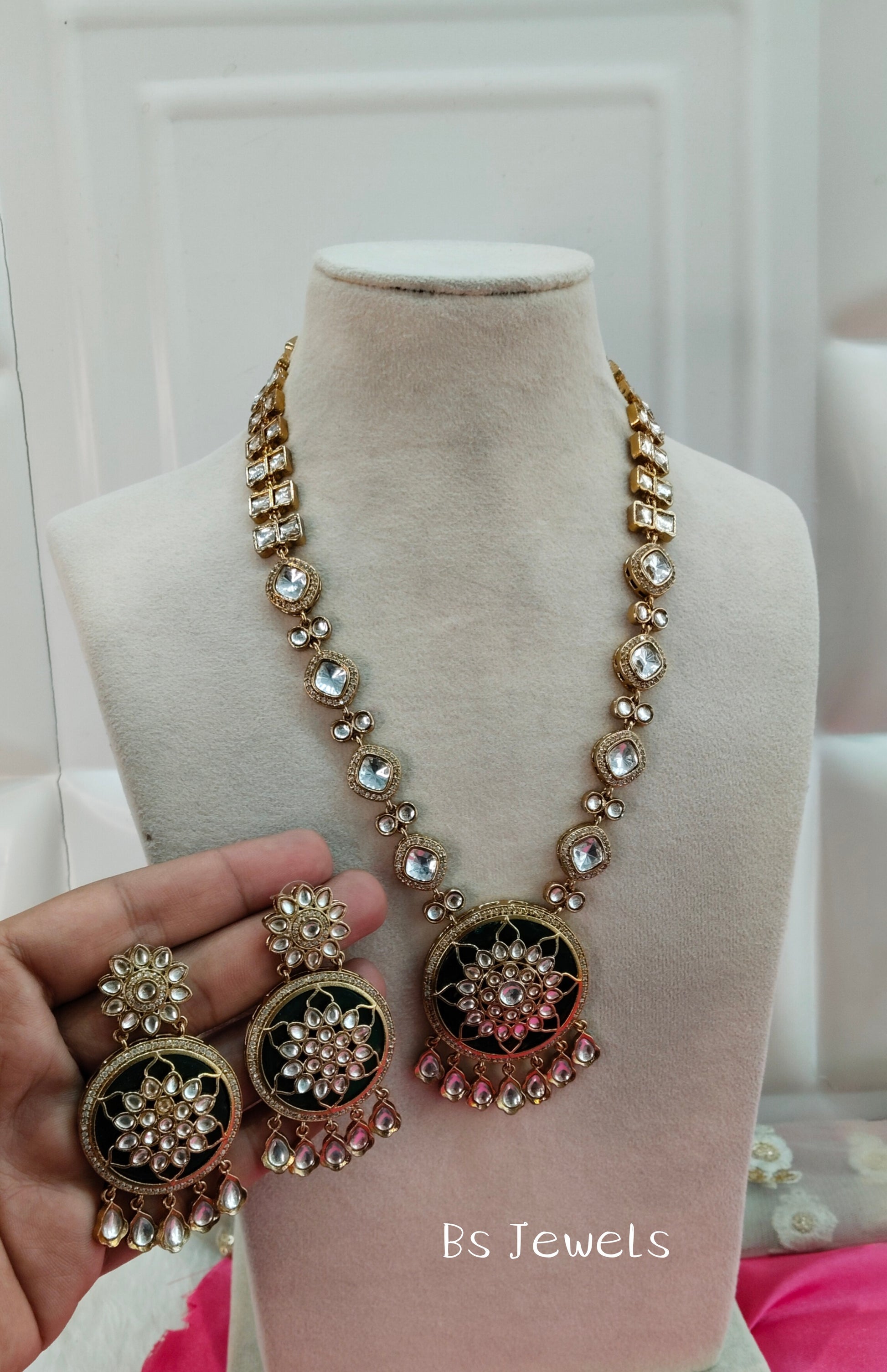 *Moissanite kundan Long Rani Haar necklace set with earrings .