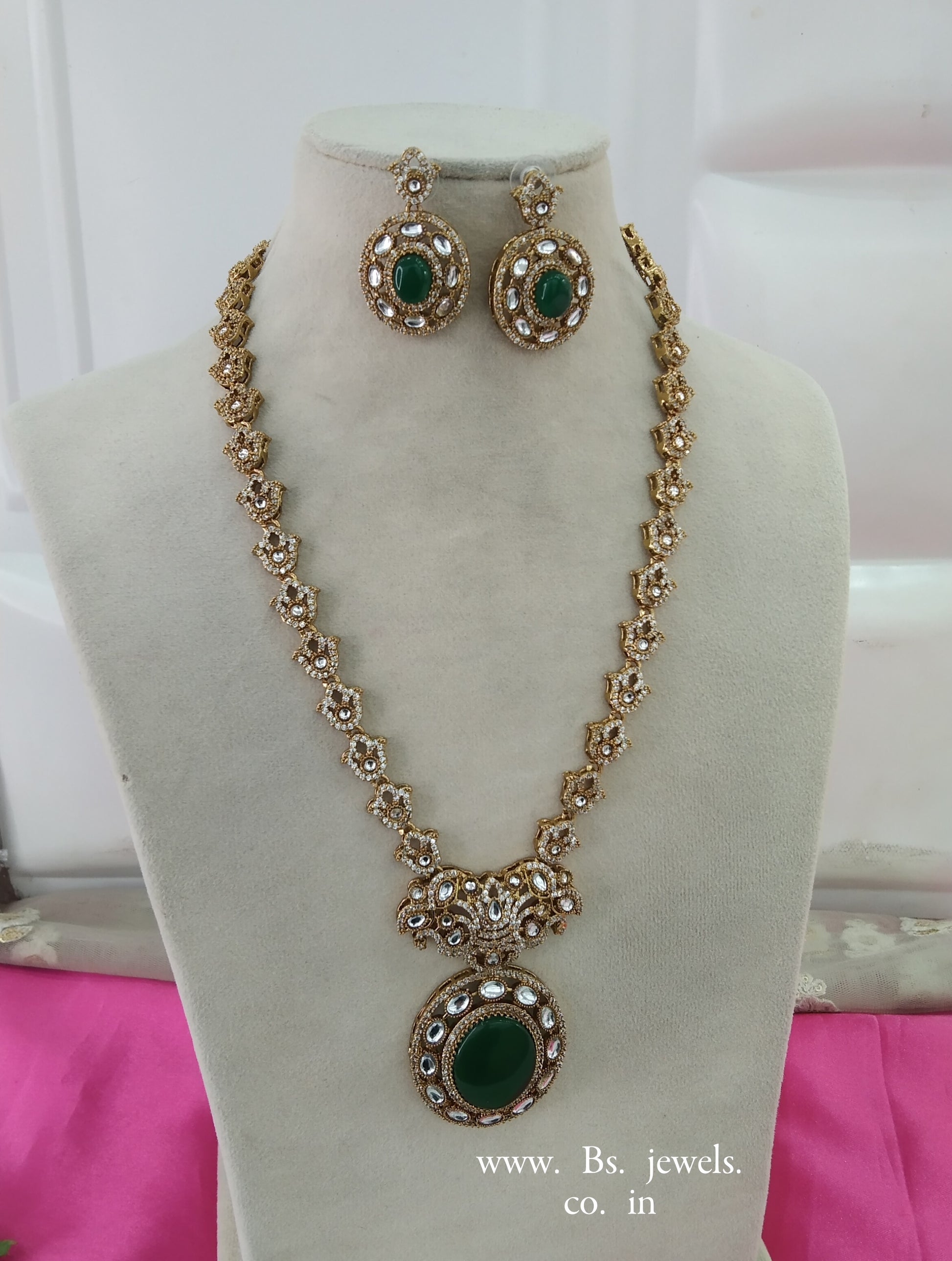 Green Moissanite Kundan Long Ranihaar Necklace Jewellery Sunita Set