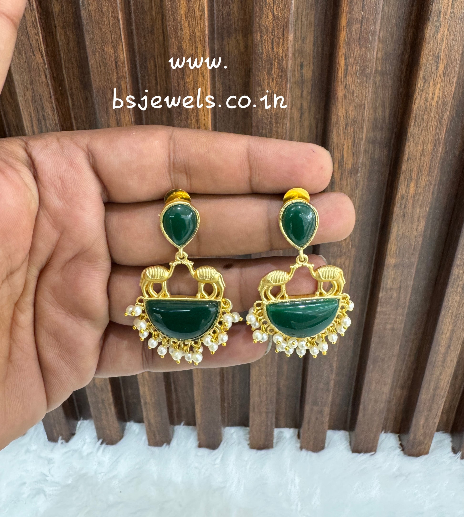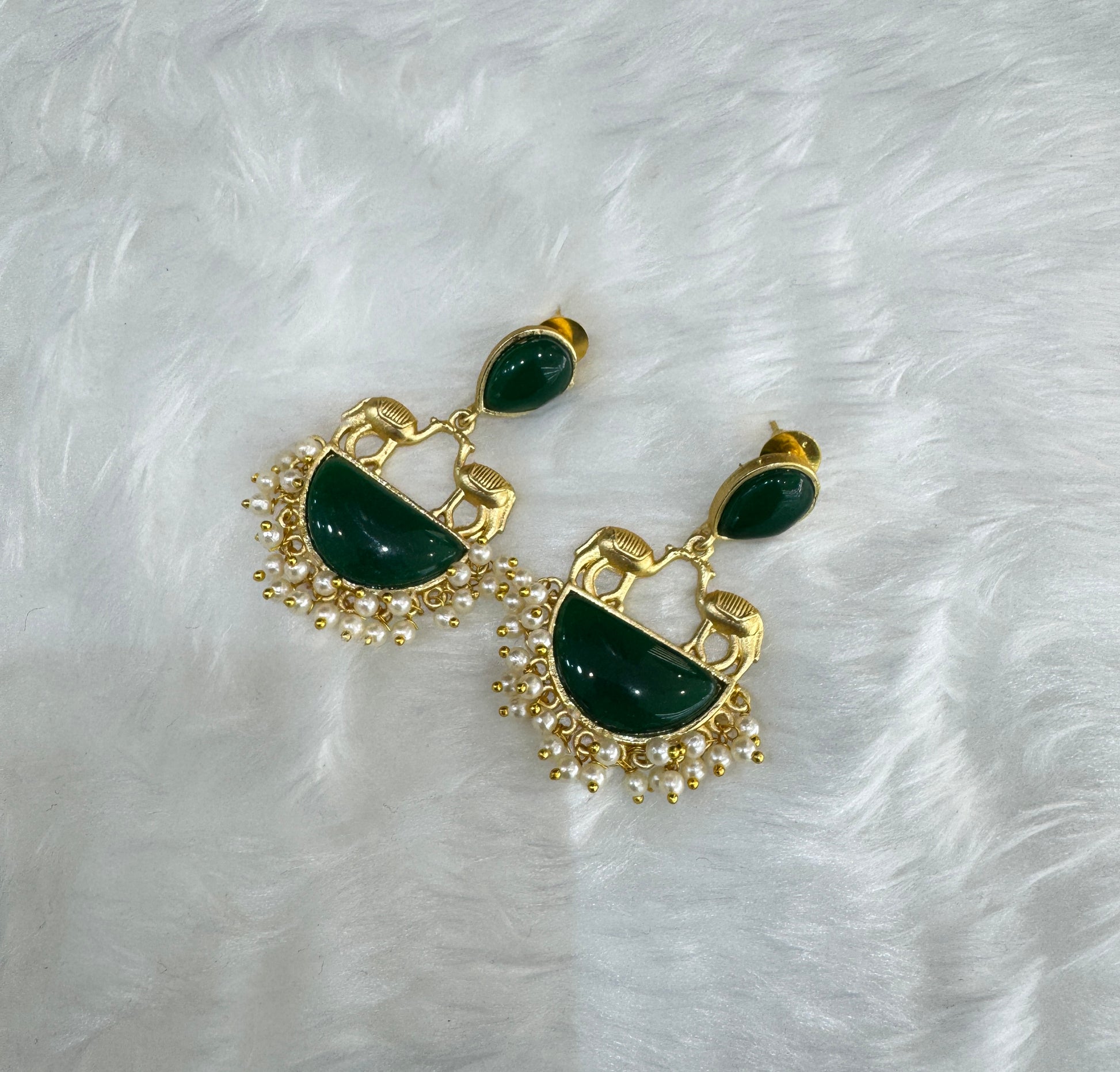 Green Mother Of Pearl Bollywood Aarna Earrings