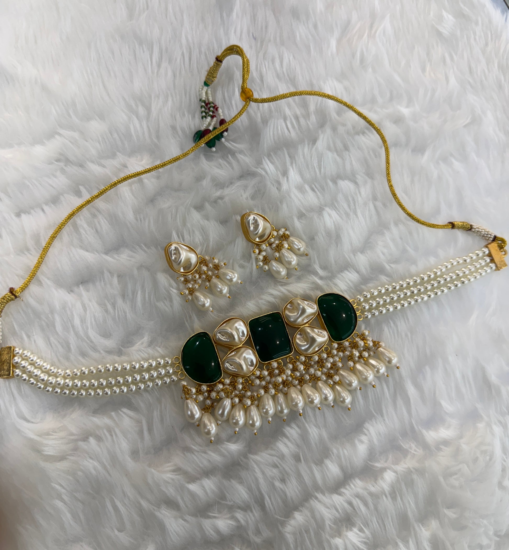 Green Mother Of Pearl Stone Chokar Jewellery Olivia Set