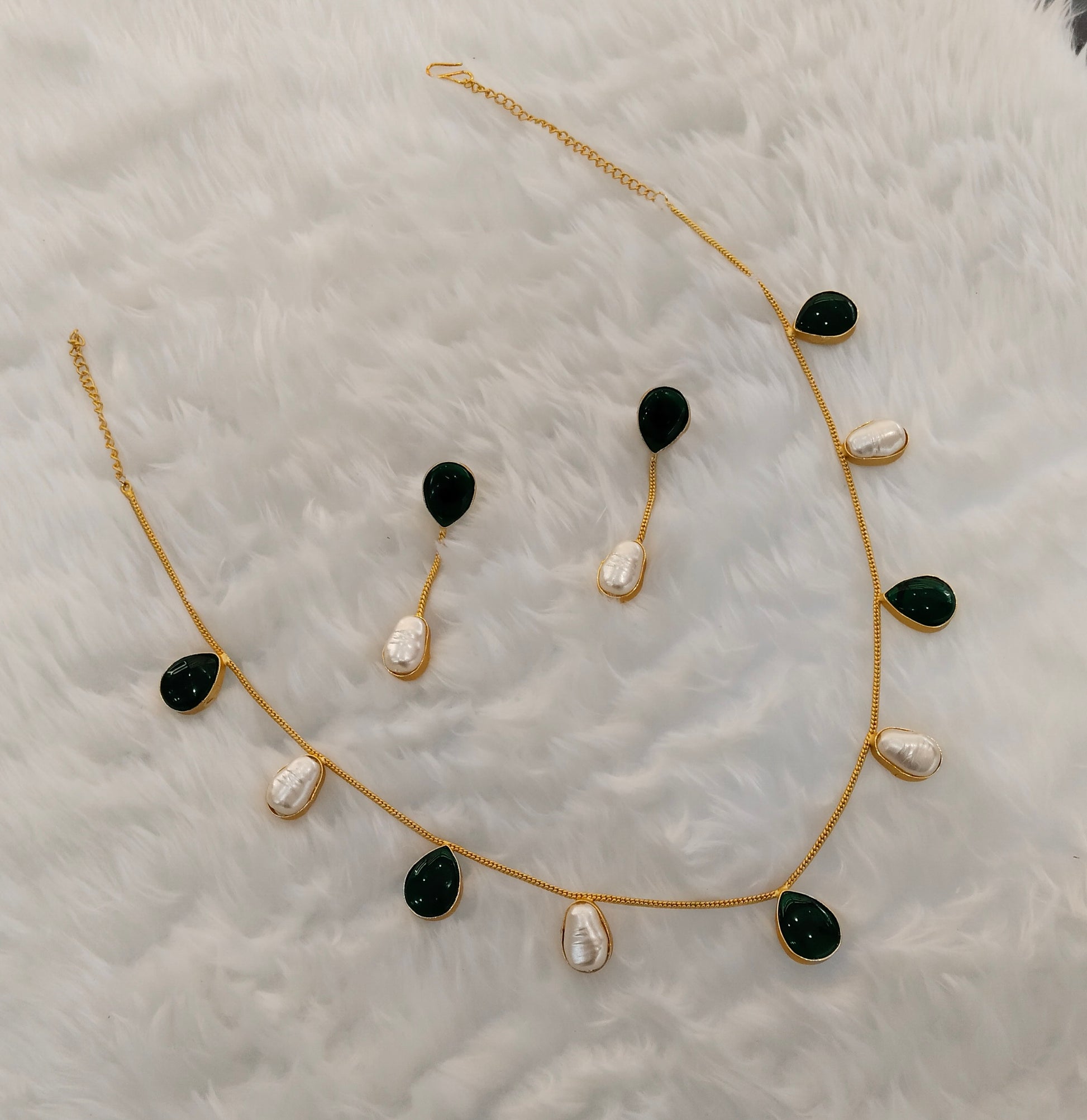 Green Mother Of Pearl Stone Necklace Jewellery Sagge Set