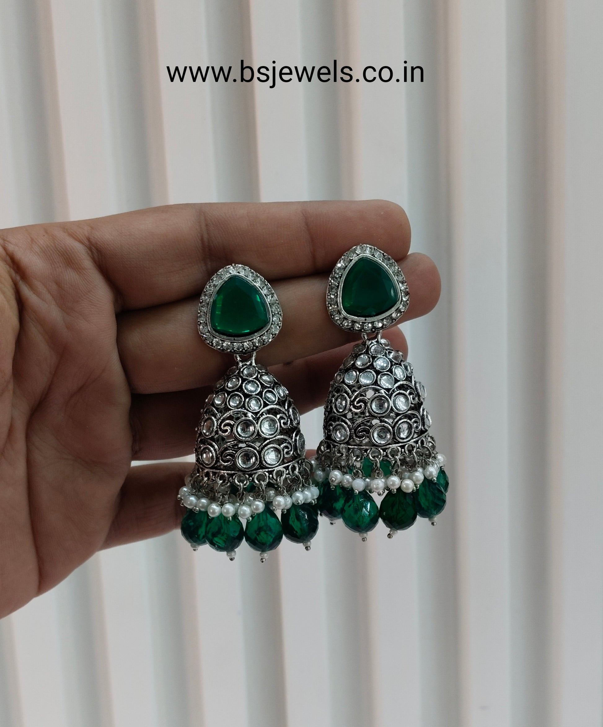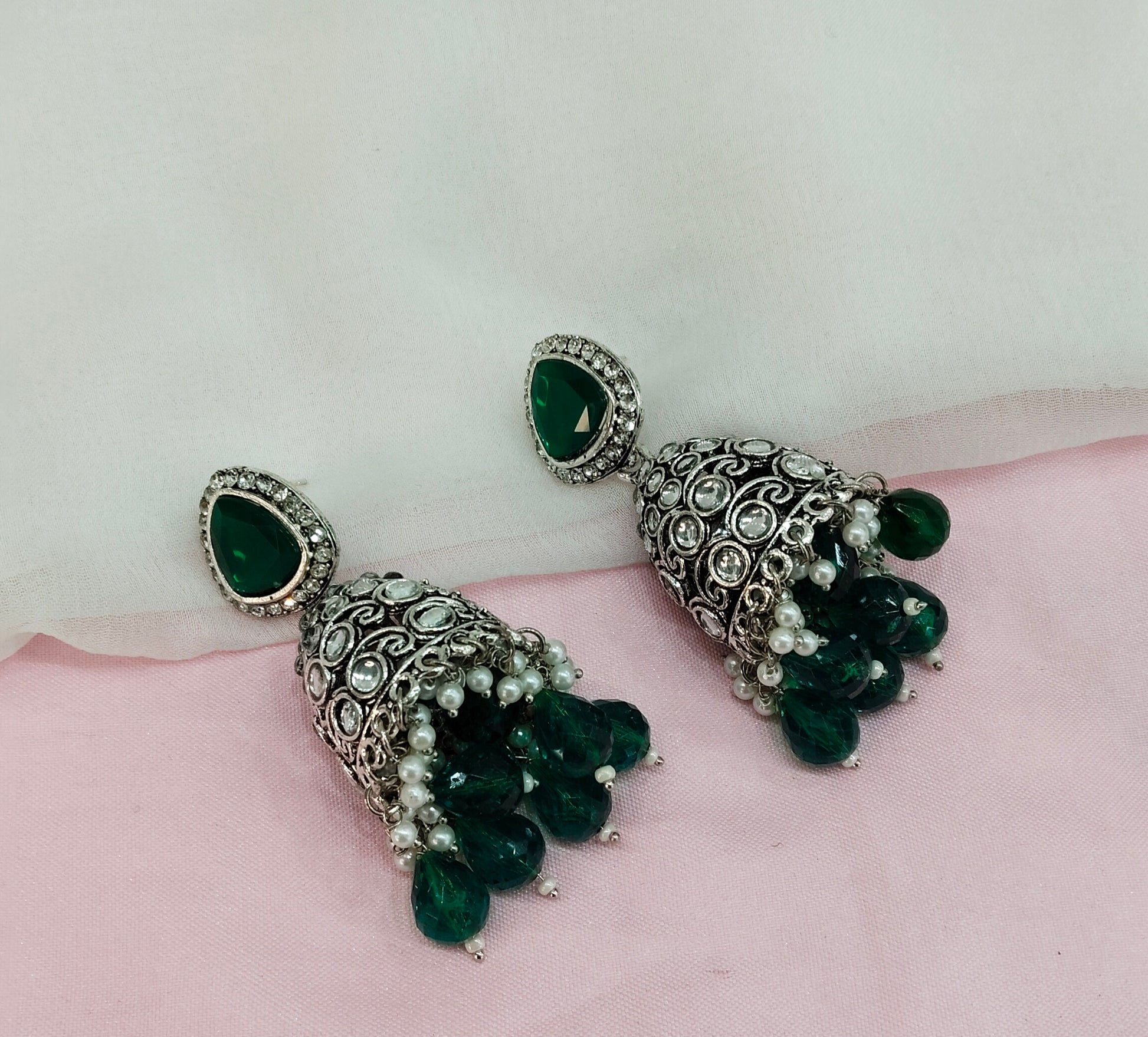 Green Oxidized Metal Helsinki Jhumka Earrings Set