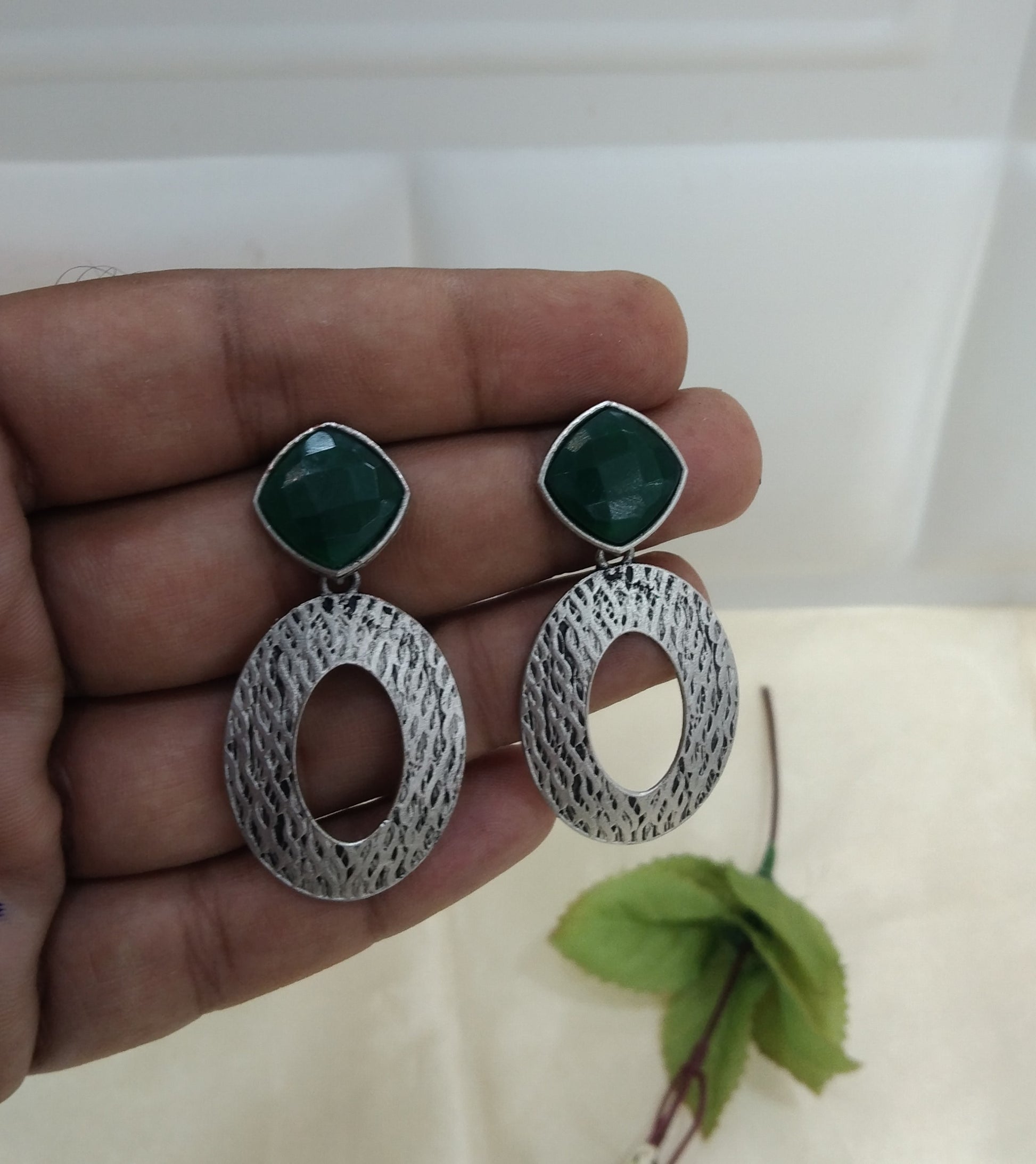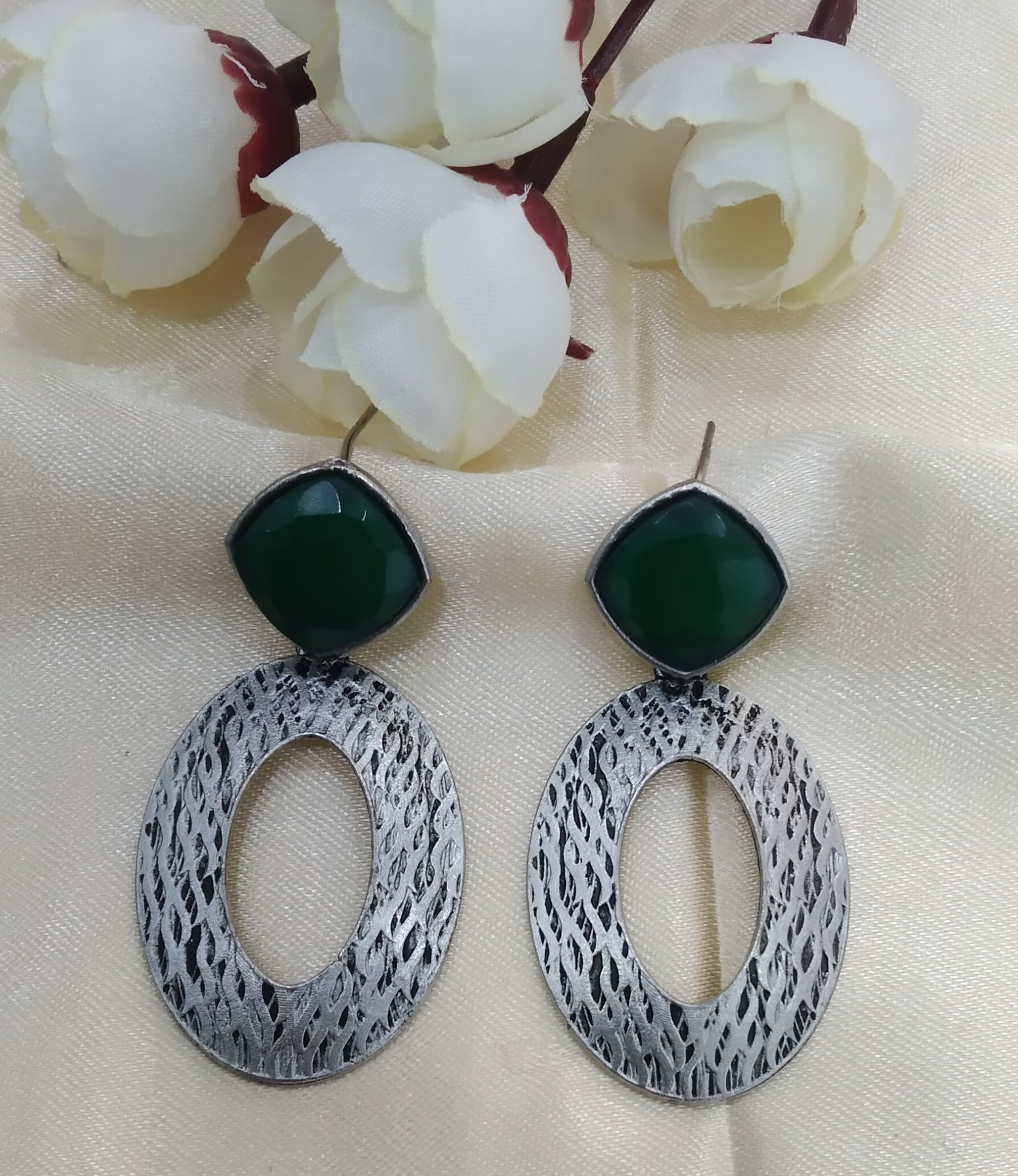 Green Oxidized Metal Shalu Bollywood Earrings Jewellery