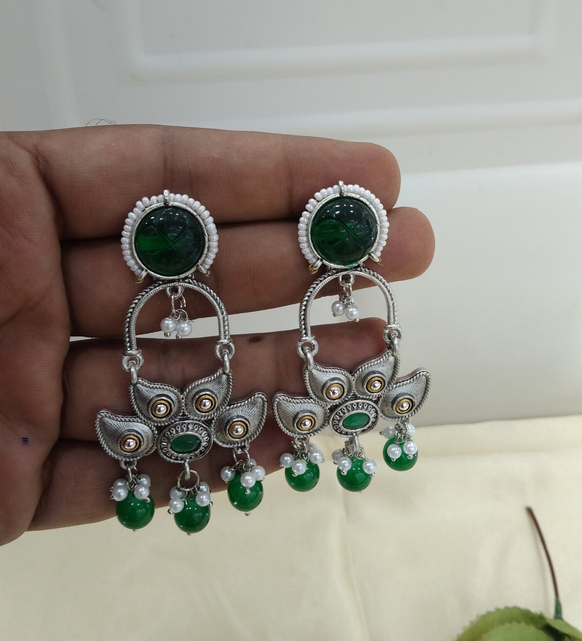 Green Oxidized Metal Shalu Bollywood Earrings Jewellery