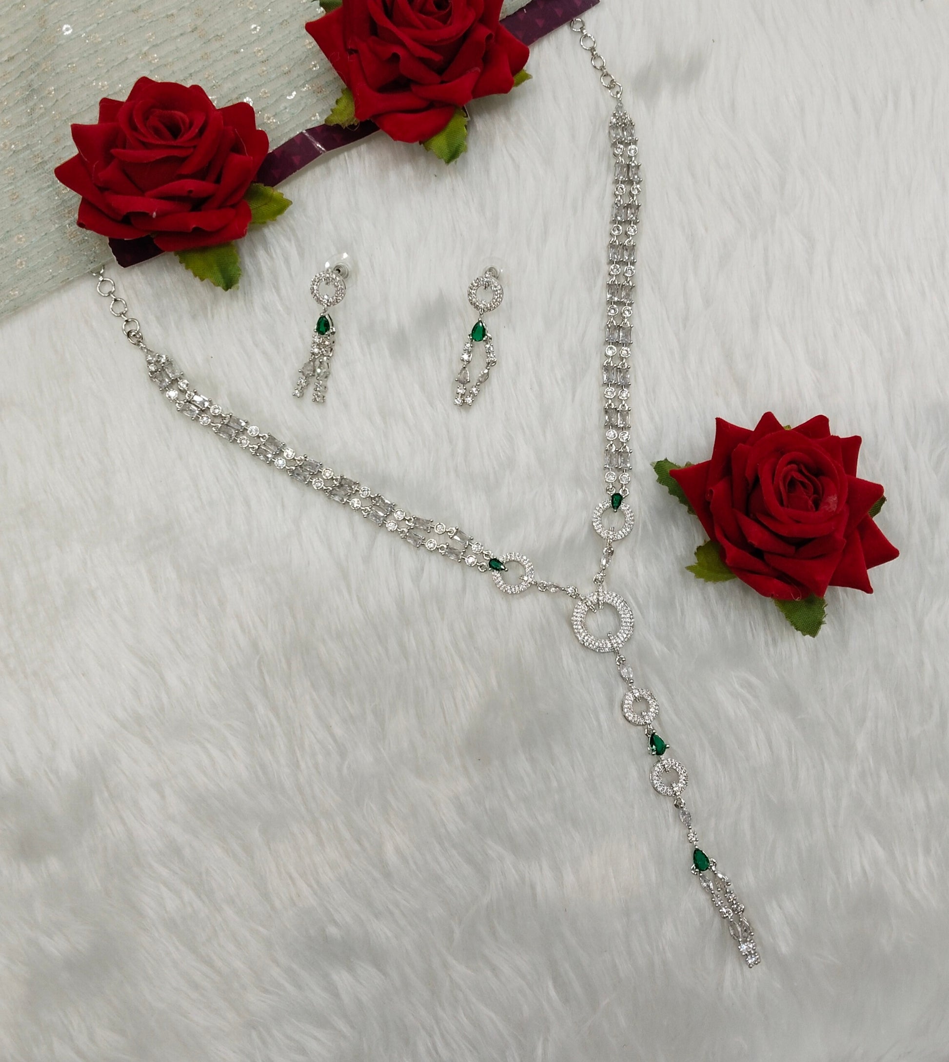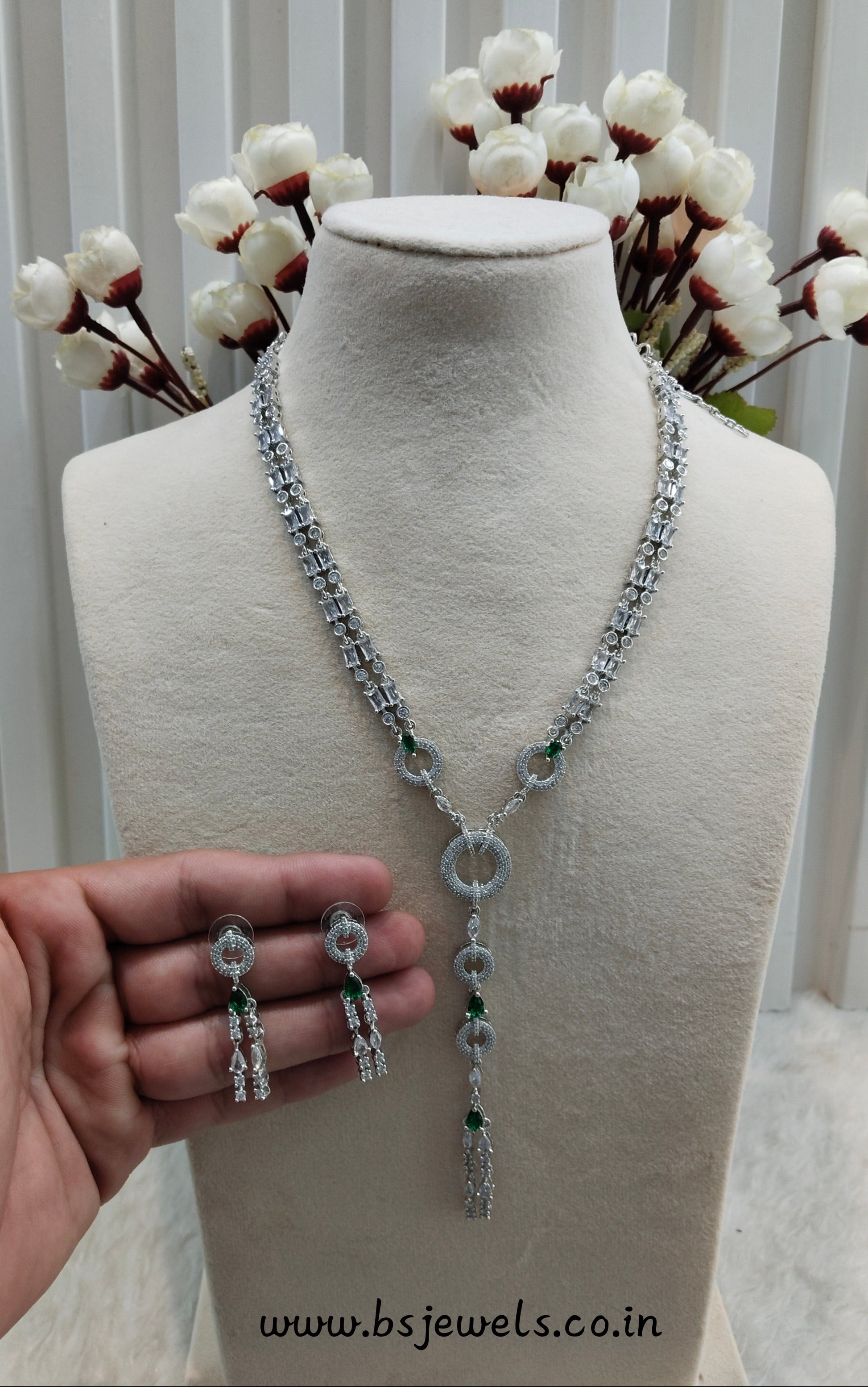 Green Silver CZ Necklace Jewellery Jaysurya Set