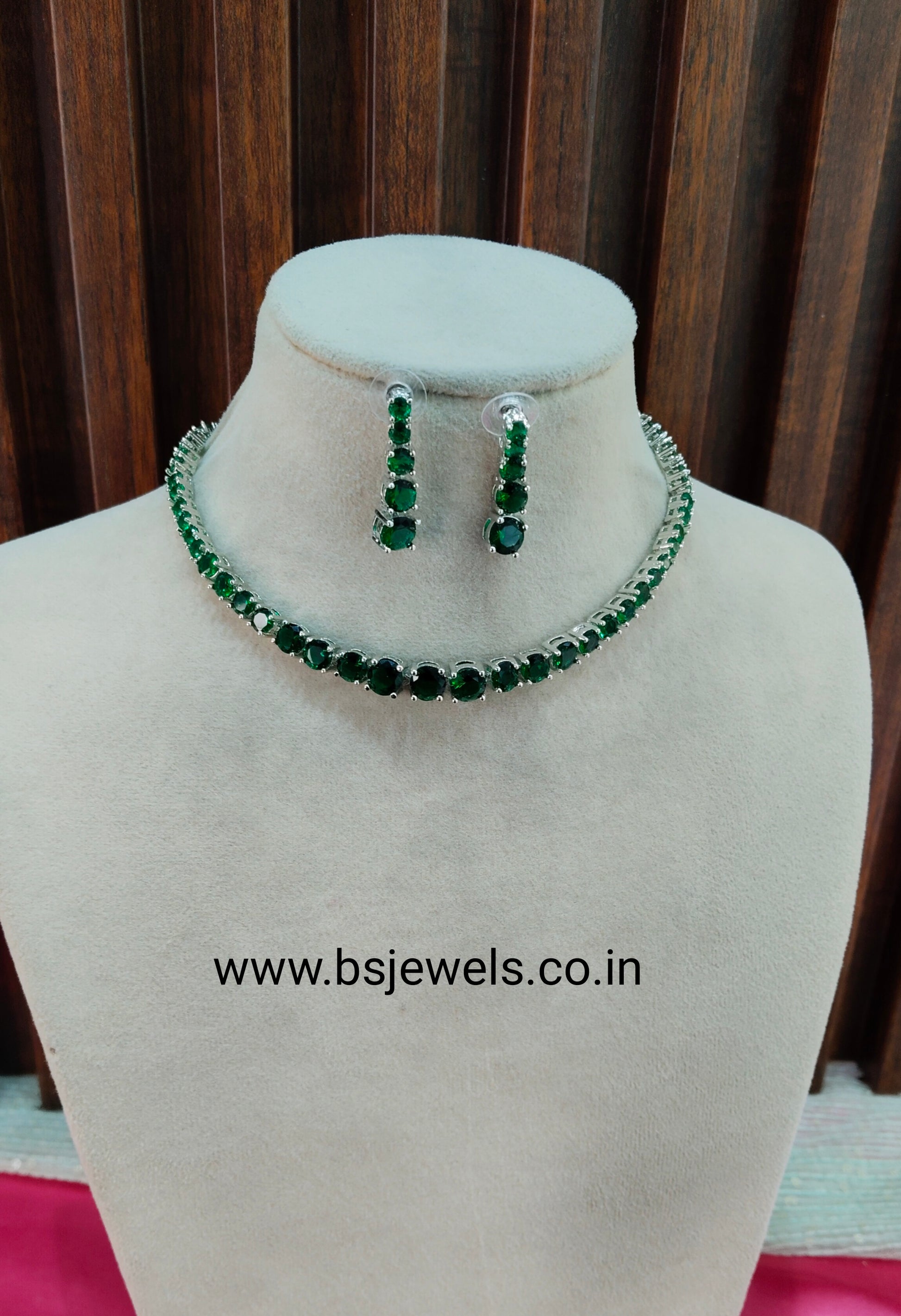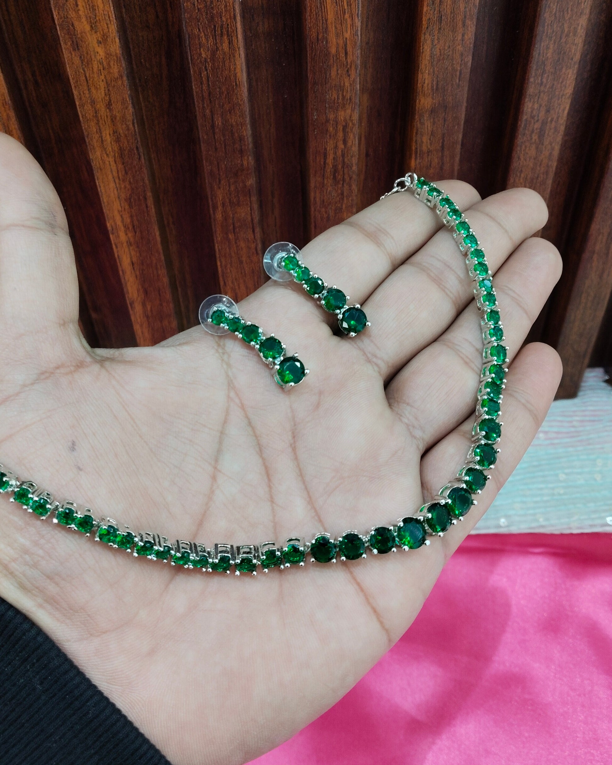 Green Silver CZ Necklace Jewellery Lisbon Set