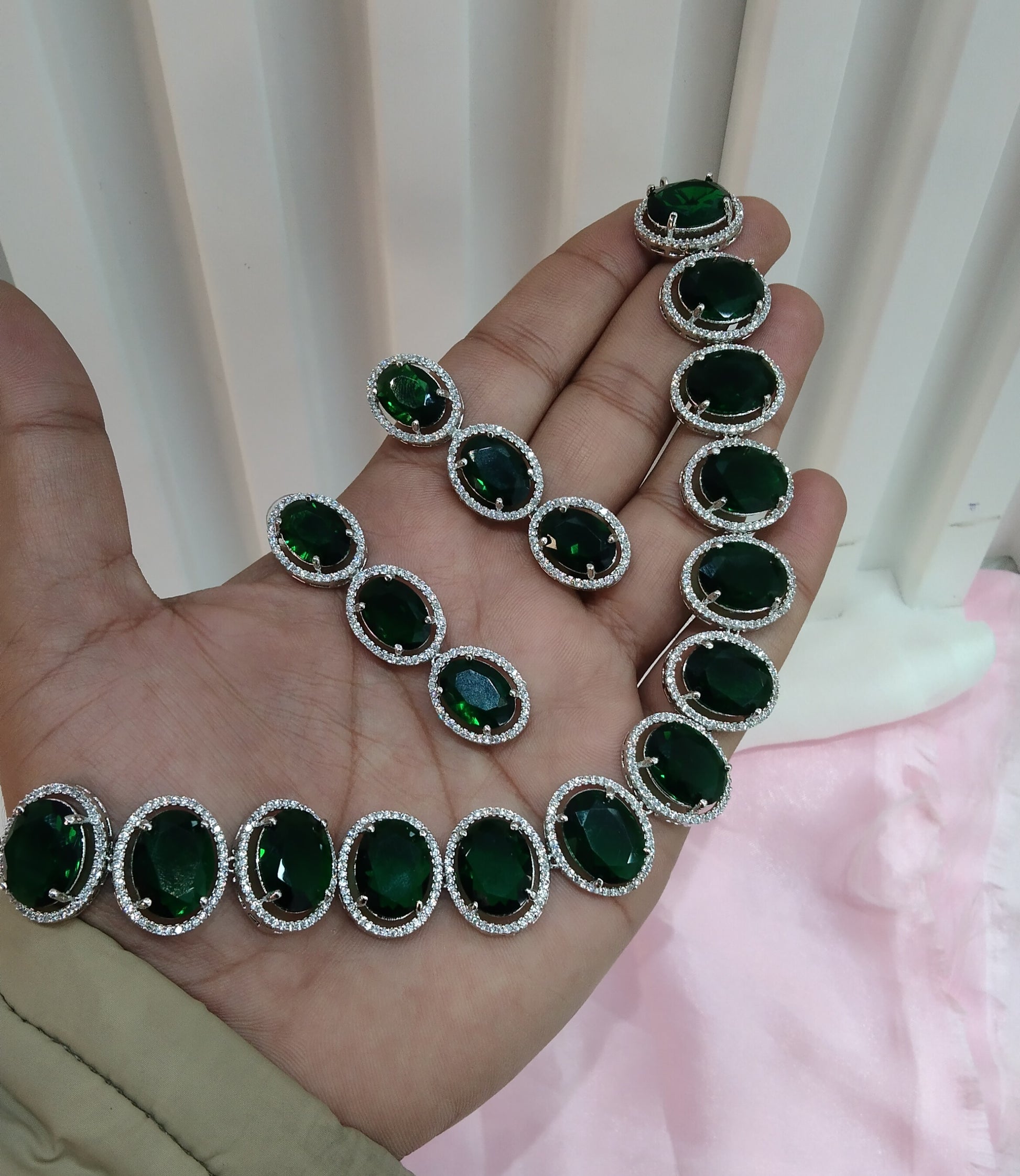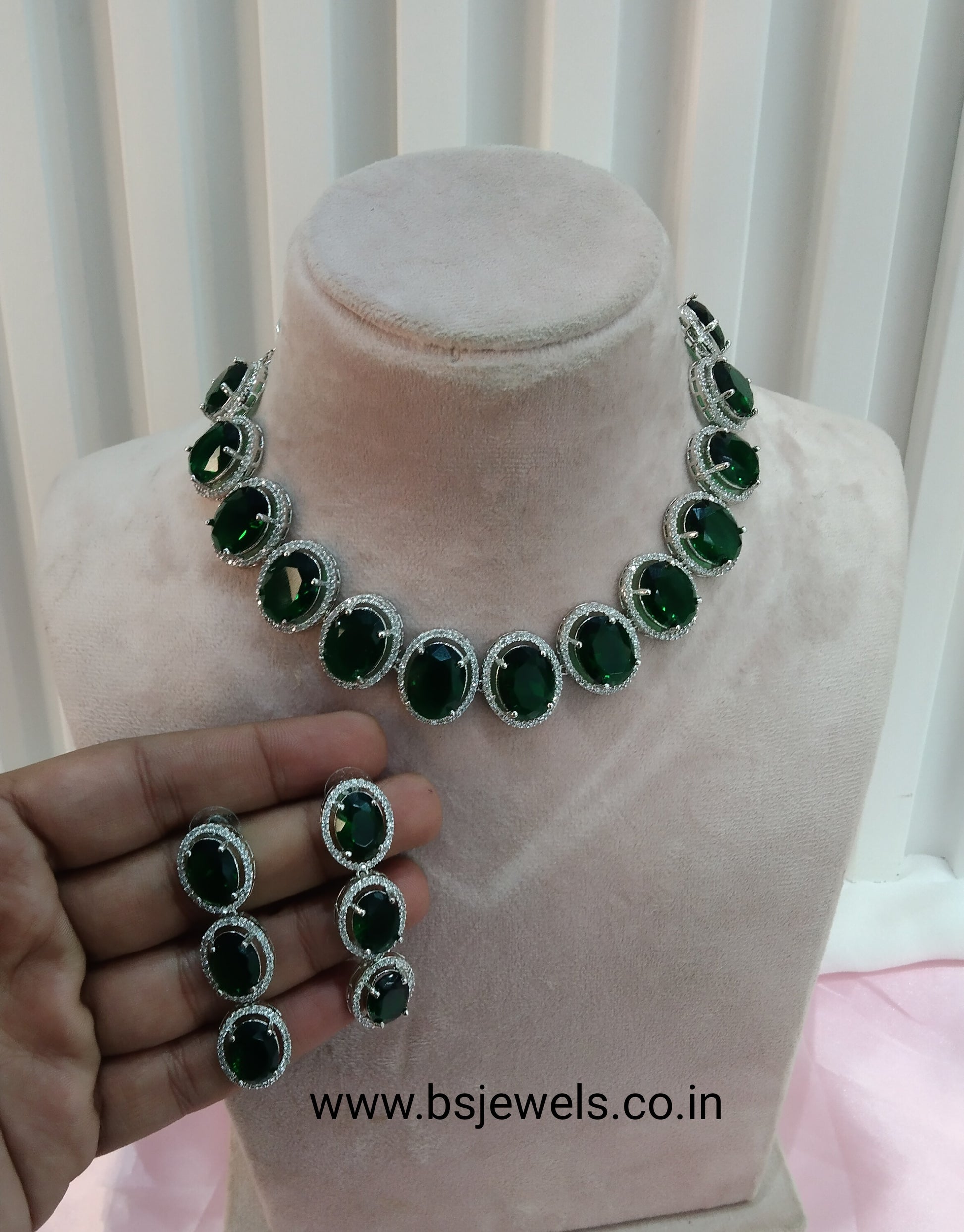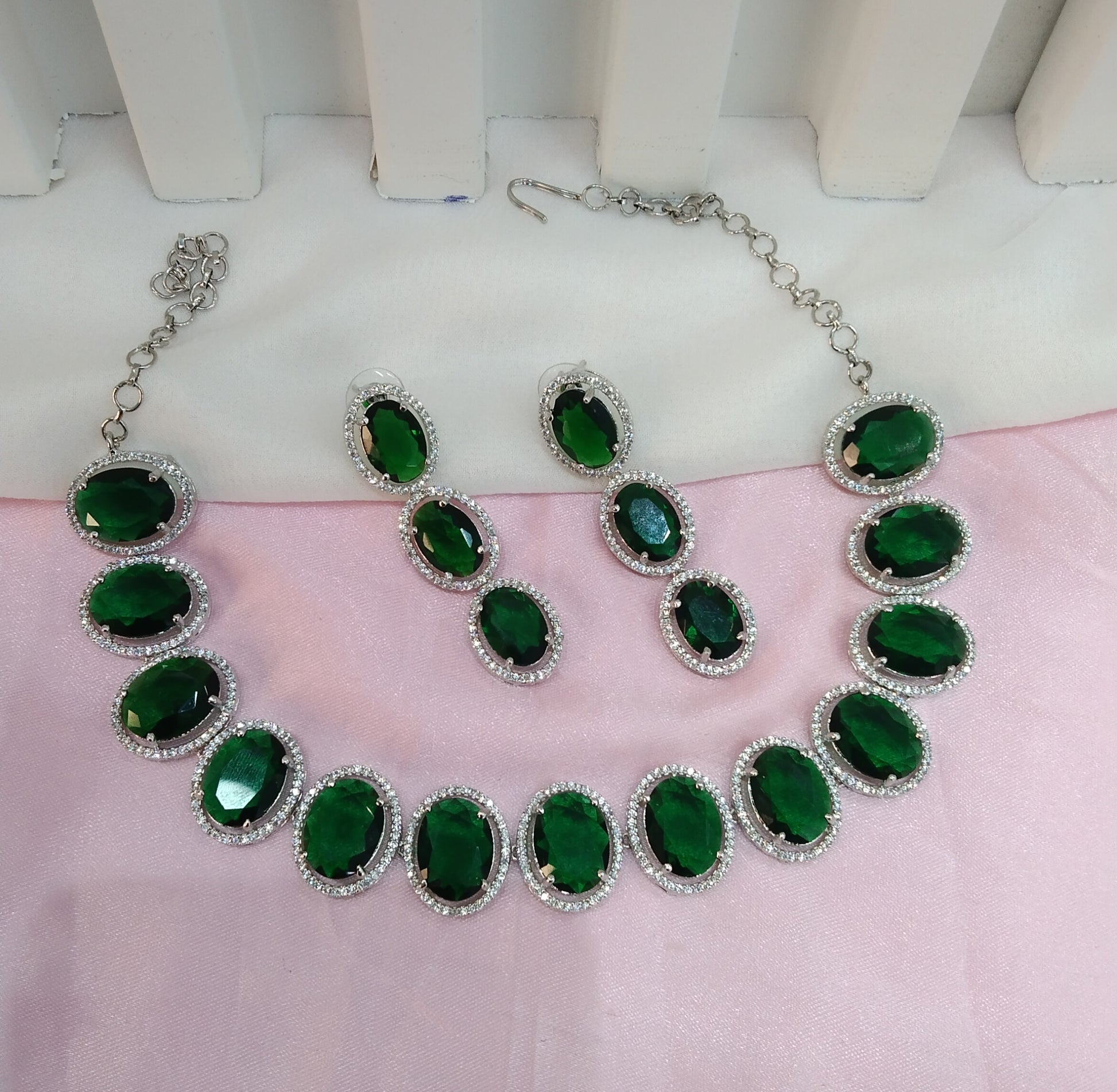 Green Silver CZ Necklace Jewellery Sheet Set
