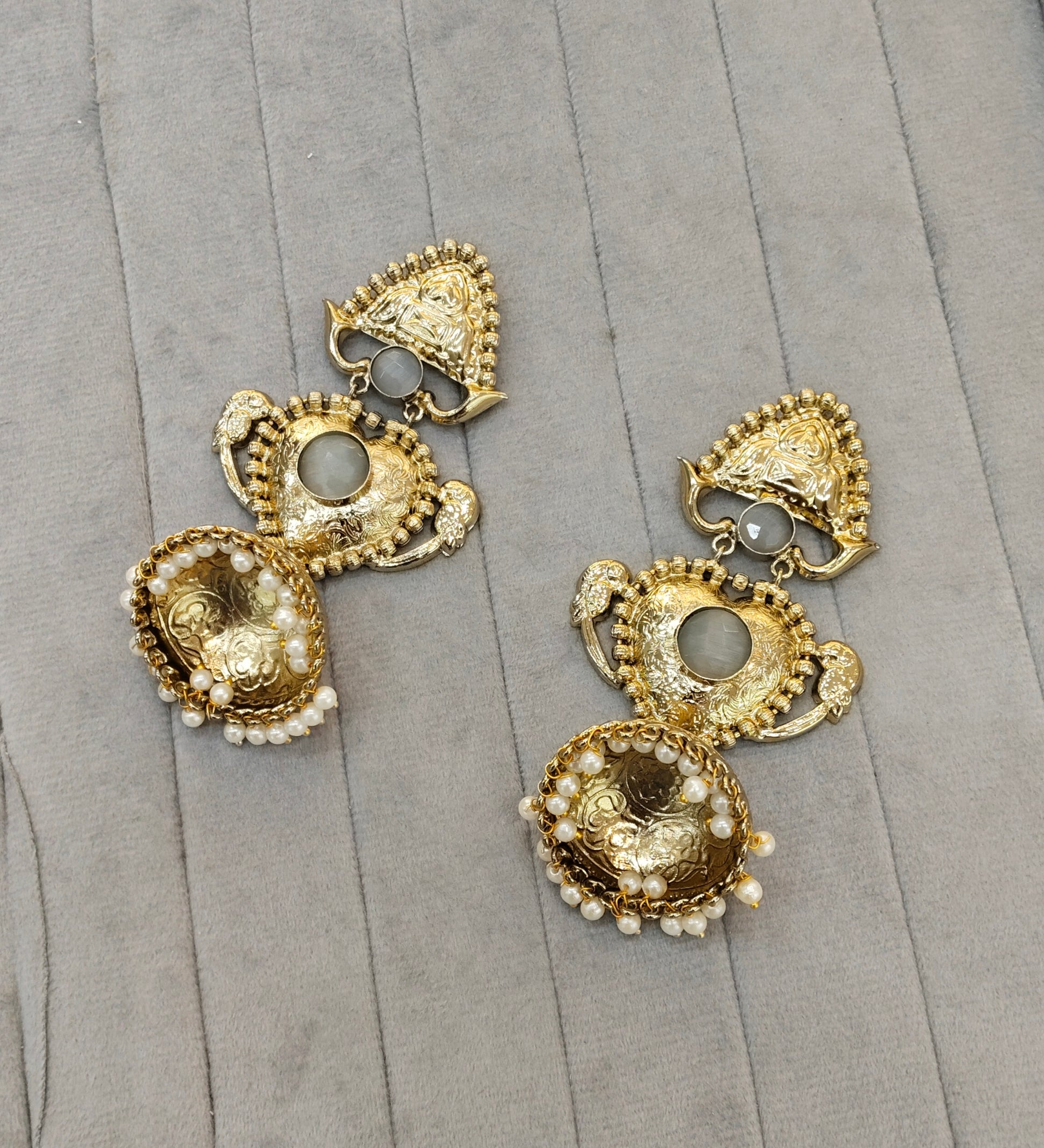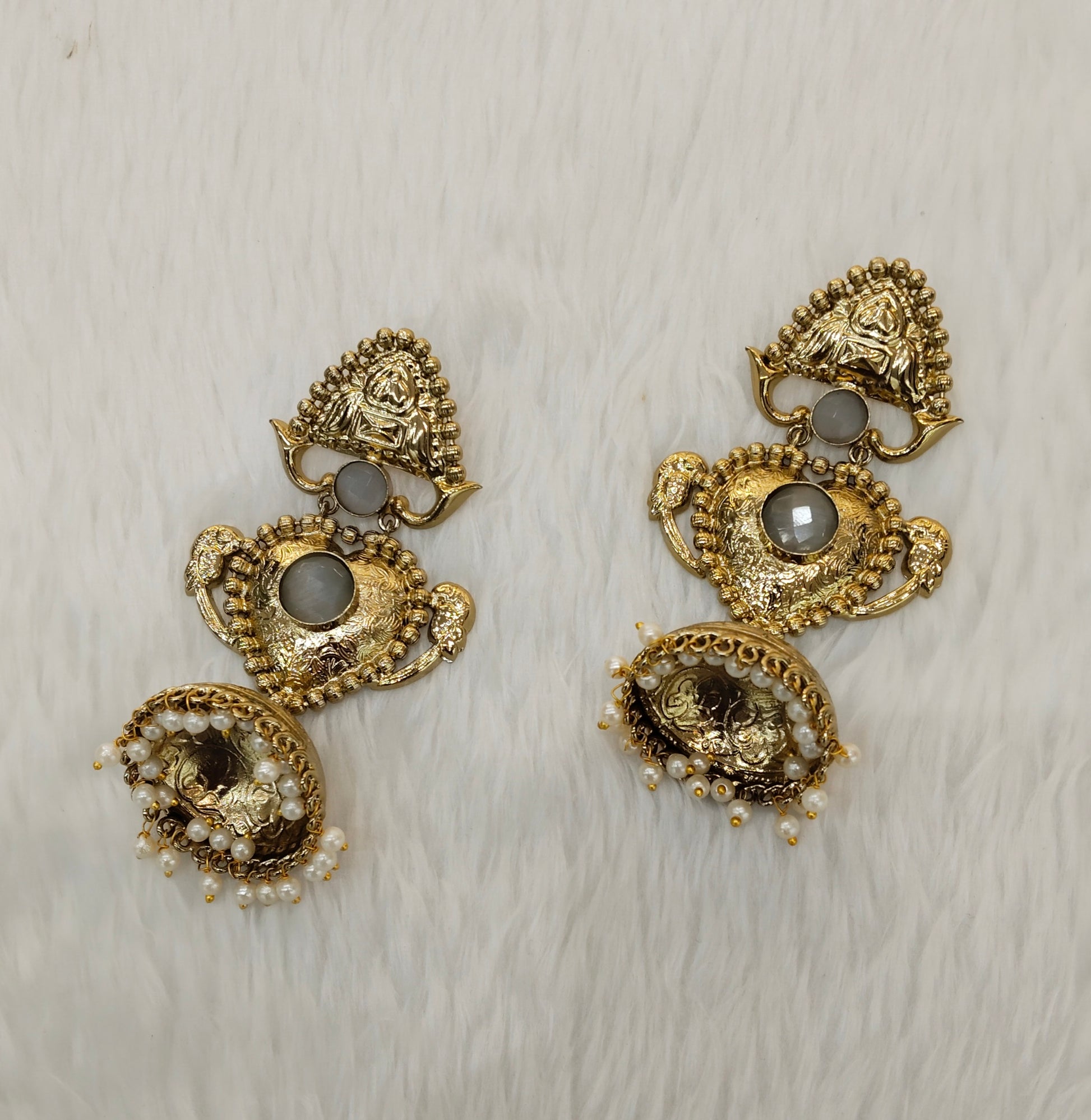 Grey Antique Gold Bollywood Sidhu Earrings