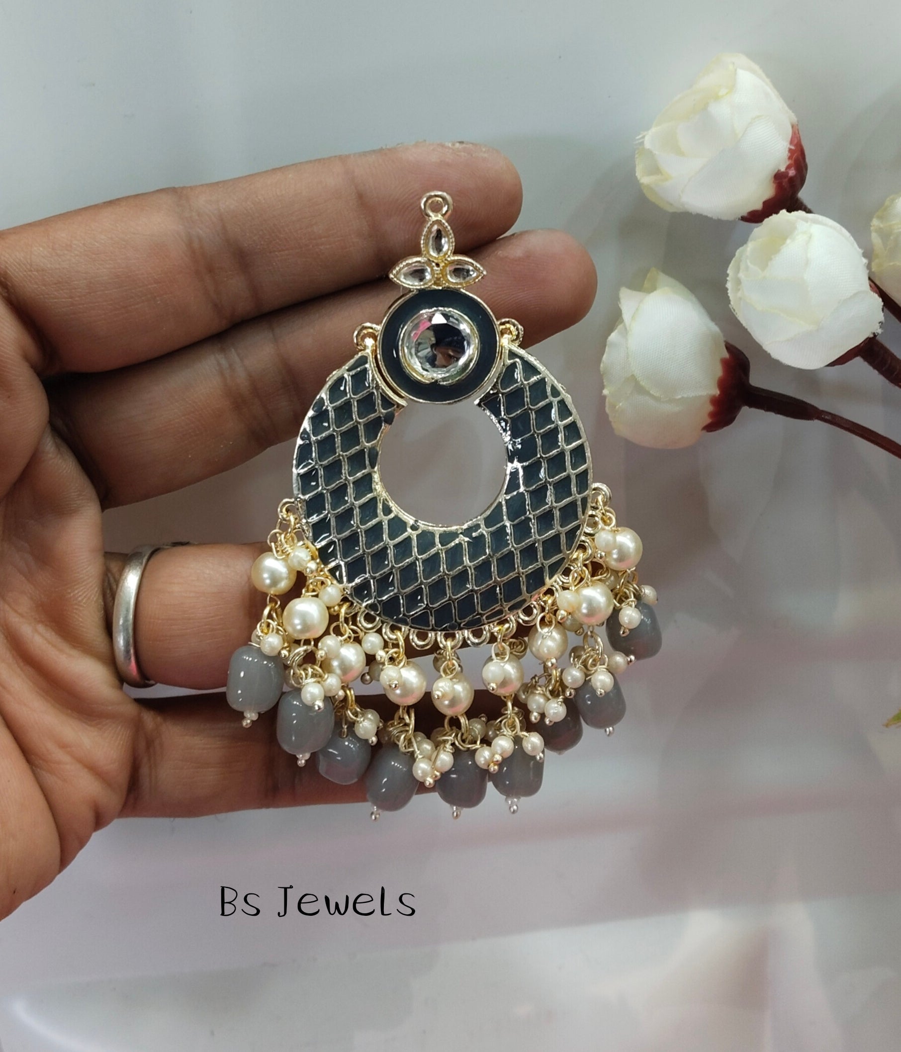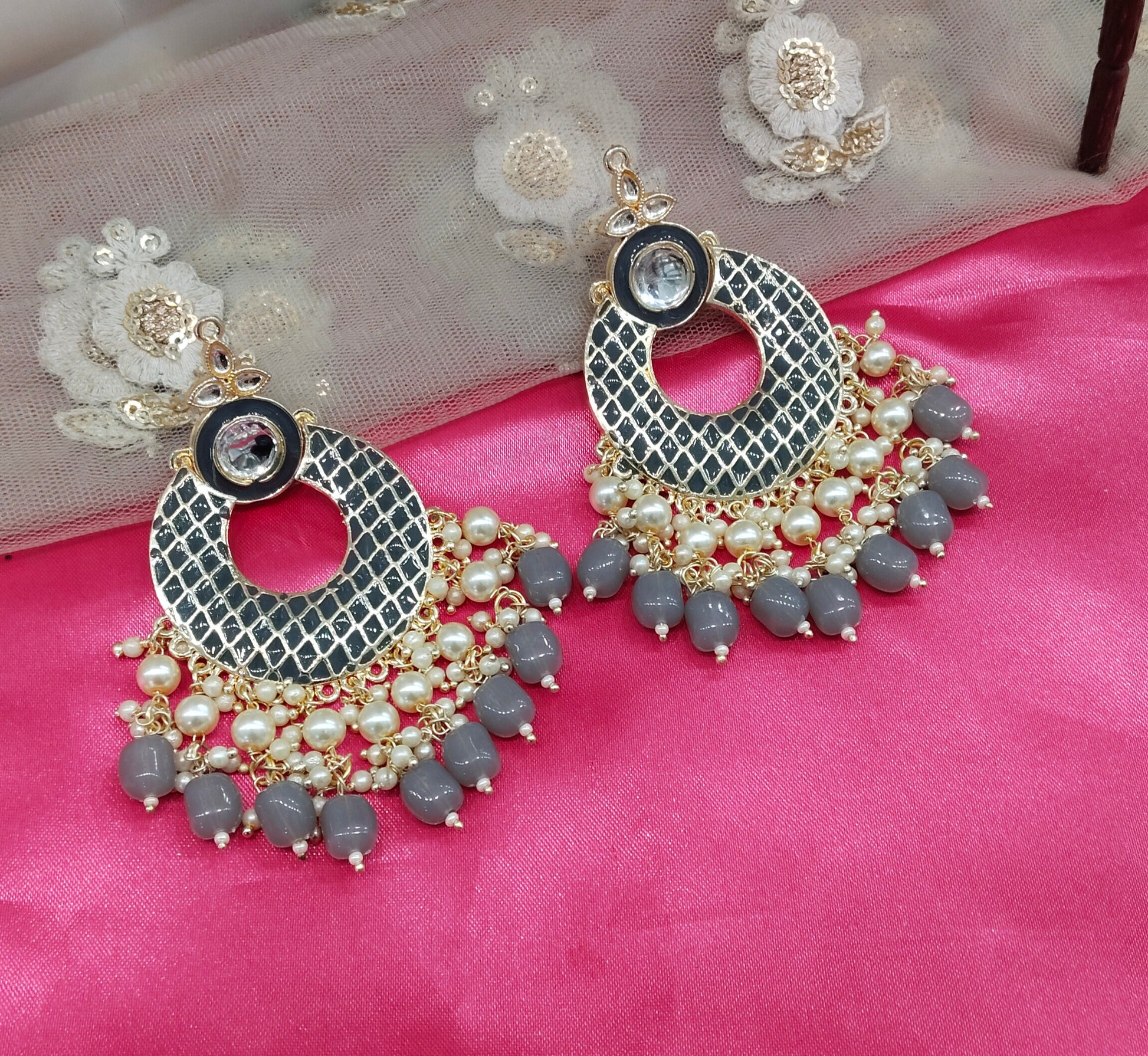 Grey Enamel Kudi Bollywood Earrings
