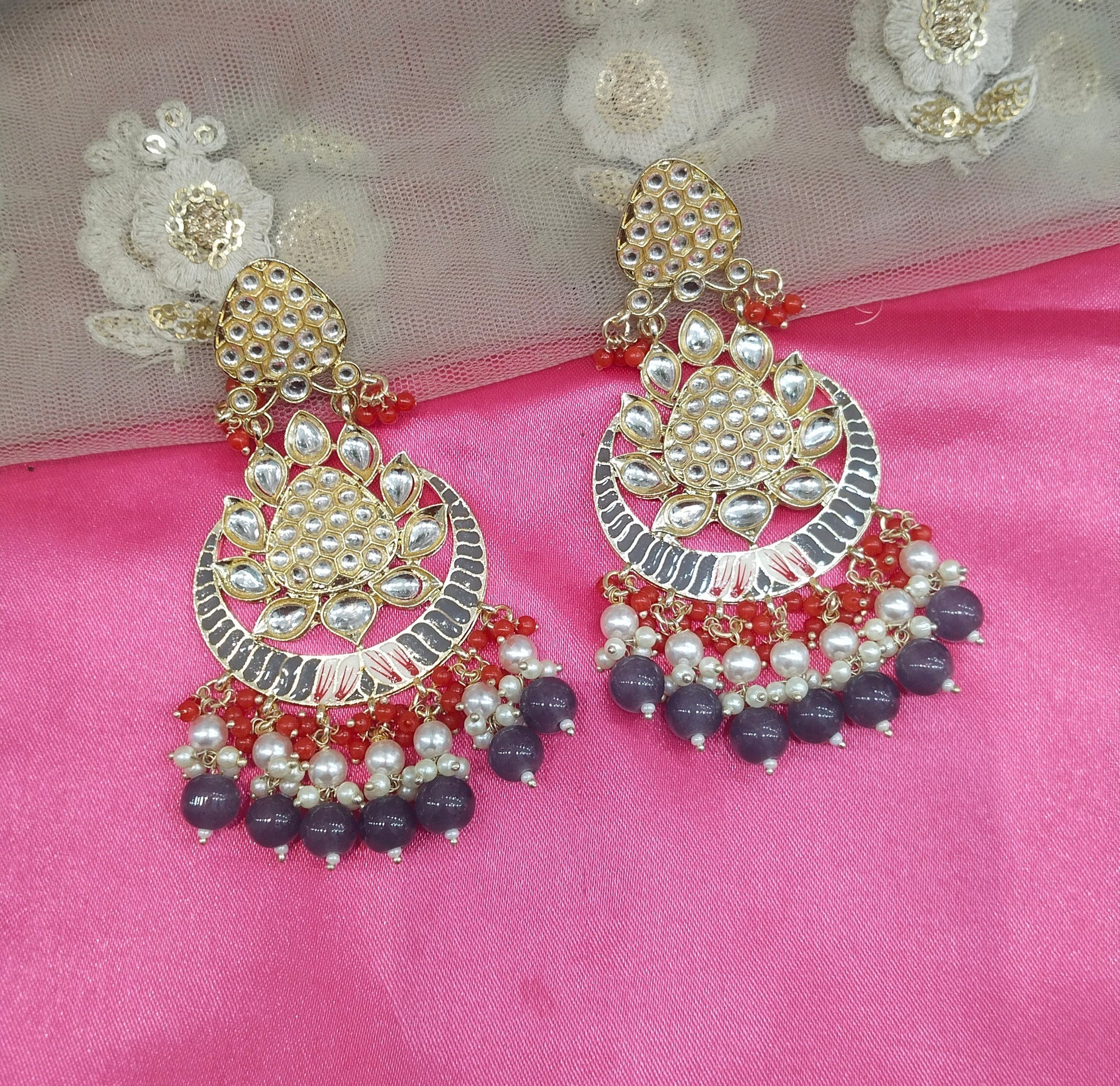 Grey Kundan Asis Bollywood Earrings
