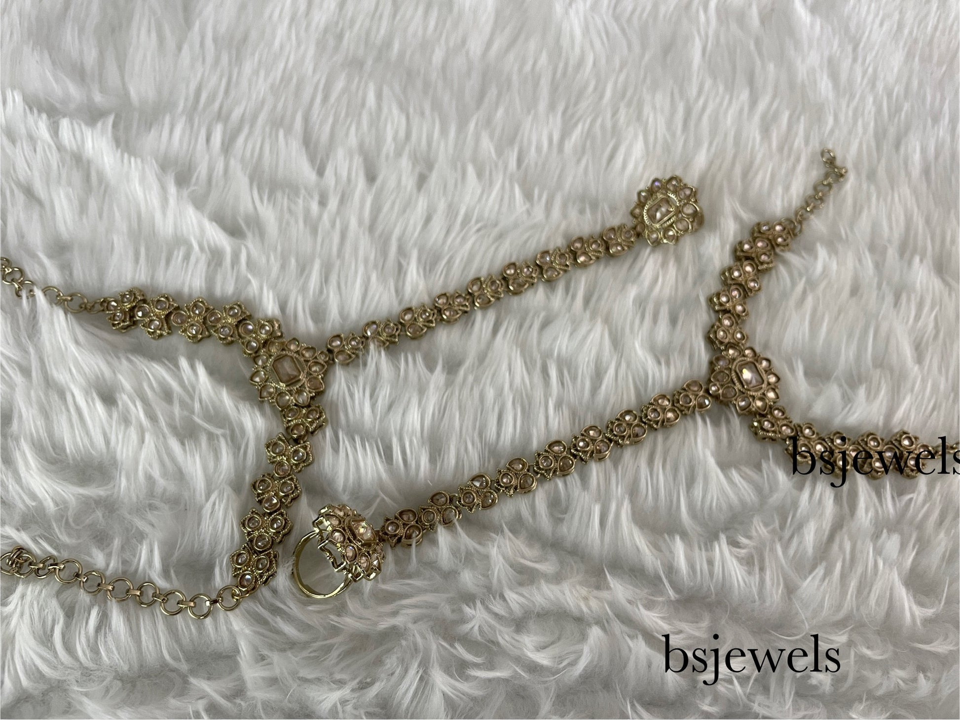 Hand Bracelets Antique Gold Bridal Pair Finger Ring Panja Jewellery