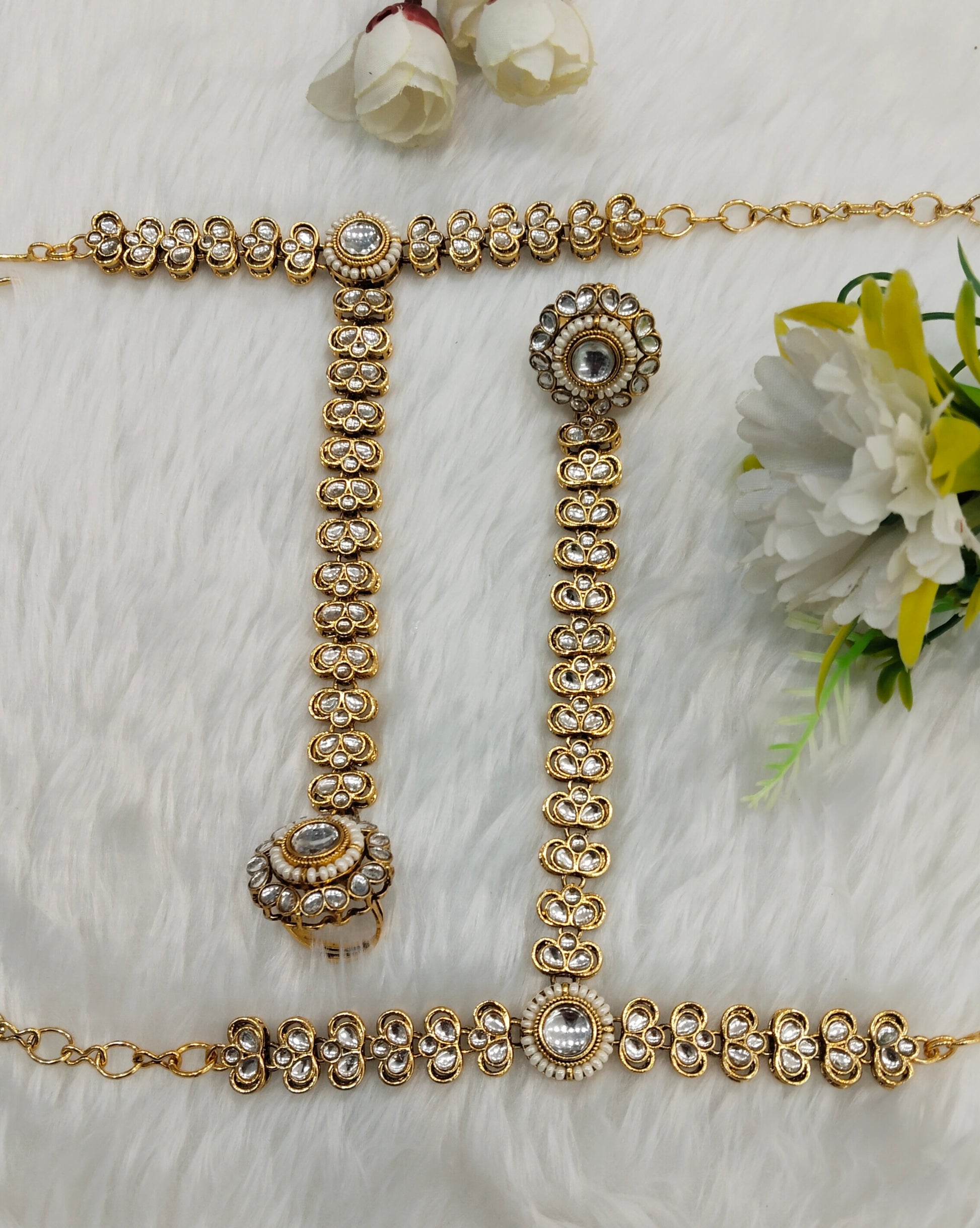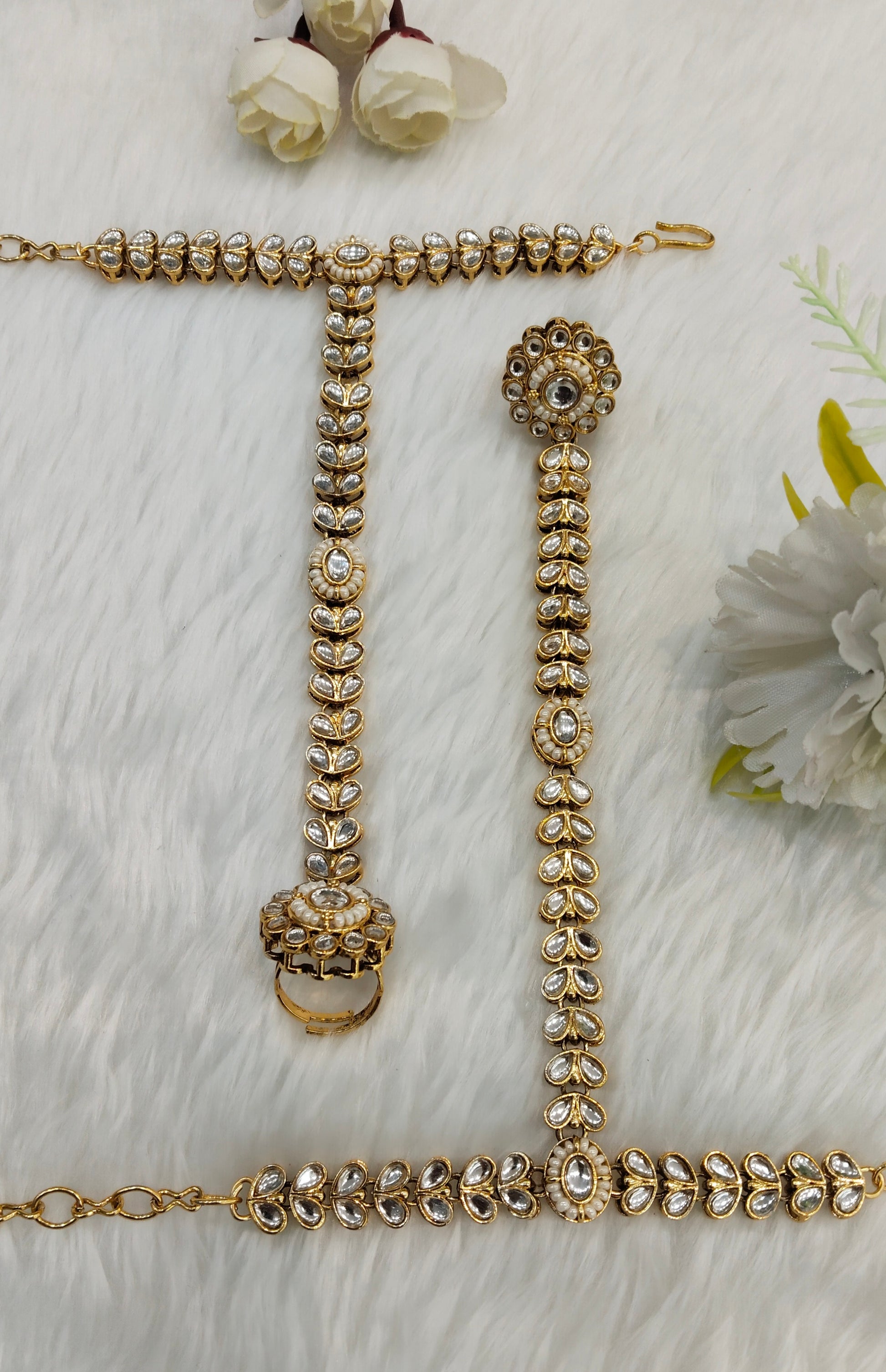 Hand Bracelets Gold Bridal Pair Finger Ring Panja Jewellery