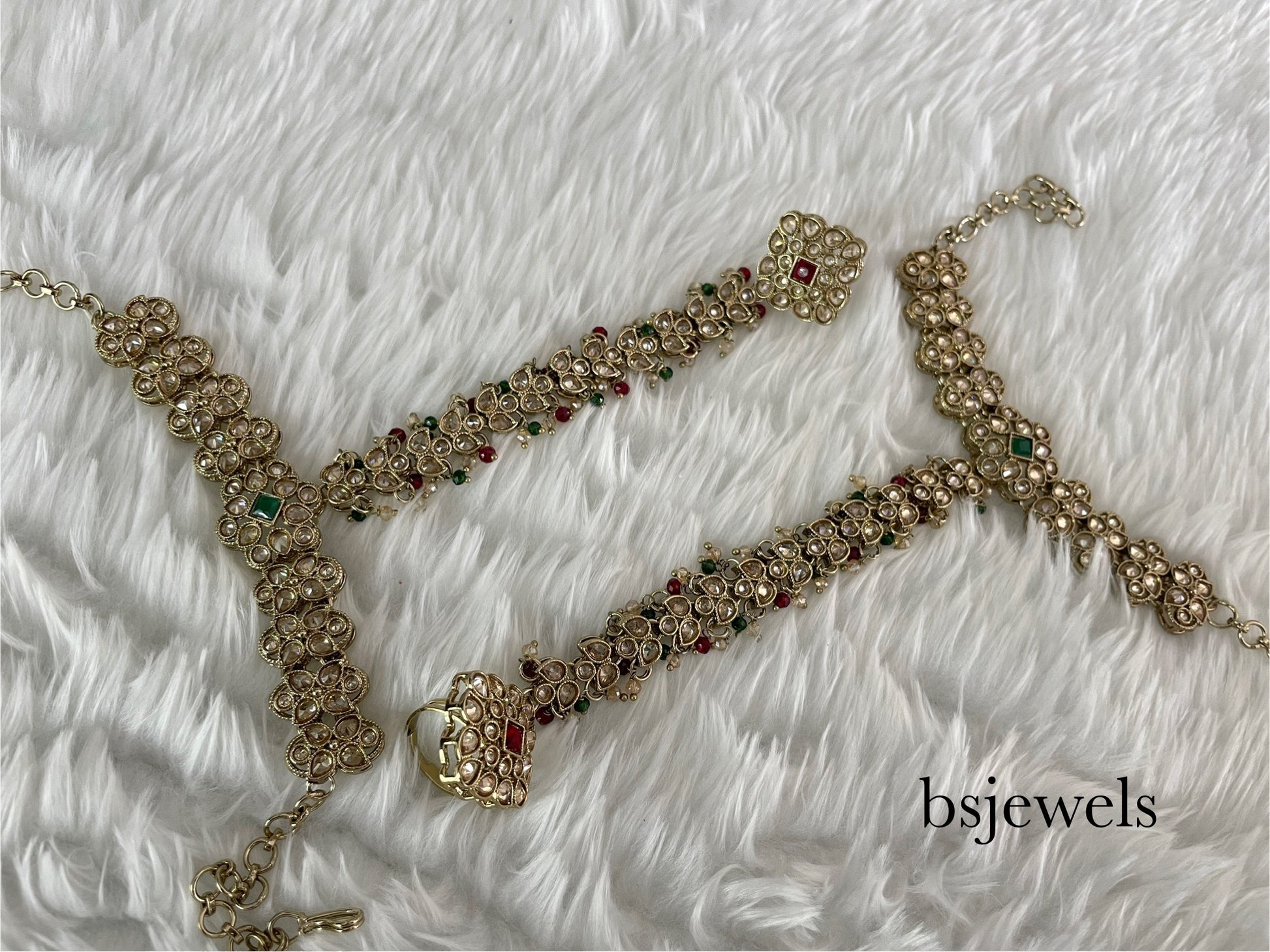 Hand Bracelets Maroon and Green Bridal Pair Finger Ring Panja Jewellery