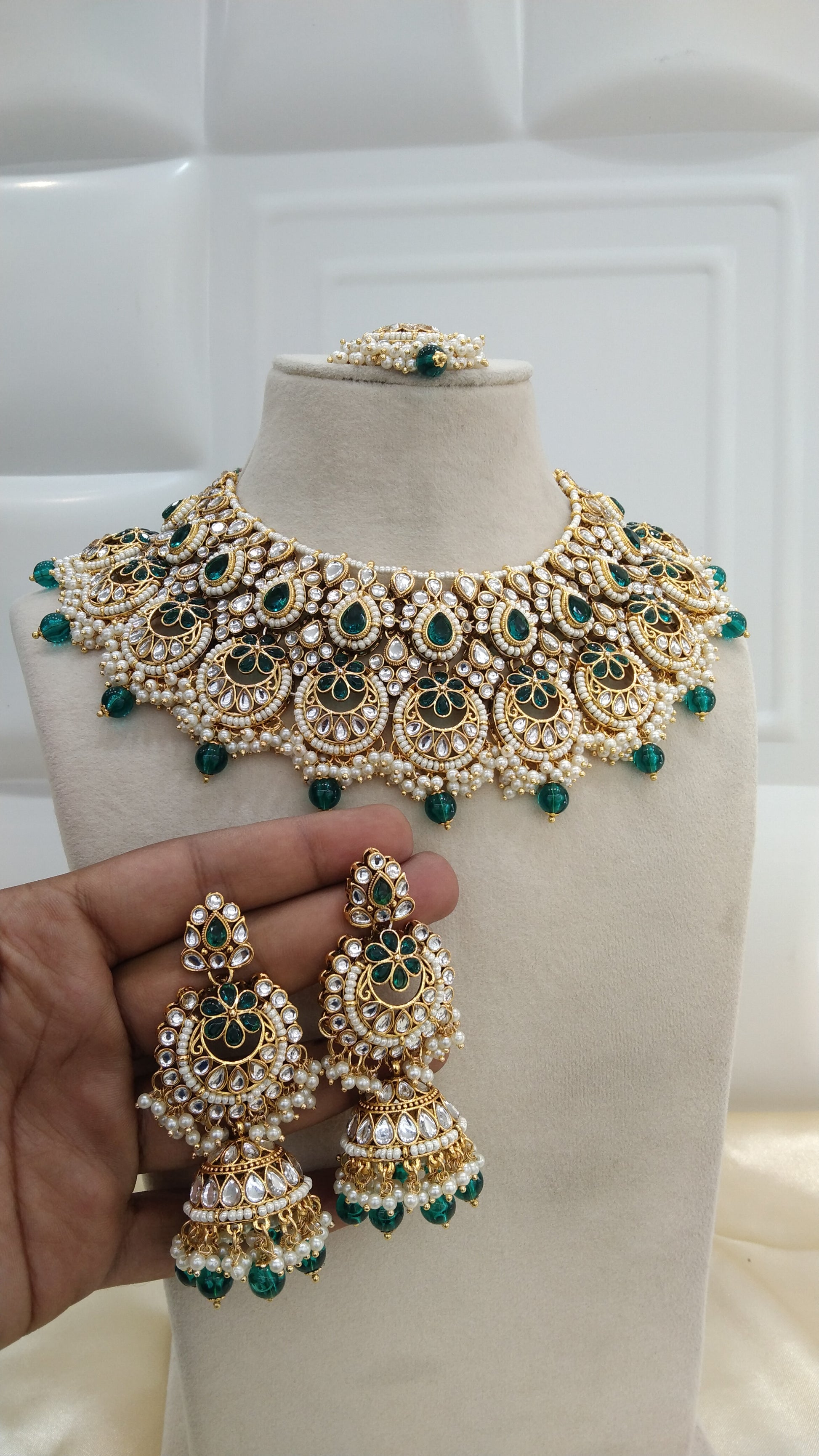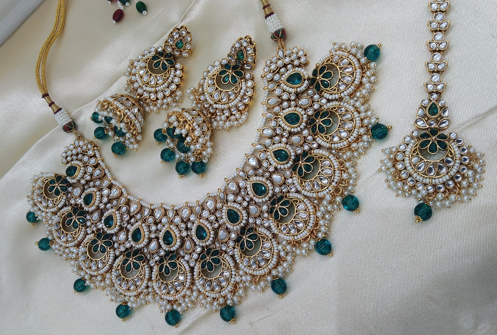 Harpreet Rama green kundan Indian Necklace Jewellery Set