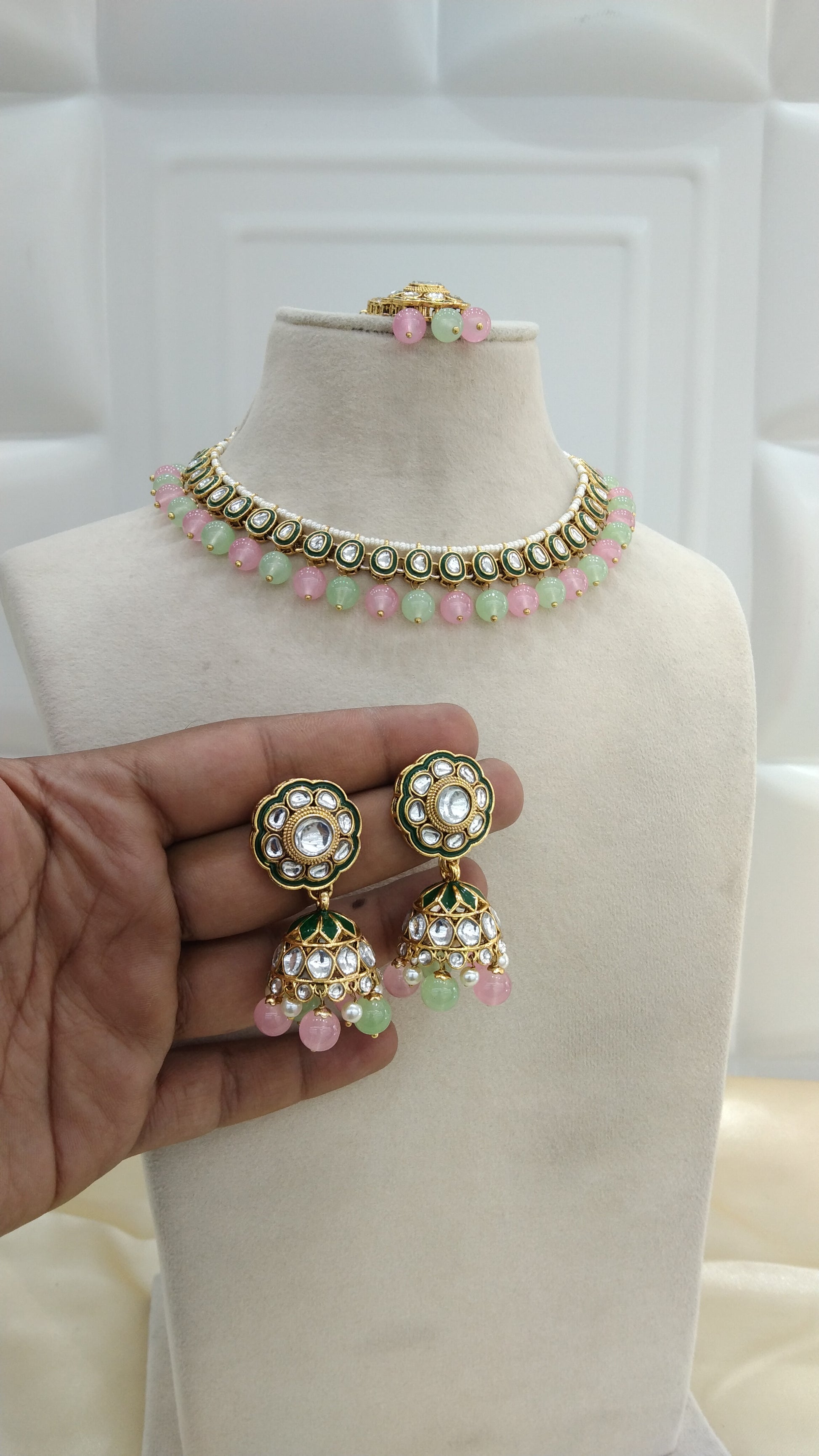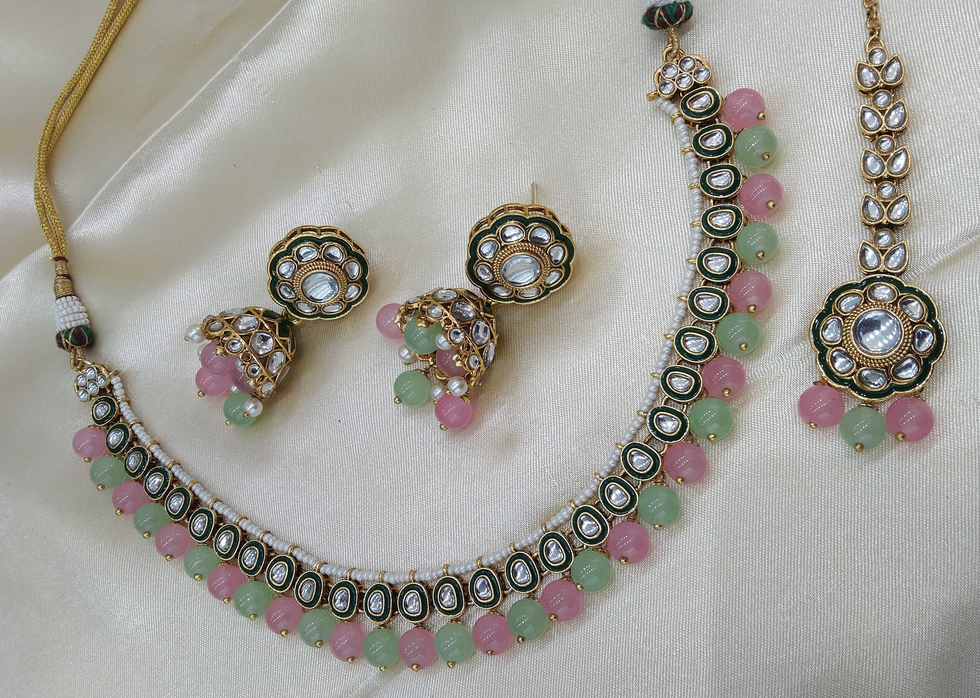 Honey Pista Pink kundan Indian Necklace Jewellery Set